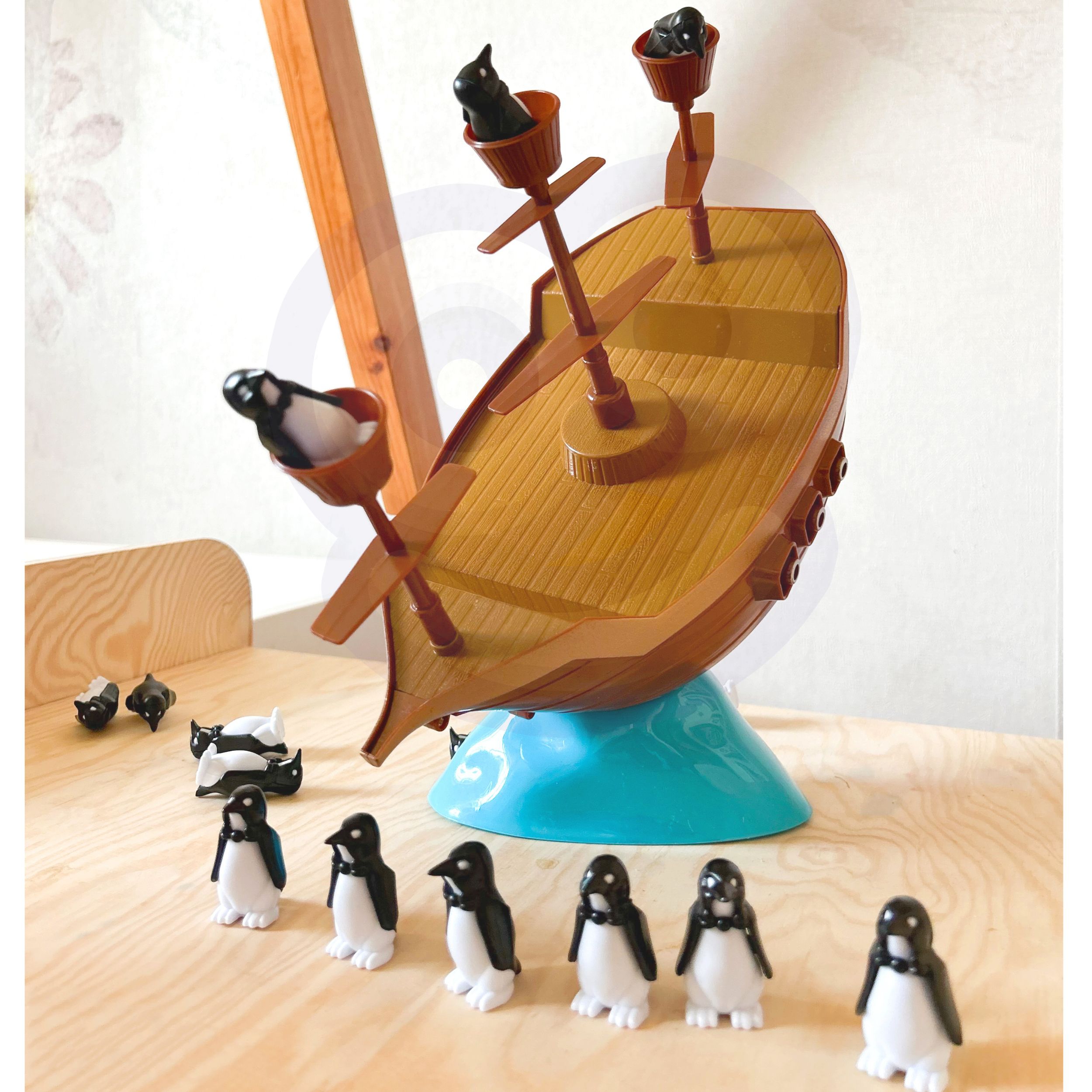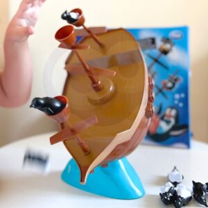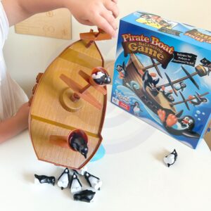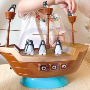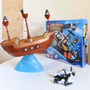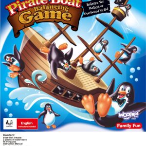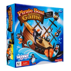 Penguin Pirate Ship on Woopie kaubamärgi arkaadmäng kogu perele. Mäng hõlmab pingviinide asetamist tasakaalustavale paati. Mäng on väga põnev ja põnevust tekitav, sest laev on pidevalt tasakaalus ning mängija ülesandeks on pingviin paadis asetada nii, et see vette ei kukuks. Omadused: – mäng lastele alates 3. eluaastast – arendab käelisi oskusi – mitmikmäng, saab mängida 2 kuni 4 inimest – õpetab loogilist ja strateegilist mõtlemist – arendab käe-silma koordinatsiooni Mängureeglid: – mängu alustab kõige noorem mängija – iga mängus osaleja ülesanne on pingviin ettevaatlikult laeva pardale asetada – iga mängija käib kellaosuti liikumise ajal laual ainult ühe pöördega. laevapingviin – pingviinid võivad seista igal pool laeval, tekil või kurepesas. On oluline, et ükski pingviin ei kukuks üle parda – kui üks või mitu pingviini kukub üle parda –, mäng lõpeb. Märkus! Kui pingviinid kukuvad ümber, kuid ei kuku üle parda, siis mäng jätkub. Viimane mängija, kes asetab pingviini piraadilaeva tekile ilma, et pingviin ümber kukuks, on võitja! Komplekti sisu: – 3 mastiga piraadilaev – 2 merelaine elementi – 16 pingviini