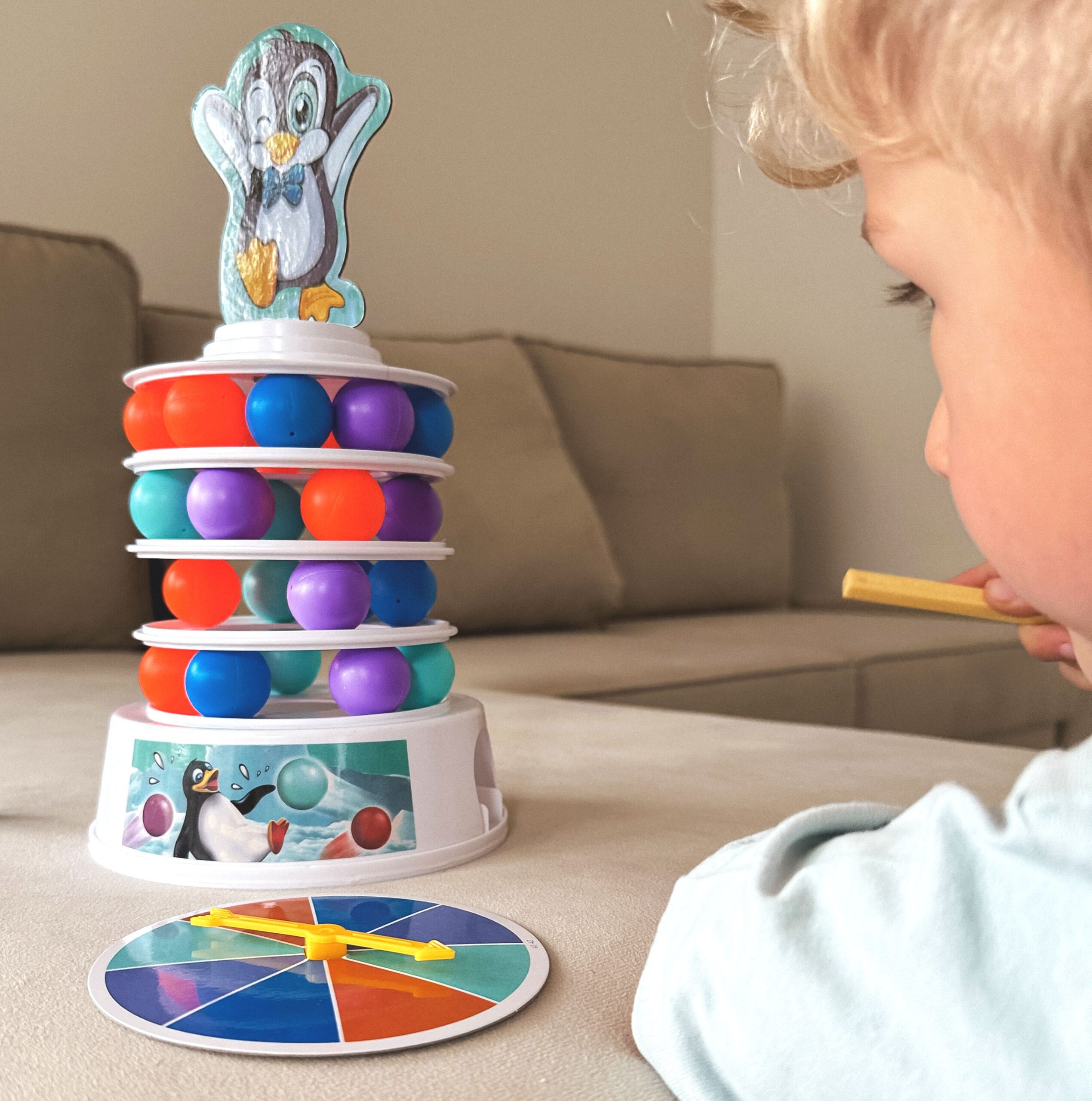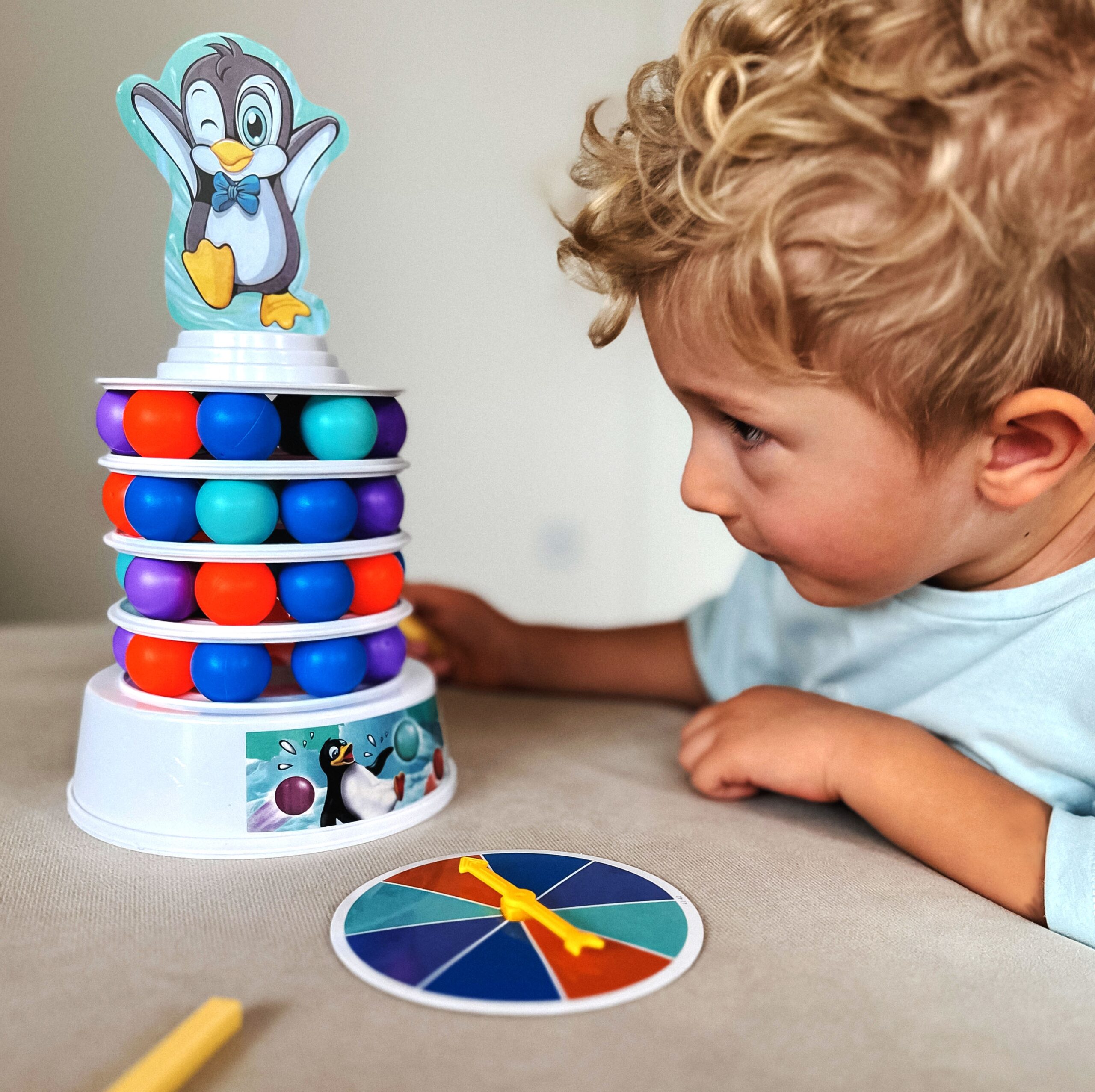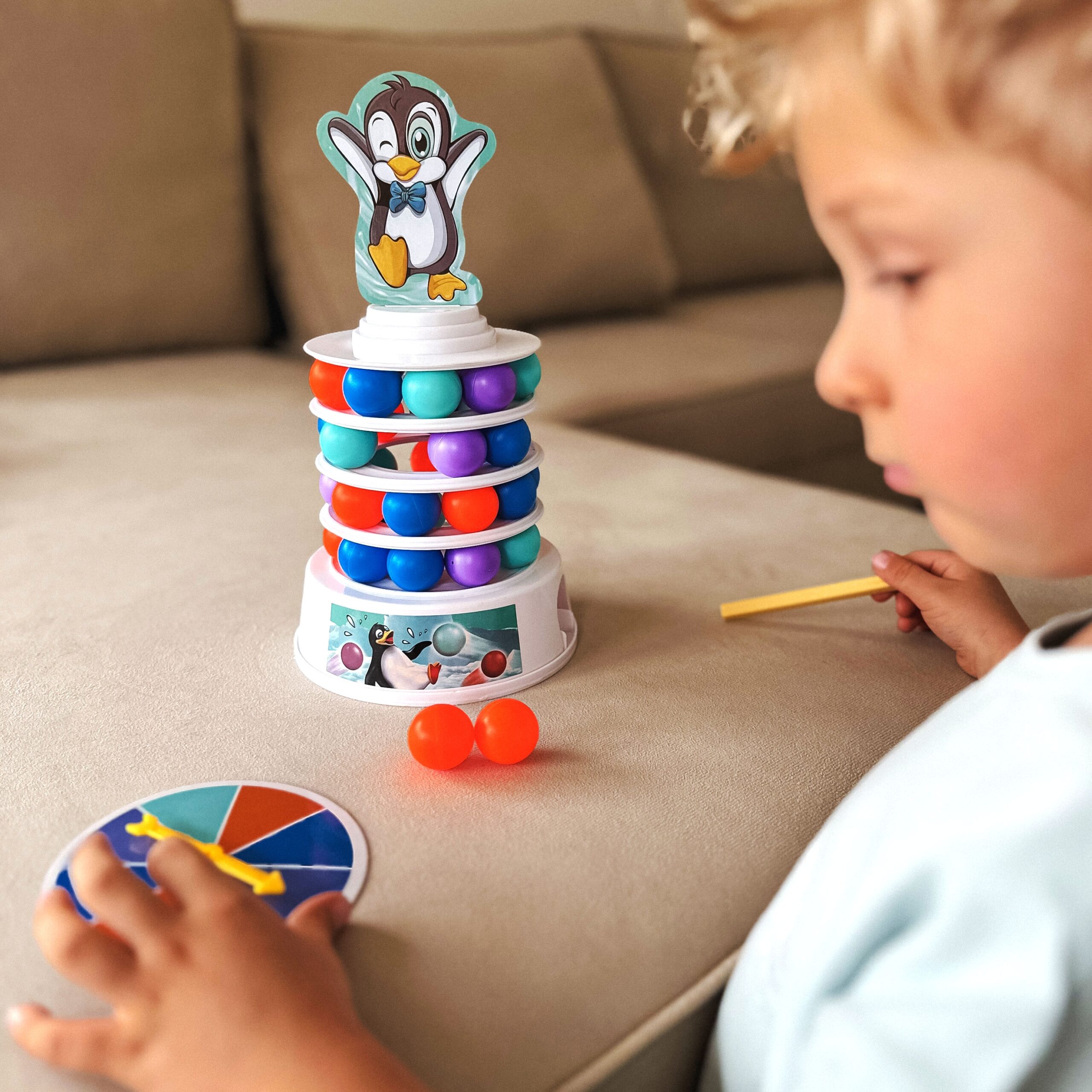 WOOPIE Penguin on the Tower arkaadmäng on mäng inimestele, kes soovivad mängu ajal oma kannatlikkust, osavust ja kavalust proovile panna. See lõbus arkaadmäng rõõmustab nii lapsi kui ka täiskasvanuid ning muudab koosveedetud aja nauditavamaks. Omadused: mäng treenib osavust ja täpsust, ideaalne viis koos ajaveetmiseks, ideaalne lastele alates 4 eluaastast ja täiskasvanutele, mängijate arv 2 kuni 4, mäng ei vaja patareisid. Mängureeglid: Esiteks paneme kokku oma teetorni. Kasutame alust, millele asetame värvilised pallid. Seejärel lisame oma jäämäe ja pallide täiendavad kihid. Torni kroonime rõõmsa pingviiniga kattega. Mäng hõlmab eelnevalt joonistatud värvi kuuli lükkamist meie torni. Kogu konstruktsioon on liigutatav ja ebastabiilne, seega pole see lihtne ülesanne. Inimene, kes kukutab torni ja paneb pingviini kukkuma, kaotab. Komplekti kuulub: Alus, Jäämäe elemendid – 3 ümarat alust ja torni tipp, Papppingviin, 2 pallieemalduspulka, 9 tumesinist palli, 9 oranži palli, 9 sinist palli, 9 lillat kuuli, Värvilise joonistusindikaatoriga ketas, Originaalpakend.