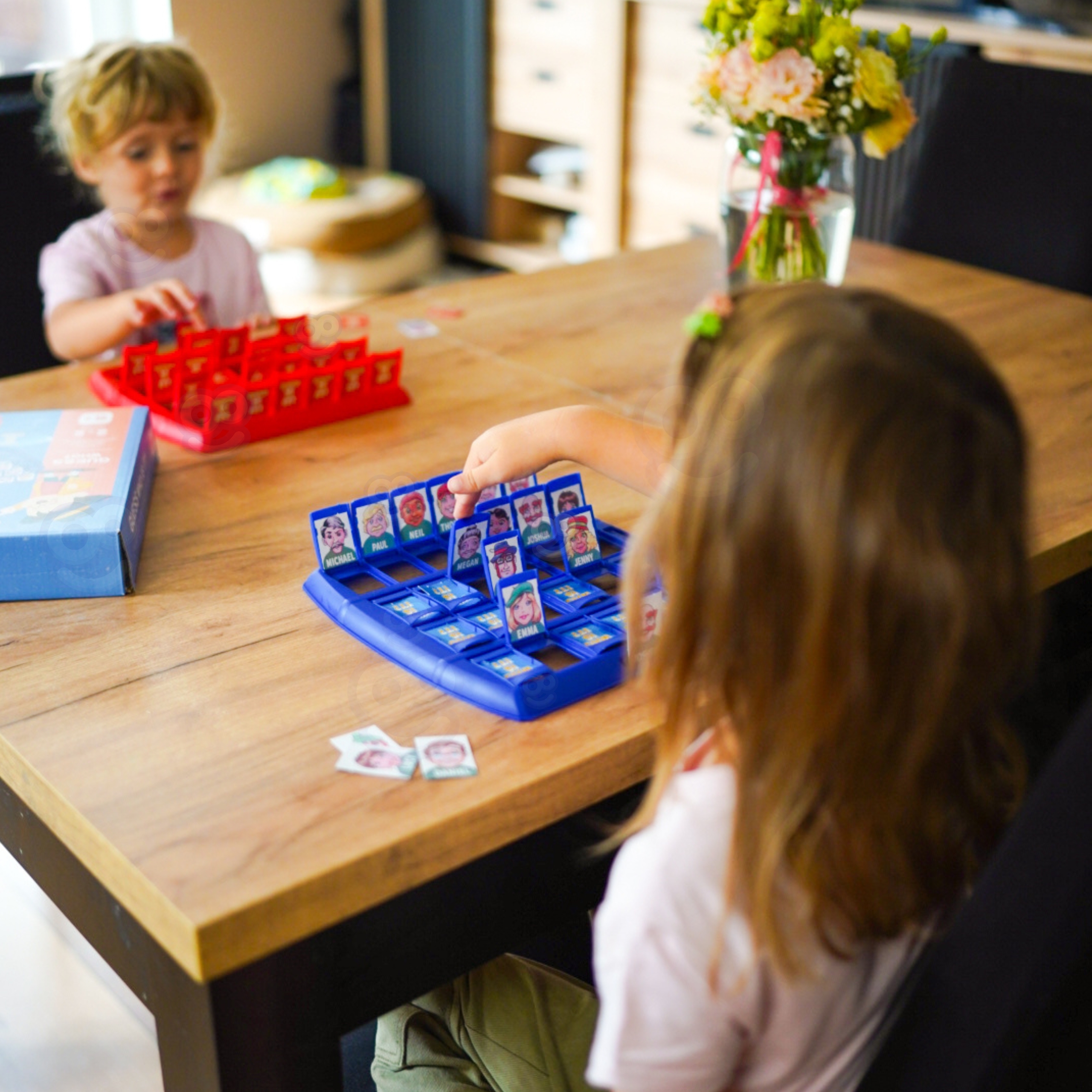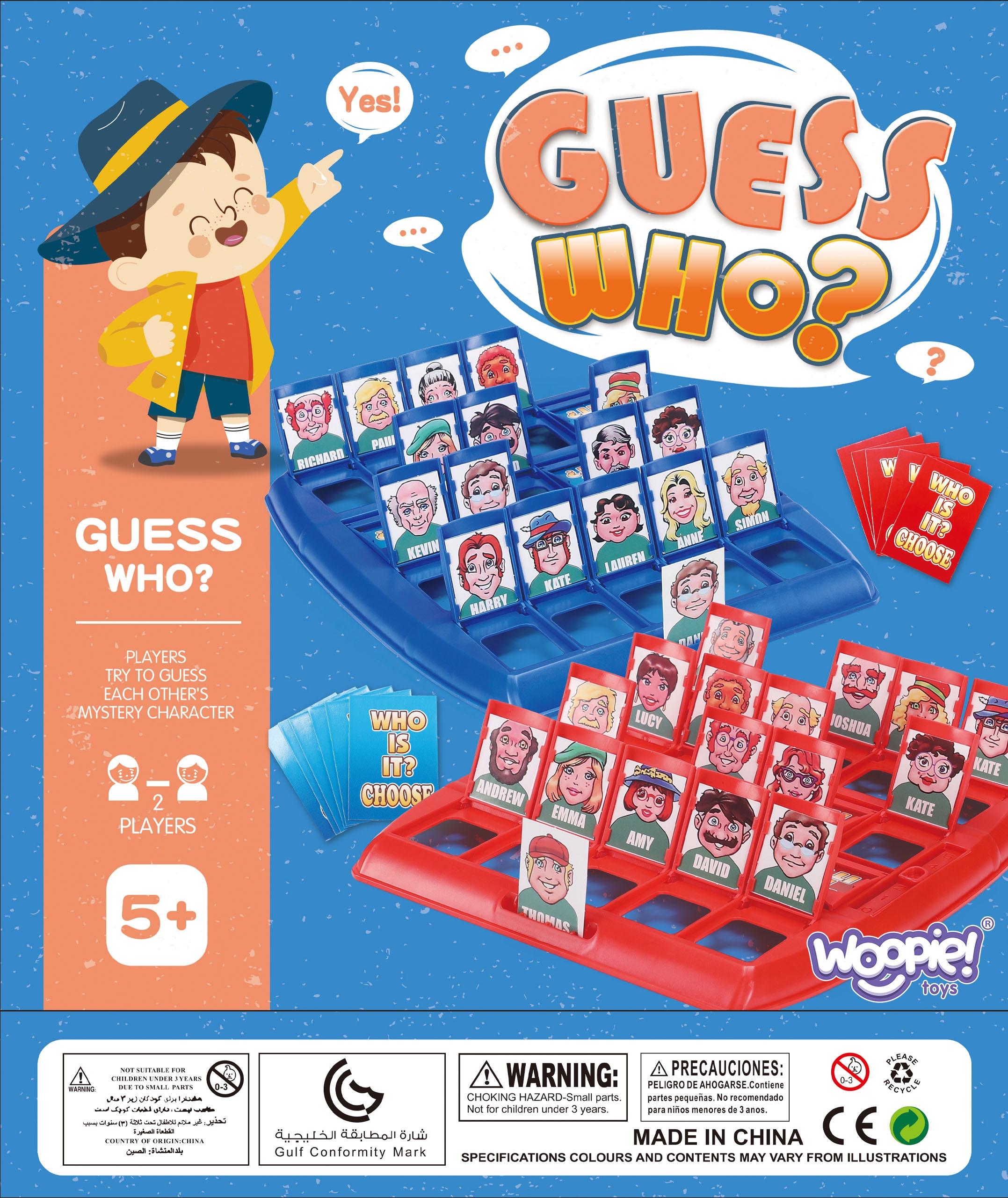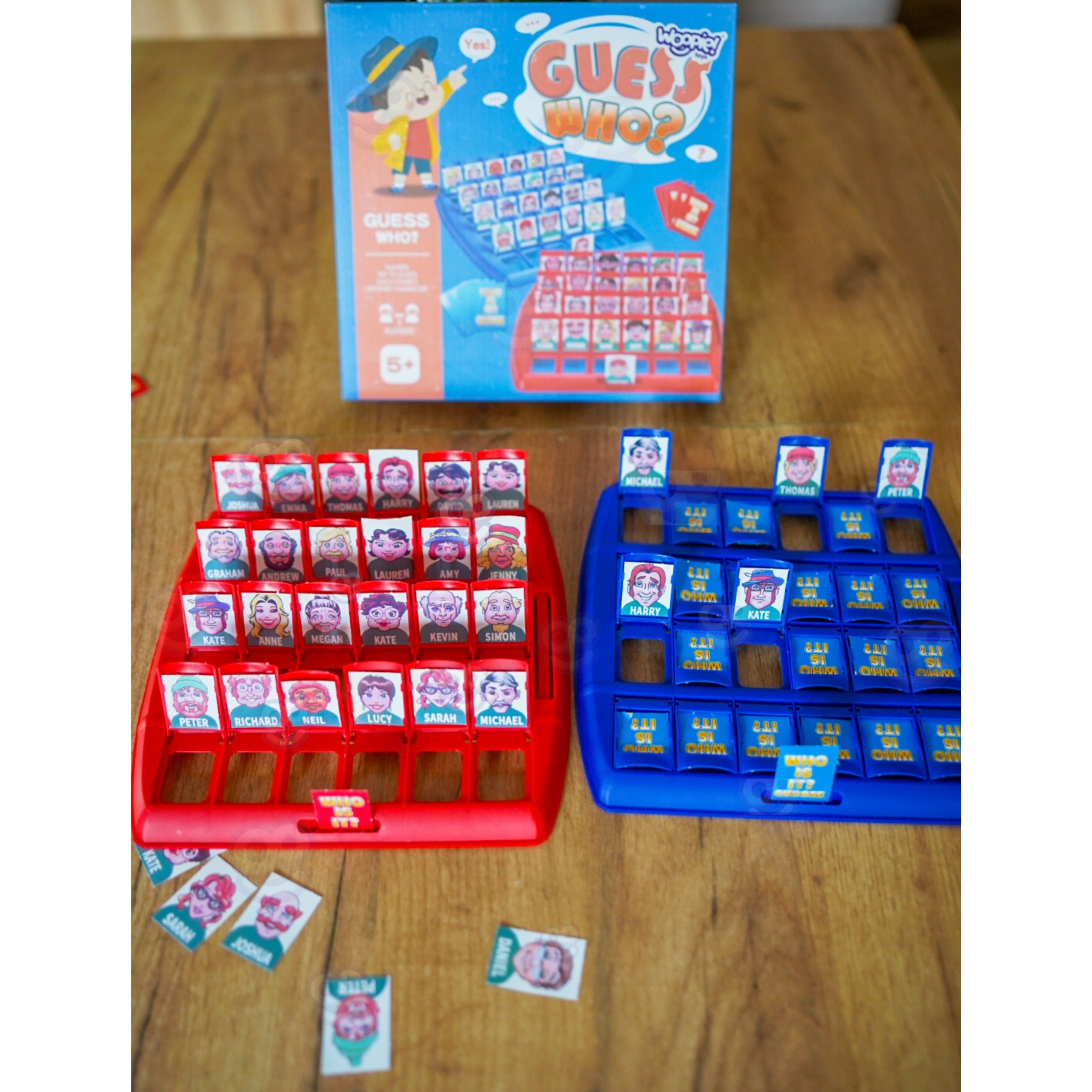 Lauamäng “Arva ära, kes see on?” see on ajatu interaktiivne lõbu, millel ei hakka kunagi igav! See on suurepärane võimalus koos aega veeta – nii lastele kui ka täiskasvanutele. Esitage küsimusi, kõrvaldage tegelasi ja proovige esimesena ära arvata, kelle teie vastane välja tõmbas! See klassikaline moodsa pöördega puslemäng õpetab läbinägelikkust, loogilist mõtlemist ja kavalust. Kaasaskantav vorm võimaldab teil seda kõikjale kaasa võtta – kooli, puhkusele, sõpradele külla. Omadused: – Mänguasi lastele alates 5. eluaastast – Klassikaline puslemäng kaasaegses värvilises versioonis – 2 liikuvate akendega lauda – igale mängijale üks – 24 erinevat tegelast – igaüks ainulaadsete funktsioonidega – Sõltuvust tekitav lõbu 2 inimesele – Ideaalne õdedele-vendadele ja sõpradele – Suurepärane reisimänguna – kerge ja kompaktne – Arendab visuaalset analüüsi, keeleoskusi ja siniseid akende komplekti (liigutatav akendega 2) 24 märgikaarti – 24 vastusekaarti – 1 kasutusjuhend Mänguasi arendab: – keskendumisvõimet – taju – loogilist mõtlemist – heade küsimuste esitamise oskust – strateegiat – visuaalset mälu – suhtlemisoskust Pakendi mõõdud: 26 x 26 x 6 (cm) Mängureeglid: – Arva esimesena ära, kes on vastase valitud kaardil. – Enne mängu alustamist pange kaardid esimest korda välja ja vaadake kõiki tegelasi, pöörates tähelepanu sellistele detailidele nagu: nina kuju, soeng, grimass. MÄNGU ETTEVALMISTAMINE Igaüks valib ühe laua. Asetage kaardid väiksemast pakist lauale, veendudes, et kõik kaardid on õiges suunas (et teie vastane ei näe neid). Aknad peaksid olema lahti. Valige suurest kaardipakist üks kaart seda vastasele näitamata ja asetage see oma mängulaual ühte kohta. MÄNGU MÄNG: Esitate vaheldumisi küsimusi. Noorem mängija esitab küsimuse esimesena. Kui on teie kord, esitate küsimuse, millele saab vastata “jah” või “ei”, nt. “Kas su silmad on sinised?” Kui vastus on “jah”, siis teate, et kõik erineva silmavärviga tegelased on eemaldatavad (sulgege nende märgikaartidega aknad). Kui vastus on “ei”, siis teate, et kõik siniste silmadega tegelased saab eemaldada (sulgege nende märgikaartidega aknad). Esitage kordamööda küsimusi ja eemaldage tegelasi, kuni üks mängija arvab ära teie vastase valitud tegelase. Te ei saa proovida tegelast ära arvata samas voorus, kus küsimuse esitate. Tuleb oodata järgmise vooruni. Kui arvate valesti, kaotate mängu. Kui arvate õigesti, võidate mängu. MÄNGI UUESTI. Avage uuesti kõik tahvli aknad. Segage suurte kaartide pakk. Valige teine tegelane. VÕIT Mängija, kes võidab esimesena 3 vooru, võidab.