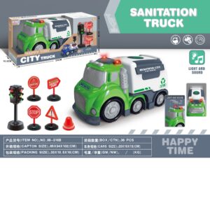 CITY TRUCK seeria prügiauto Sanitation Truck on ideaalne mänguasi igale väikesele autotööstuse ja spetsiaalsete linnasõidukite fännidele. Komplektis on realistlikult reprodutseeritud prügiauto, mis on valmistatud vastupidavast plastikust, mis on varustatud valgus- ja heliefektidega, mis aktiveeruvad sõiduki katusel olevale nupule vajutades. Mänguasjal on tarvikud nagu valgusfoor, liiklusmärgid ja koonus. ✅ Omadused: ✔️ Valmistatud tugevatest materjalidest ✔️ Varustatud valgus- ja heliefektidega ✔️ Kaasas lisad: foor, liiklusmärgid, koonus ✅ Mänguasi arendab: ✔️ Kujutlusvõimet✔️ Loomingut✔️ Käelised oskused ⚡Kaasas patareid ⚡