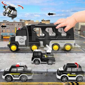Suur politseiveok + 4 autot kaubamärgilt Woopie See väikestele politseihuvilistele mõeldud viis-ühes mänguasi on ideaalne komplekt igale väikesele päästjale! Vajutage veoki kabiini ülaosas olevat nuppu, et näha eredaid vilkuvaid tulesid ja kuulda realistlikke sireene, mis on lastele väga atraktiivsed. Komplektis on suur transpordiauto ja neli politseiautot: soomusauto, veekahuriga veoauto, helikopter, politseiauto. Igal sõidukil on liikuvad elemendid, mis panevad teie lapse päästeoperatsioonide ajal end tõelise kangelasena tundma! Komplekt on suurepärane idee sünnipäevaks, jõuludeks või muuks sündmuseks. Omadused: – Mänguasi vanusele alates 3. eluaastast – 5 autost koosnev komplekt (XXL puksiirauto ja 4 minisõidukit) – Interaktiivne mänguasi – helid ja tuled – Mänguasi töötab 3 “AA” patareiga (ei sisaldu komplektis) – Mänguasi sobib ideaalselt nii õues kui ka siseruumides mängimiseks. Väikeste laste mänguautodega manipuleerimine, ekskavaatori pööramine või betoonisegisti liigutamine aitavad arendada täpseid käteliigutusi. Kujutlusvõime: need mänguasjad võimaldavad lastel ette kujutada, mis tunne on olla veoautojuht, ekskavaatori operaator või ehitustööline. Suhtlemine ja koostöö: kui lapsed koos mängivad, peavad nad läbi saama, koos planeerima ja tegutsema, mis arendab sotsiaalseid oskusi. Mehhanismi mõistmine: Lapsed saavad jälgida, kuidas selliste sõidukite liikuvad osad töötavad, mis võib ärgitada nende tehnilist uudishimu. Komplekti kuulub: Transpordihaagis. Soomustatud auto. Veekahuri veoauto. Helikopteri politseiauto.