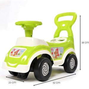 Kas otsite mänguasja, mis mitte ainult ei paku teie väikelapsele palju nalja, vaid arendab ka tema motoorseid ja loogilisi oskusi? Roheline Woopie sorteerija ja hoiukambriga sõiduk on uuenduslik kombinatsioon funktsionaalsusest ja haridusest ühes tootes. See on ideaalne lahendus aktiivsetele pisikestele, kes hakkavad tegema esimesi samme ja maailma avastama. Sõidufunktsioon võimaldab lapsel iseseisvalt liikuda, seljatugi toetab kõndima õppimist ning sisseehitatud sorteerija arendab kognitiivseid ja käelisi oskusi. Lisaeelis on istmealune panipaik, kuhu laps saab hoiustada oma aardeid või sorteerimisklotse. Laps naudib sarve häält. Ergonoomiline disain, soliidne töötlus ja atraktiivsed värvid teevad lapsele mitte ainult rõõmu sellega mängimisest, vaid ka arenevad läbi liikumise, õppimise ja suhtlemise. Kogu asi on valmistatud vastupidavatest ja lapsele ohututest materjalidest, et tagada lapse maksimaalne ohutus ja mugavus. Omadused: – Mänguasi lastele alates 18. elukuust – 4in1 funktsioon: pealesõit, tõukur, jalutuskäik ja sorteerija – Ergonoomiline iste mahuka panipaigaga – ideaalne klotside ja väikeste esemete hoidmiseks – Kontuuriga seljatugi – toimib tõukesanga ja seljatoena – Stabiilne struktuur ja turvalised servad – Maksimaalne turvalisus mängu ajal – 5 interaktiivset värvi plokki sarve ja mannekelladega rool – tutvustab automaailma – Kvaliteetne materjal – Ohutu ja kahjustustekindel – Lihtne käsitsemine – Pole vaja kasutada patareisid – Moodne disain – Atraktiivsed värvid ja visuaalsed detailid – Kasutamiseks kodus ja õues Mänguasi arendab: – Jämemotoorikat – Peenmotoorikat – Motoorikat ja tasakaalutunnet – ▪️Võime tuvastada kujundeid ja loogilist sõltuvust – loogilist mõtlemist ja sõltumatust. mõõdud: 52 x 38 x 23 (cm)
