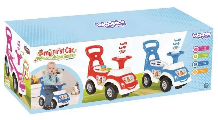 Kas otsite mänguasja, mis mitte ainult ei paku teie väikelapsele palju nalja, vaid arendab ka tema motoorseid ja loogilisi oskusi? Woopie sinine sõiduk koos sorteerimis- ja hoiukambriga on uuenduslik kombinatsioon funktsionaalsusest ja haridusest ühes tootes. See on ideaalne lahendus aktiivsetele pisikestele, kes hakkavad tegema esimesi samme ja maailma avastama. Sõidufunktsioon võimaldab lapsel iseseisvalt liikuda, seljatugi toetab kõndima õppimist ning sisseehitatud sorteerija arendab kognitiivseid ja käelisi oskusi. Lisaeelis on istmealune panipaik, kuhu laps saab hoiustada oma aardeid või sorteerimisklotse. Laps naudib sarve häält. Ergonoomiline disain, soliidne töötlus ja atraktiivsed värvid teevad lapsele mitte ainult rõõmu sellega mängimisest, vaid ka arenevad läbi liikumise, õppimise ja suhtlemise. Kogu asi on valmistatud vastupidavatest ja lapsele ohututest materjalidest, et tagada lapse maksimaalne ohutus ja mugavus. Omadused: – Mänguasi lastele alates 18. elukuust – 4in1 funktsioon: pealesõit, tõukur, jalutuskäik ja sorteerija – Ergonoomiline iste mahuka panipaigaga – ideaalne klotside ja väikeste esemete hoidmiseks – Kontuuriga seljatugi – toimib tõukesanga ja seljatoena – Stabiilne struktuur ja turvalised servad – Maksimaalne turvalisus mängu ajal – 5 interaktiivset värvi plokki sarve ja mannekelladega rool – tutvustab teile automaailma – Kvaliteetne materjal – ohutu ja kahjustustekindel – Lihtne kasutada – ei pea kasutama patareisid – Moodne disain – atraktiivsed värvid ja visuaalsed detailid – Kasutamiseks kodus ja õues Mänguasi arendab: – jämedat motoorseid oskusi – peenmotoorikat – motoorseid oskusi ja tasakaalutunnet – tootesõltuvuse dimensioonide tuvastamise võimet – kujundeid ja loogilist sõltuvust: 52 x 38 x 23 (cm)