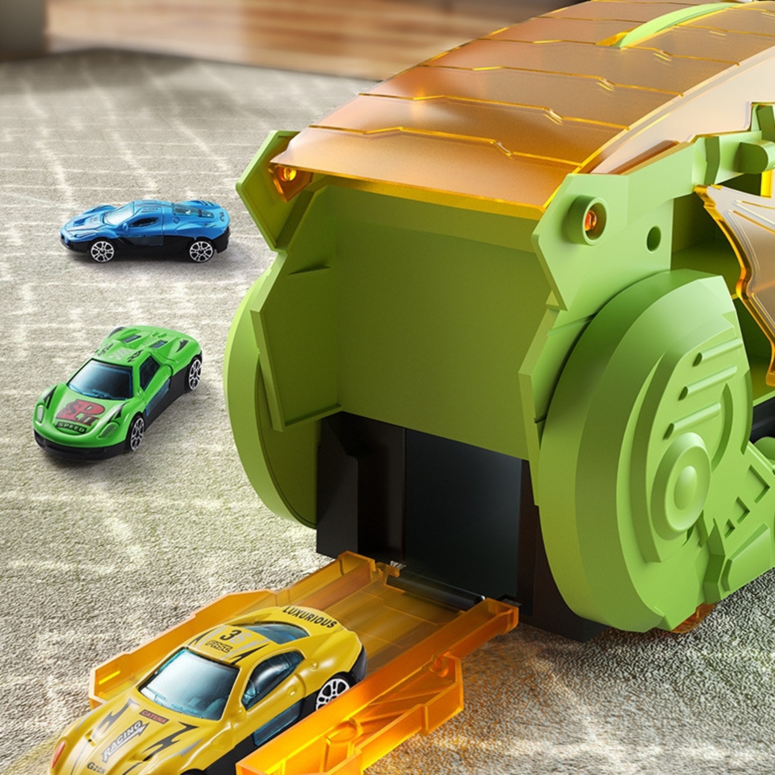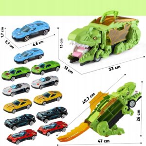 Sukelduge eelajalooliste seikluste ja autosõidu põnevasse maailma! See imeline dinosauruste sööja koos Woopie kaubamärgi autodega on tõeline maiuspala igale väikesele sõidukite ja eelajalooliste olendite fännile. Dinosauruse veoauto mitte ainult ei mahuta kogu autode komplekti, vaid toimib ka interaktiivse liumäena ja on mugav käepidemega kohver. Lahtivoldituna muutub mänguasi võidusõidurajaks, millel kinnitatud autod saavad sõita. Komplektis on koguni 12 väikest sõidukit, nii et melu võib kesta tunde – üksi või koos sõpradega! Liikuvad elemendid, nagu avanev suu, dinosauruse käpad või langetav kaldtee, toovad sisse interaktiivsuse lisamõõtme, arendades samal ajal lapse käelisi oskusi ja kujutlusvõimet. Kogu asi on valmistatud tugevast, turvalisest materjalist, mis on vastupidav intensiivsele mängule. Tänu kokkupandavusele ja mugavale käepidemele sobib komplekt suurepäraselt nii koju kui reisile. See on ideaalne mänguasi lastele, kes armastavad sõidukeid, dinosauruseid, aga ka loomingulisi konstruktsioone ja dünaamilist mängu. Sellest komplektist saab kindlasti teie lapse kollektsiooni lemmik! Omadused: – Mänguasi lastele alates 3. eluaastast – Dinosauruse veoauto toimib käepidemega mugava kohvrina – Kokkupandav liumägi ja võidusõidurada – Liigutavad elemendid – dinosauruse avanev suu, lahtikäivad kaldteed, interaktiivsed rajafragmendid – Kõik autod mahuvad kohvri sisse, mis aitab õppida korda hoidma ja ruumi organiseerima. – Valmistatud vastupidavatest, ohututest ja mittetoksilistest materjalidest, vastupidav intensiivsele mängule – Ümar viimistlus tagab ohutuse iseseisval mängimisel – Erksad värvid ja rafineeritud detailid rõõmustavad iga last ja muudavad komplekti lemmikmänguasja Komplekti kuulub: – kohvrifunktsiooniga dinosauruse veoauto – 12 värvilist metallkorpusega autot Mänguasi arendab: – käsitsi mõtlemisvõimet – loogilist kujutlusvõimet – sotsiaalne integratsioon koos lõbusalt aega veetes