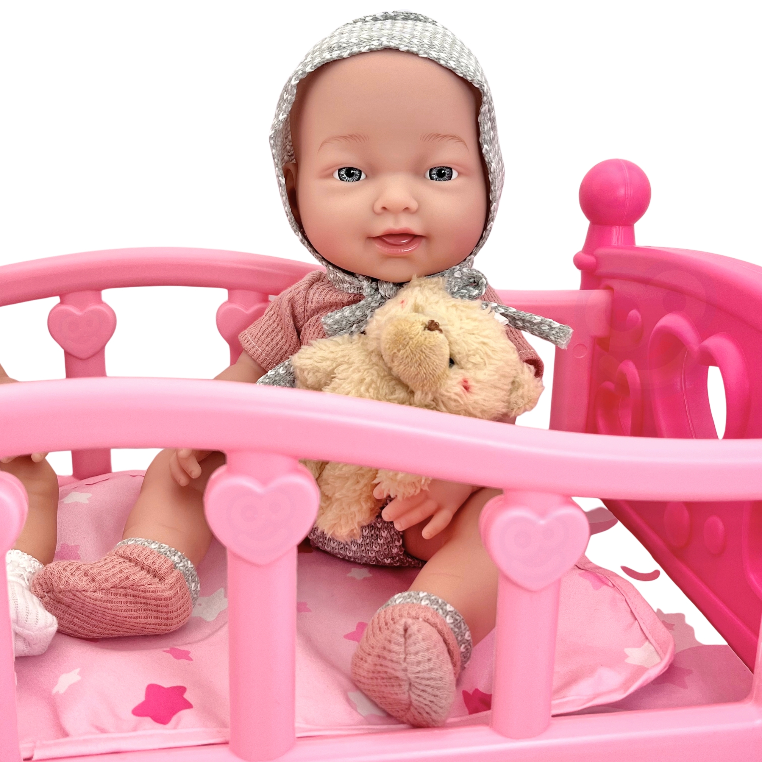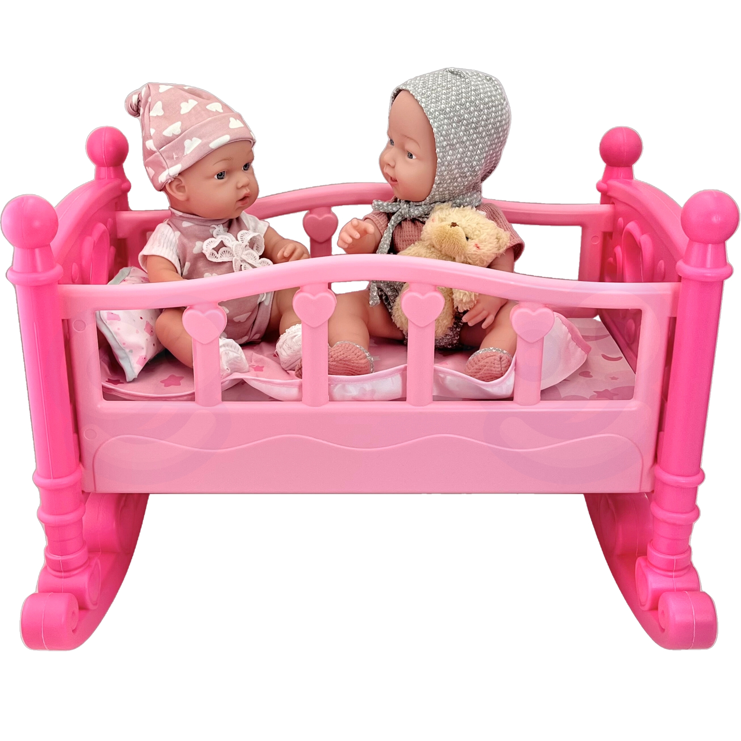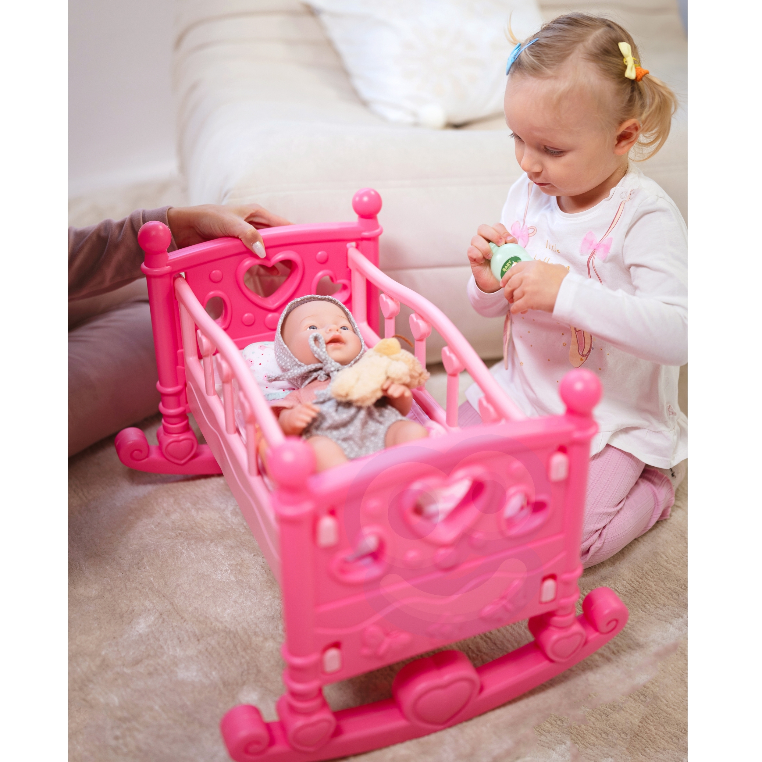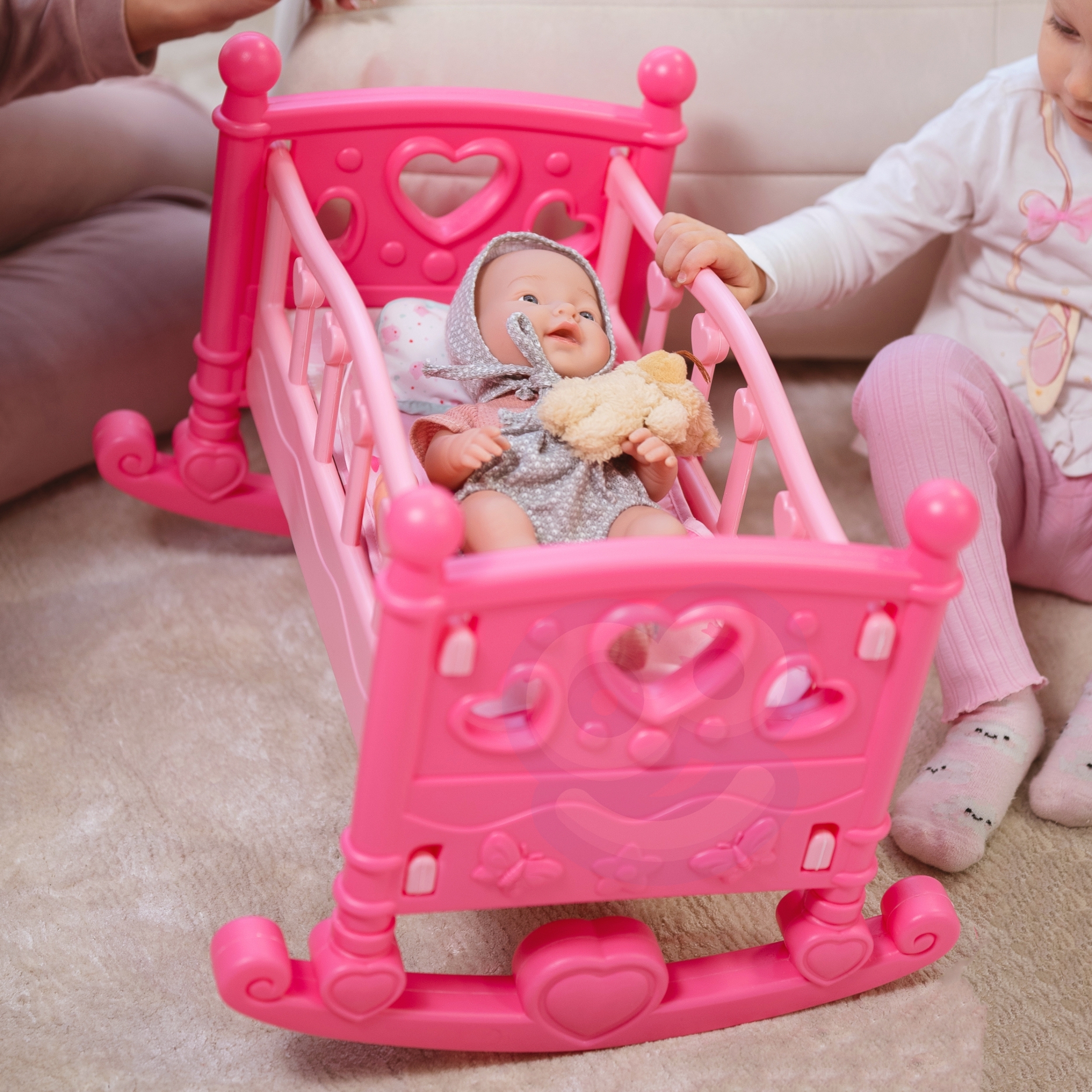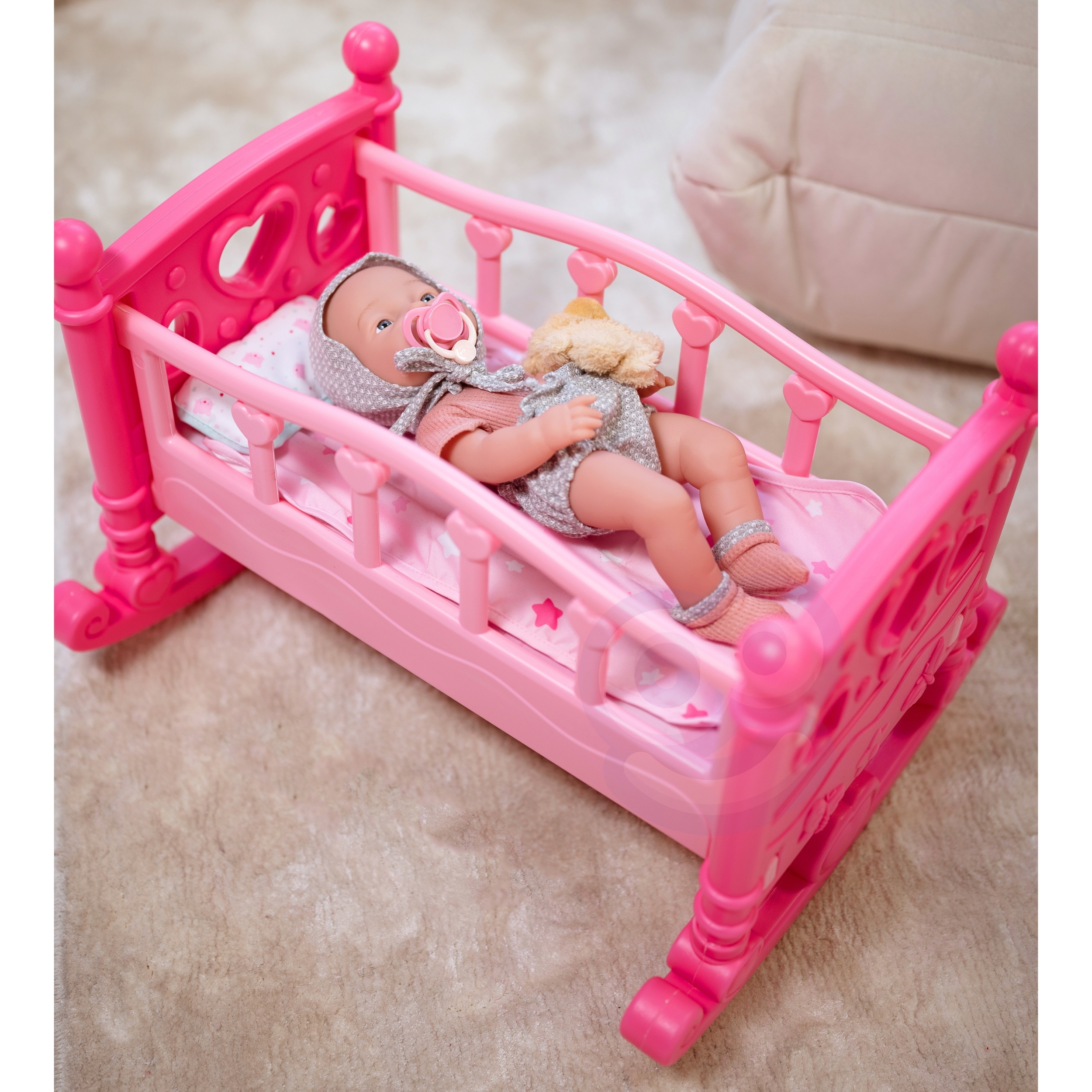 WOOPIE Royal Doll Cradle on ideaalne voodi väikestele printsessidele! Kas teie lapsele meeldib ema mängida? See ilus roosa nukuhäll on kõik, mida ta vajab! WOOPIE Royal häll on mõeldud väikestele, kes soovivad, et nende nukud tunneksid end erilisena – nagu tõelised printsessid. Tugev, kuid kerge konstruktsioon muudab selle ideaalseks igapäevaseks mängimiseks! Omadused: – Mänguasi vanuses 3 eluaastat – Ilus roosa värv armsate südametega köidab iga tüdruku tähelepanu – Seest leiate pehme teki ja padja – valmis nuku kaissu magama panema! – Võimaldab lapsel astuda ema, hooldaja rolli, arendades hoolt ja kujutlusvõimet – Kiire kokkupanek ilma igasuguste tööriistadeta – ideaalne väikestele kätele – Ümardatud servad täieliku ohutuse tagamiseks – Hariv mänguasi, mis õpetab vastutust ja hoolimist Komplekti kuulub: – Voodi – Padi – Tekk – Jalused, mis võimaldavad muuta voodi hälliks Hälli pikkus ja laius kuni 19 cm nukule. See on suurepärane kingiidee igale lapsele, kes armastab oma nukkude eest hoolitseda!