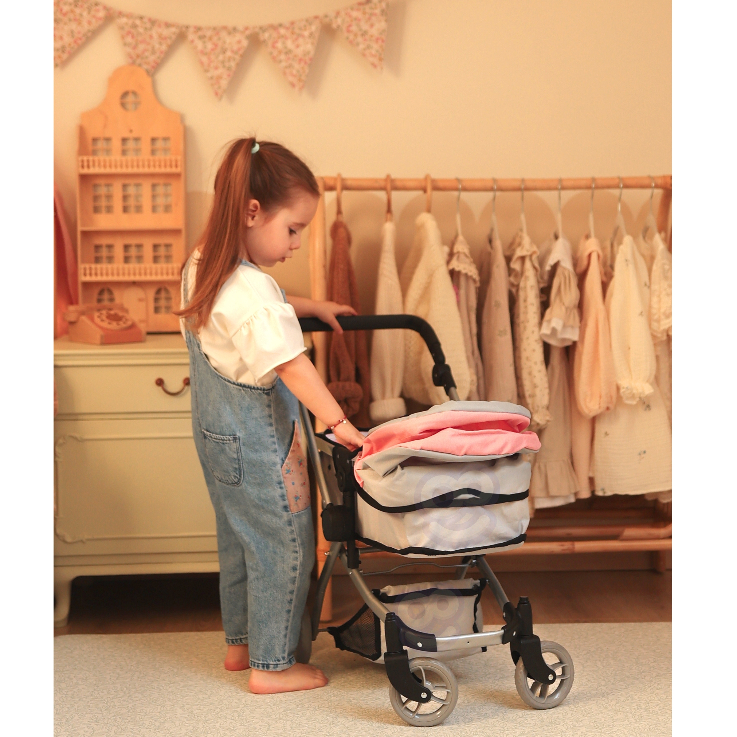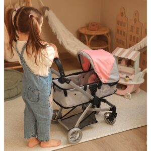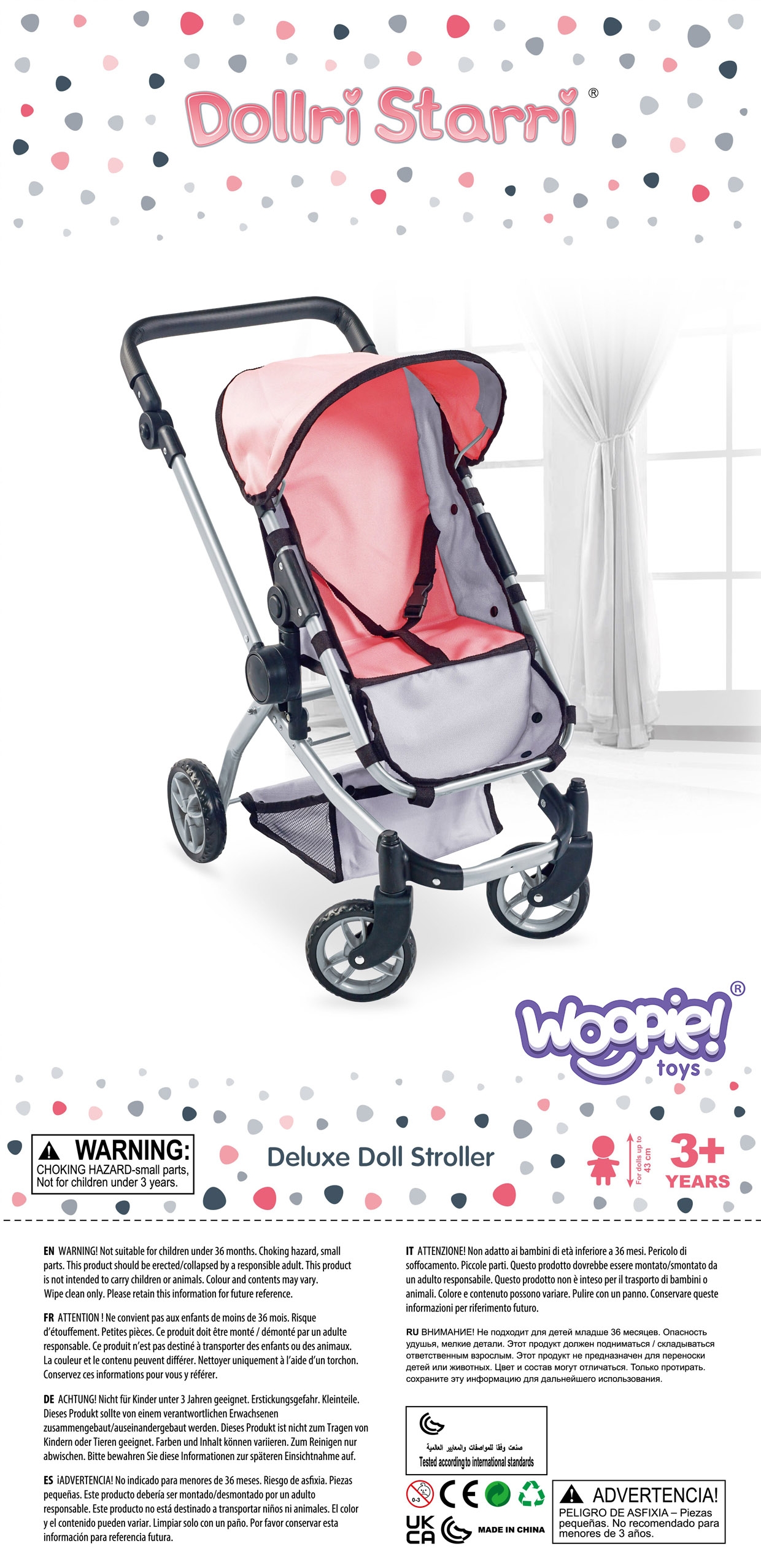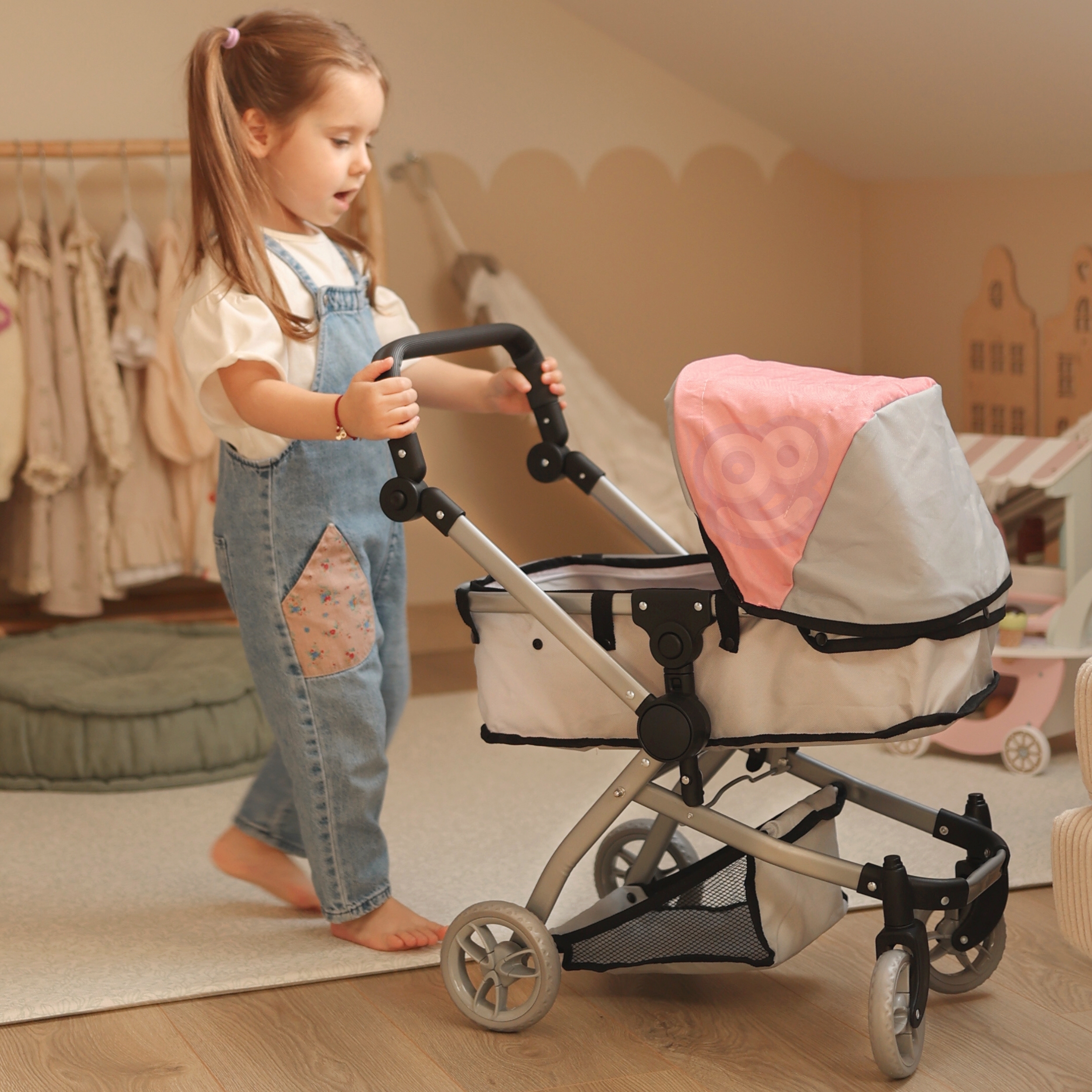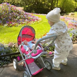 Woopie nukukäru on täiuslik kombinatsioon kaasaegsest disainist ja funktsionaalsusest, mis sobib ideaalselt lastele, kes armastavad oma nukkudega mängida. Selle uuenduslik disain võimaldab hõlpsasti vahetada jalutuskäru gondli versioonilt praktiliseks jalutuskäruks, mis muudab selle äärmiselt mitmekülgseks. Iste on disainitud nii, et see imiteeriks reaalselt ehtsat jalutuskäru, seda saab reguleerida mitmesse asendisse, nii on nukul alati mugav koht. Lisaks võimaldab pööratav käepide seada jalutuskäru kas ette- või seljaga sõidusuunas, mis annab lapsele suurema mänguvabaduse. Kärul on reguleeritav käepideme kõrgus, mida saab reguleerida vastavalt lapse pikkusele. Samuti on see varustatud turvavöödega, mis hoiavad nukku kindlalt paigal, ning praktilise korviga aksessuaaride ja nipsasjade jaoks, mis on ideaalne kõigi nuku hooldamiseks vajalike esemete jaoks. Omadused: – mänguasi, mis on mõeldud lastele alates 3. eluaastast – kaasaegne disain – 2 in 1 – sügav vanker/gondel ja jalutuskäru – pööratav käepide ette- või tahapoole – reguleeritav käepideme kõrgus – turvarihmad – korv väikeste asjade jaoks – kerge ja tugev raam – vaiksed rattad kõvast painduvast materjalist