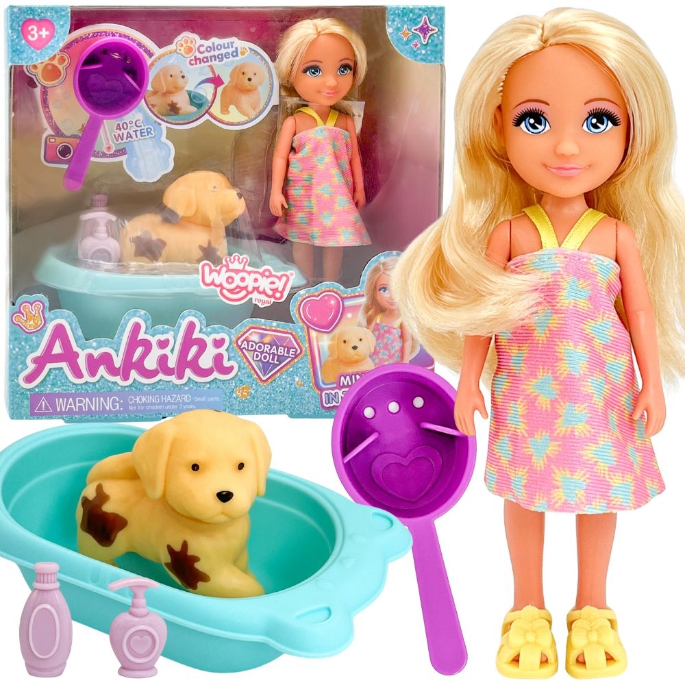 See ainulaadne vanninuku ja koera komplekt kaubamärgilt WOOPIE ROYAL! See on hoolitseva loomakaitsjana fantastilise sõltuvust tekitava lõbu tagatis! Suurim atraktsioon on koera välimuse muutmise maagiline funktsioon – vee mõjul kaovad pruunid laigud, mis muudab suplemise realistlikumaks ja rõõmustab väikseid. Komplekti kuulub imearmas koeranukk ja täielik hooldusvarustus, sealhulgas vann koos dušiga. Komplekt arendab lapse vastutusvõimet, kujutlusvõimet ja käelisi oskusi. Kindel ja ohutu töötlus tagab pikki naudingutunde! Omadused: – Mänguasi vanuses 3 aastat ja vanemad – Koera välimuse muutus vee mõjul (kaduvad laigud) – üllatuse ja realismi element. – Lõbus hoolitsus ja rollimängud, mis on seotud loomade eest hoolitsemisega. – Võluv nukk ja aksessuaaride komplekt realistlike vannitamis- ja hooldusstseenide jaoks. Komplekti kuulub: – Ilus nukk – Värvi/välimust muutva funktsiooniga koerakujuke. – dušiga vann. – Hooldustarvikud (vedeliku pudelid, kulp). Mänguasi arendab: – vastutustunnet – kujutlusvõimet ja loovust – käelisi oskusi (peenmotoorikat) – teadmisi maailma kohta – empaatiat.
