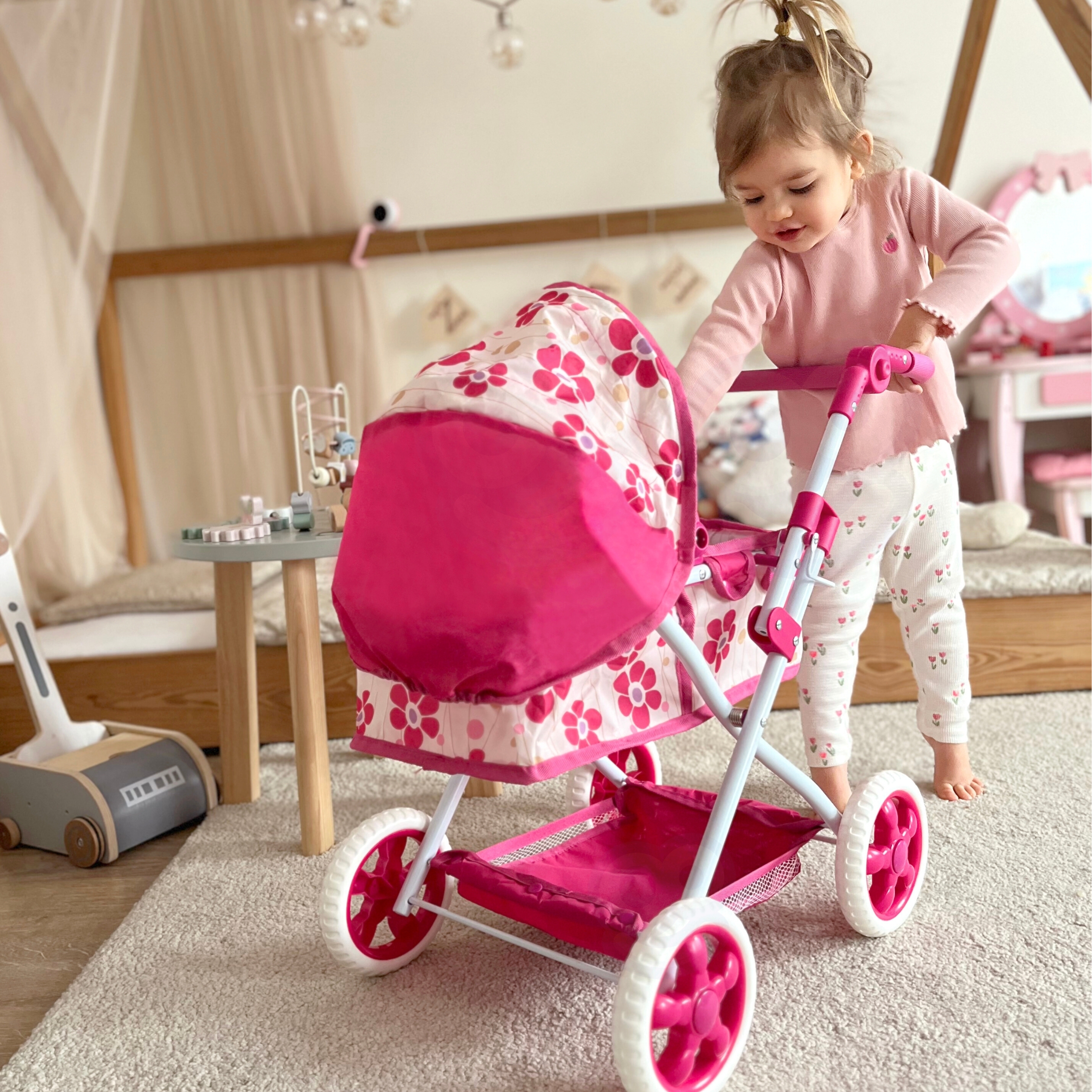 Stiilne, sügav ja funktsionaalne lillemustriga nukukäru kaubamärgilt WOOPIE on ideaalne pakkumine igale väikesele nukkudega mängimise austajale! Kärul on reguleeritav käepide, nii et see kasvab koos lapsega. Selle vaiksed rattad tagavad sujuva sõidu ja stabiilne konstruktsioon tagab turvalise mängimise. Omadused: – Mänguasi alates 3. eluaastast – Reguleeritav käepide – jalutuskäru on lihtne reguleerida lapse pikkusele – Painduva turvisega rattad – Kokkupandav kapuuts ja raam – Käepärane korv väikeste esemete hoidmiseks – Kerge, kuid stabiilne konstruktsioon – Sobib kuni 55 cm kõrgustele nukkudele Nukkudega mängimine arendab: – Sotsiaalseid oskusi – Vastutustunnet – Loomingulisust ja empaatiavõimet