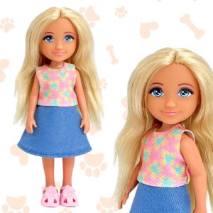 Avastage liigutav loomahoolduse maailm koos imearmsa Ankiki nuku ja tema kolme kutsikaga kaubamärgilt WOOPIE ROYAL! See ainulaadne komplekt on ideaalne pakkumine igale väikesele loomasõbrale. Moekas riietuses nukk Niki on valmis oma väikeste lemmikloomade eest hoolt kandma, andes neile süüa ja luu, millega mängida. Kogu komplekt arendab suurepäraselt lapse vastutustunnet ja empaatiat. Kingi rõõmu ja õppimist läbi mängu! Omadused: – Mänguasi, mis on mõeldud lastele alates 3. eluaastast – Põhiteema – kutsikate eest hoolitsemine ja armastus loomade vastu. – Erksad ja tüdrukulikud värvid – roosa, sinine ja südamemotiivid. – Armas nuku välimus ja realistlikud, armsad kolme kutsika kujukesed korvis. Komplekti kuuluvad: – Ankiki nukk blondide juustega, seljas seelik ja südametega topp. – Kaks imearmsat kutsikakujukest korvis – Lilla korv/voodi kutsikatele. – Aksessuaarid söötmiseks ja mängimiseks – lutipudel ja suur koeraluu. Mänguasi arendab: – empaatiat ja vastutustunnet – käelisi oskusi – loovust ja kujutlusvõimet – rollimänge – armastust loomade vastu.