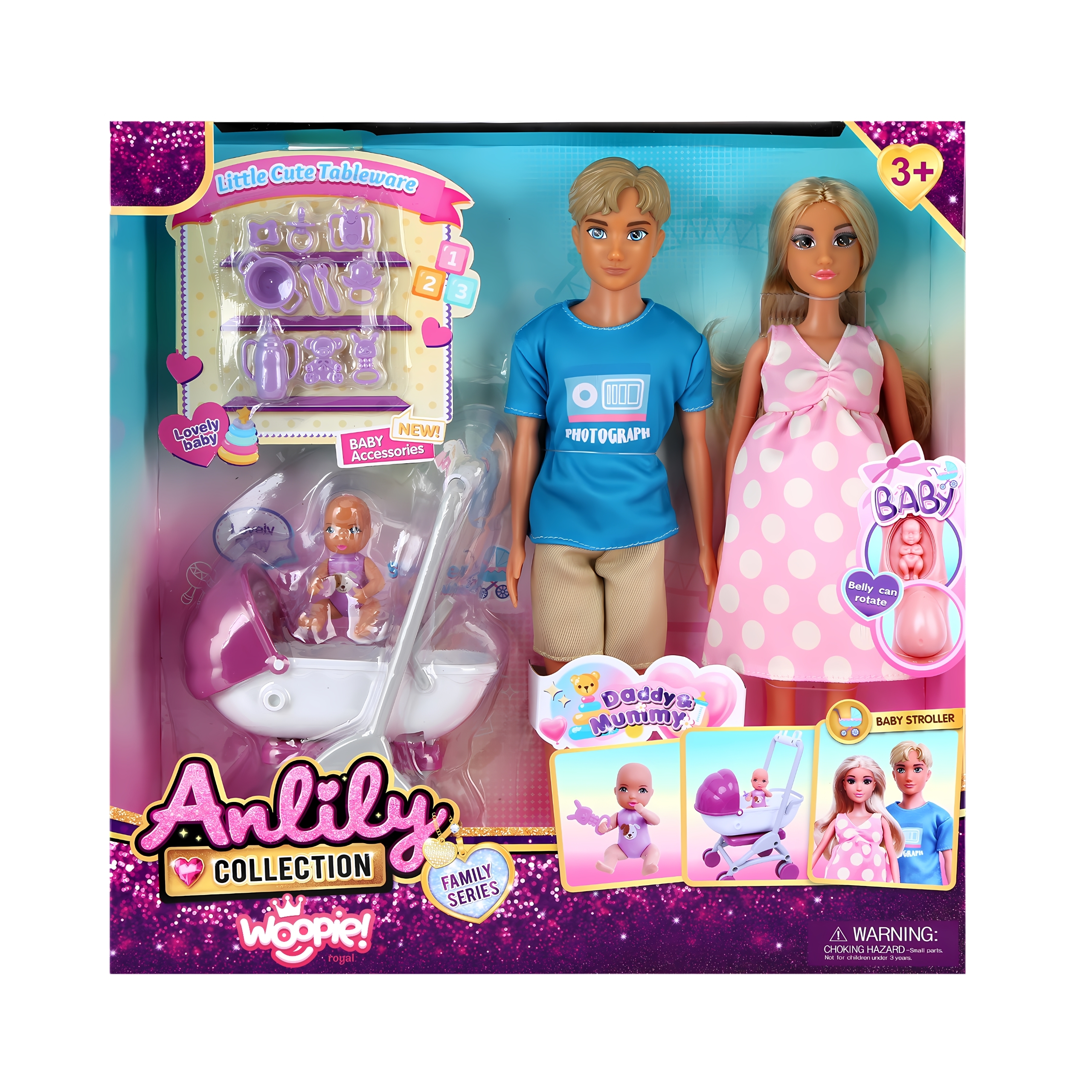 Brändi Woopie nukkudega perekomplekt on suurepärane pakkumine lastele, kes armastavad temaatilisi mänge ja igapäevaseid sotsiaalseid rolle. Komplekti kuuluvad lapseootel emanukk, stiilne issi, beebi, rikkalik aksessuaaride komplekt ja funktsionaalne jalutuskäru beebi transportimiseks. Komplekt viitab stseenidele pereelust, võimaldades lapsel luua oma lugusid, mis õpetavad empaatiat, vastutust ja teiste eest hoolitsemist. Emanukk on riietatud võluvasse roosasse täpilisesse kleiti ning tema kõhul on eemaldatav beebifiguur. Isa tegelane on moodne isa stiilses t-särgis. Beebi kärus ja väikesed aksessuaarid nagu pudel, kauss, lutt või mähkmed, mis suurendavad realistlikkust ja kaasavad lapse loovusele, täiendavad komplekti. Omadused: – Mänguasi lastele alates 3. eluaastast – Täielik perekomplekt koos ema, isa ja lapse nukuga – Ema kõhult eemaldatav beebi – Stiilne tegelaste välimus – ema roosas kleidis, isa moekas sinises T-särgis – Nuku kandmise funktsiooniga beebikäru – Palju väikseid tarvikuid lapse toitmiseks ja hooldamiseks – lapse jaoks ohutu lapse eest hoolitsemine nukud positsioneerimise ja suhtlemise hõlbustamiseks – Ideaalne hariv mänguasi lastele, kes õpivad empaatiat Komplekti kuulub: – rase emanukk, kelle kõhus on beebi – isanukk – beebinukk – jalutuskäru – tarvikute komplekt: pudel, kauss, lutt, mähkmed, kamm, taldrik Mänguasi arendab: – kujutlusvõimet – emotsionaalset kaasamisvõimet – sotsiaalset rolli suhtlemisoskus – oskus teha koostööd ja mängida rühmas Toote mõõdud: Nukud: 29 x 6 x 3 (cm) Vanker: 15 x 7 x 12 (cm) Pakendi mõõdud: 34 x 32 x 7 (cm)