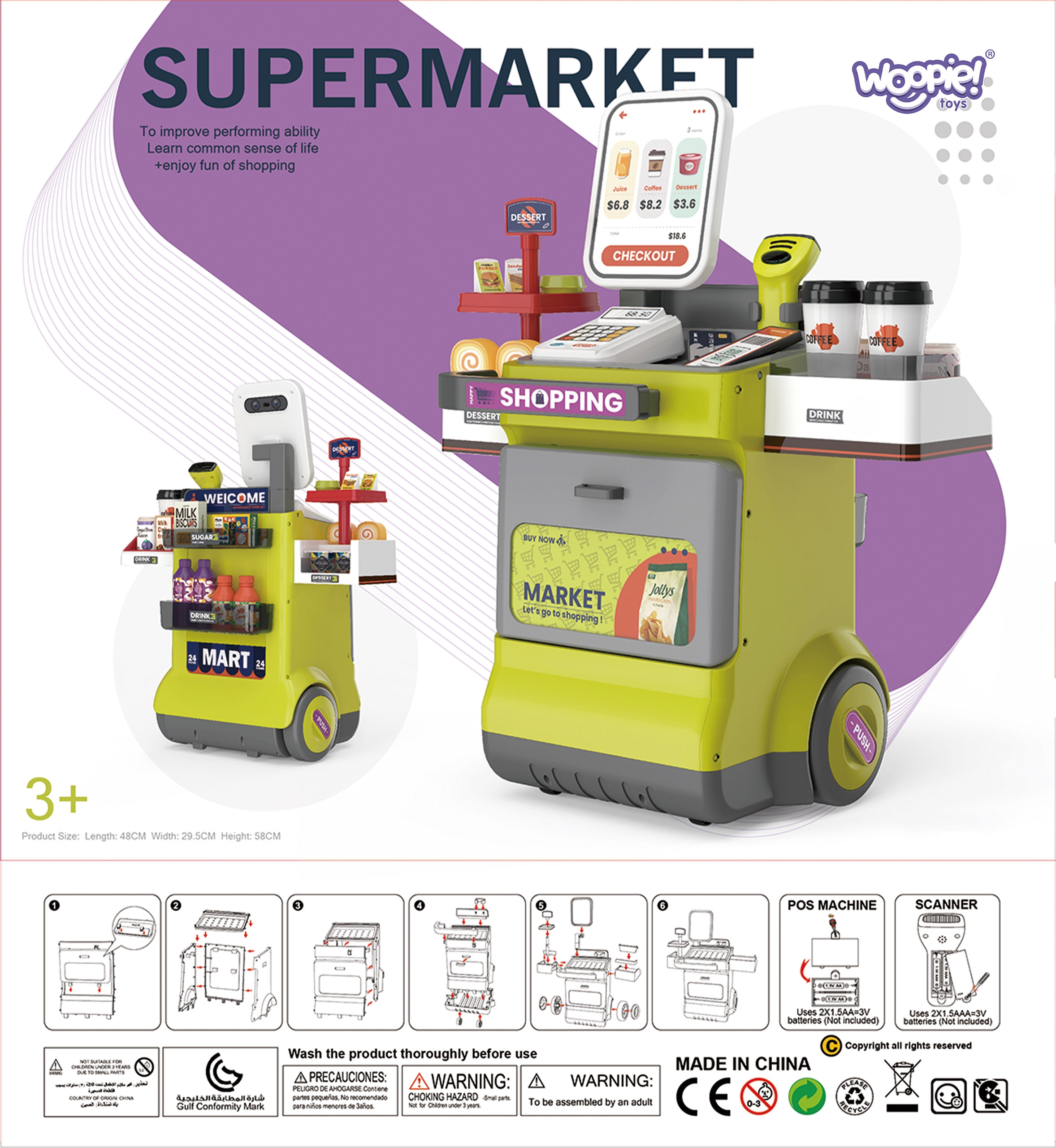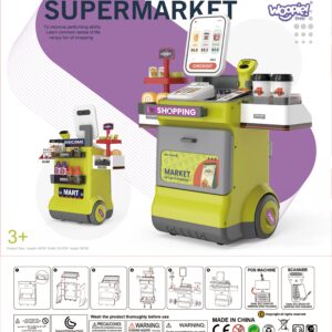 Esitleme erakordset laste supermarketit kaubamärgilt WOOPIE – komplekti täis interaktiivseid funktsioone, mis pakuvad tunde põnevat lõbu nii poistele kui tüdrukutele. 48 erineva kujutlusvõimet ergutava ning sotsiaalseid ja motoorseid oskusi arendava lisatarvikuga muutub see mänguasi mitte ainult rõõmuallikaks, vaid ka õppevahendiks. Meie Supermarketil on kolm põhifunktsiooni: skanner, kaubakaardilugeja ja krediitkaardilugeja, mis on varustatud heli ja valgusega. See on meelelahutuse ja õppimise allikas, mis hoiab lapsed tundideks kaasas. Meie väikesed kliendid saavad nautida koos sõprade või vanematega mängimist, arendades samal ajal oma kujutlusvõimet ja sotsiaalseid oskusi. Mänguasi keskendub varajastele finantsoskustele, peenmotoorikale ja sotsiaalsele suhtlusele, julgustades lapsi mängima ilma elektroonikast sõltumata. Omadused: – Mänguasi vanuses 3 aastat – Täpne töö – Turvaline mänguasi – Ratastel liikuv mänguasi – Interaktiivsed elemendid – Suurepärane rollimänguks Komplekti kuulub: – Skänner – Krediitkaart – Kassaaparaat – Toidukaubad – Mänguasja raha – Kaubakaardilugeja