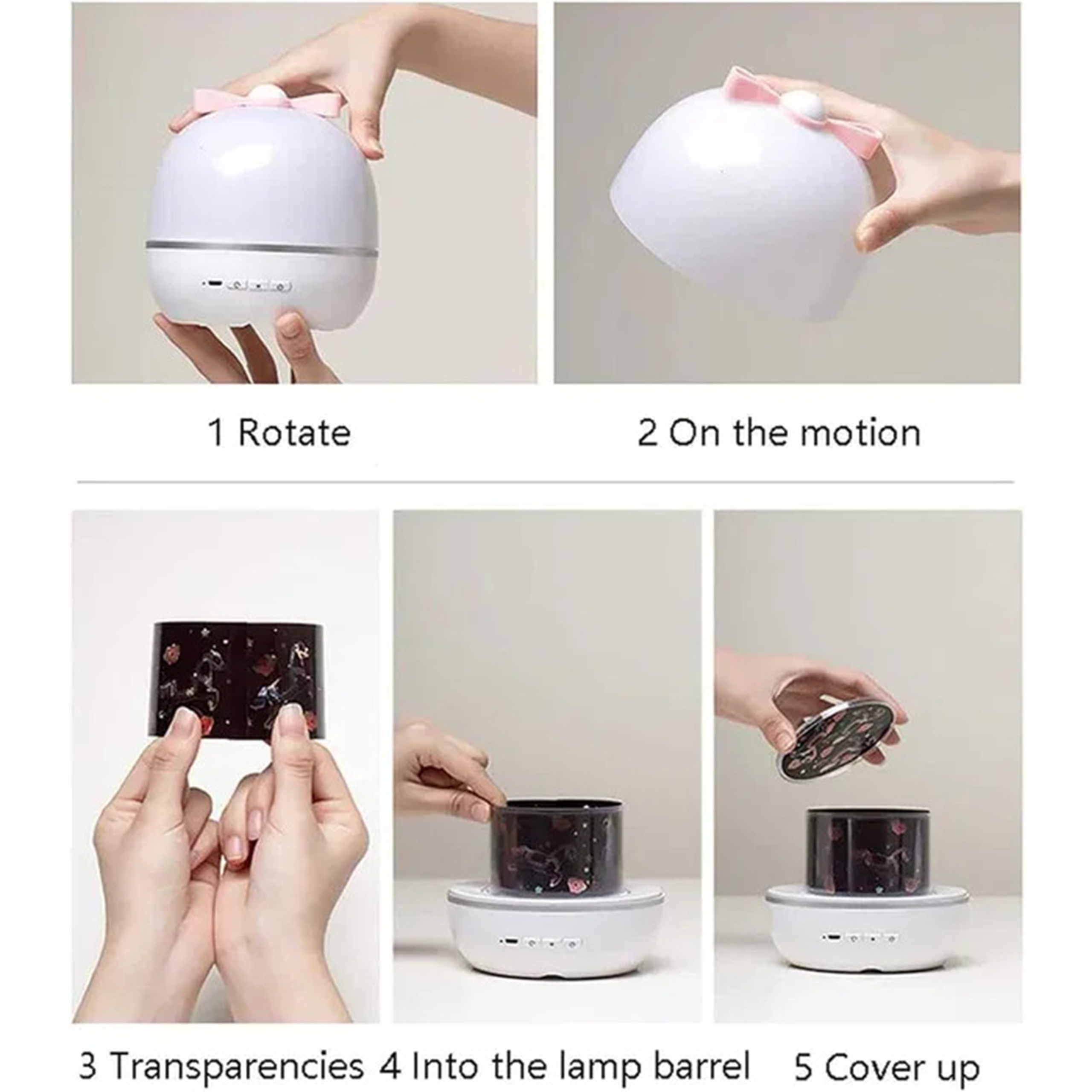 Võluv “Magic Dreams” projektor kaubamärgilt WOOPIE lastele on fantaasia tõeline pidu! Varustatud kuue erineva režiimiga, pakub see lugematuid tunde suurepärast lõbu ja lõõgastust. Lapsed saavad valida kuue erineva mustriga ülekatte vahel, mis viivad nad erinevatesse fantastilisse maailma. Maagiline projektor on ideaalne kingitus igale lapsele. Tänu kuuele erinevale režiimile, muusikafunktsioonile ja lihtsale USB-laadimisele pakub see palju lõbusaid ja unustamatuid elamusi. Ükskõik, kas teie laps soovib tähistaeva all magama jääda, veealust maailma uurida või värviliste piltidega sünnipäeva tähistada, see projektor teeb kõik tema unistused teoks. Projektori teema muutmiseks keerake lihtsalt lambi ülemine kate lahti, sisestage uus mustriga kate ja sulgege projektor uuesti. Omadused: – Lihtne režiimide vahel vahetamine, mis võimaldab luua ruumis ainulaadse atmosfääri – Peale muusikarežiimile lülitumist hakkab projektor mängima meeldivat rahustavat meloodiat – Kompaktsete mõõtmete tõttu mahub see igasse lastetuppa – Projektorit laetakse USB kaabli kaudu, mis tagab mugavuse ja võimaluse seda erinevates kohtades kasutada. Kuvamisrežiimid: Ponid – maagilised värvilised ponid, mis muudavad teie lapse toa säravaks ja lisavad sellele võlu. Tähistaevas – ilus tähistaevas öö, mis rõõmustab iga väikest kosmoseavastajat. Veemaailm – sukelduge ookeani sügavustesse, imetledes mereelukaid. Jõuluteema – nautige jõulumeeleolu piltidega, mis on täis jõulumaagiat. Planets in the Sky – avastage kosmose saladusi, imetledes planeete ja galaktikaid. Sünnipäevateema – tähistage erilisi hetki sünnipäevateema ja tekstiga “Palju õnne sünnipäevaks”.
