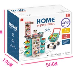 Usaldusväärse Woopie kaubamärgi 47 tarvikuga ostukäruga supermarket on ideaalne pakkumine üle 3-aastastele lastele. Lastele meeldib oma vanemaid jäljendada, seega on see komplekt teie lapsele ideaalne. Rollimäng arendab suuresti lapse kujutlusvõimet ja loovust. Komplektis on kõik vajalikud elemendid väikemüüja töökoha sisustamiseks, sh: kassa koos kaaluga, skanner ja maksekaardilugeja. Kaasasolev ostukorvi võimaldab sõpradega lõbutseda olenemata sellest, kus ja millal ning teie laps teab alati, kuidas supermarketis käituda! Omadused: – punaselt helendav ja iseloomulikku häält tegev skanner, – maksekaardilugeja, mis väljastab heli koos helendava lambiga, – kassaaparaat imiteerib täiuslikult ehtsat, – alus on varustatud riiulitega hinnaga toodete jaoks, – suurepäraselt reprodutseeritud toidukaubad, – esteetilised ja vaoshoitud värvid muudavad selle sobitumiseks igasse interjööri, – maapinnast kuni 5 kinkekarbi letti – 4 poodi. cm. Komplektis on 47 tarvikut: – supermarket, – ostukorv, – poekaal, – vöötkoodilugeja, – krediitkaardilugeja + krediitkaart, – paberraha, – mündid, – toidukaubad (puuviljad, juurviljad, joogid, piimatooted jne). Mänguasi arendab: – kujutlusvõimet ja loovust – sotsiaalseid oskusi – kognitiivseid oskusi – peenmotoorikat