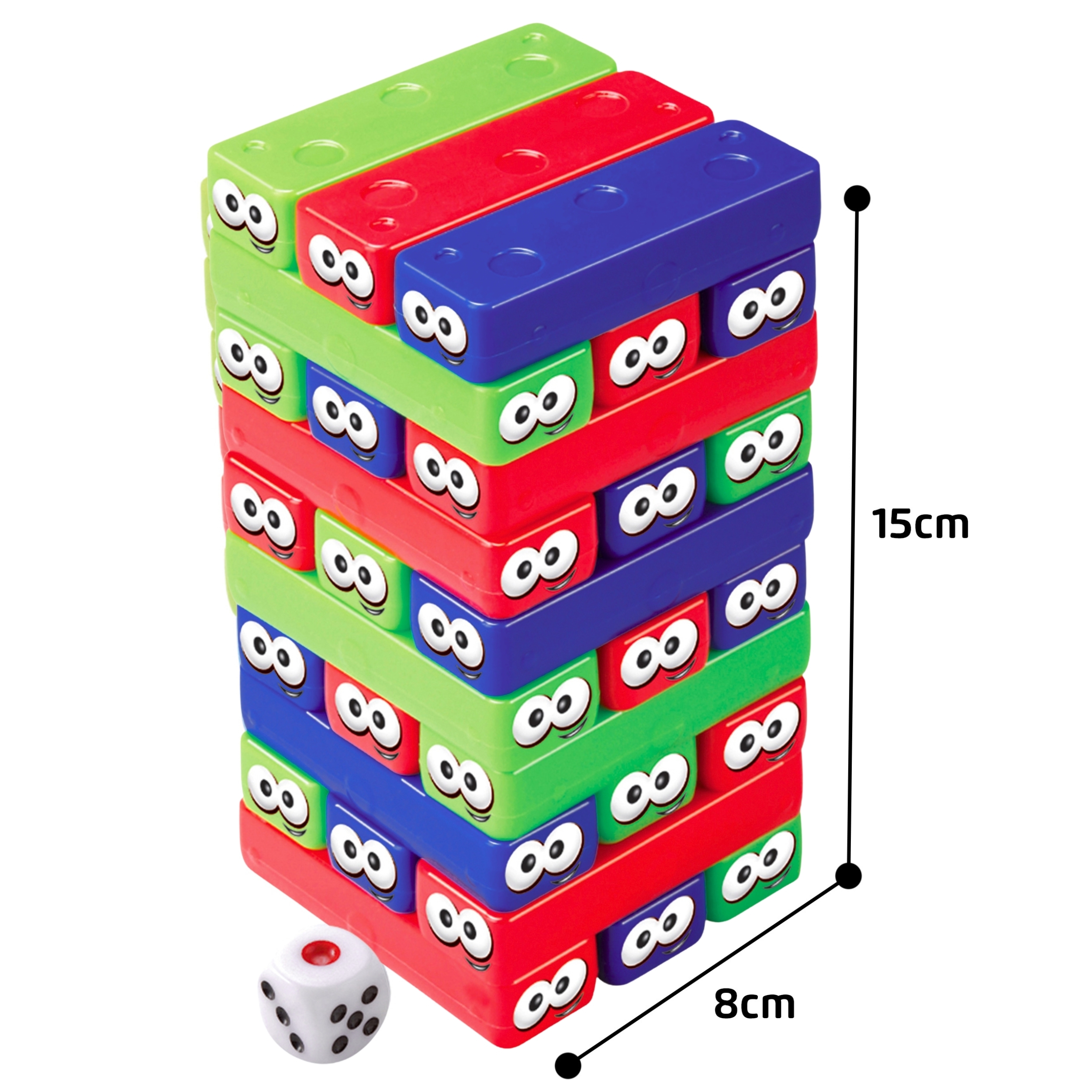 Woopie kaubamärgi Wobble Tower on põnev arkaadmäng kogu perele! Naljakate silmade ja värvilise kuubikuga klotsid loovad suurepärase kombinatsiooni dünaamilisest meelelahutusest ja käeliste oskuste treenimisest. Mäng hõlmab täringutega näidatud värvi klotside väljatõmbamist ja nende asetamist torni tippu – ilma konstruktsiooni ümber lükkamata! Värvilised, kerged elemendid ja lihtsad reeglid muudavad mängu suurepäraseks nii lastele kui ka täiskasvanutele. See on suurepärane idee pereõhtuteks, sõpradega kohtumiseks või lõbusaks lasteaias. Mäng õpetab teie lapsele nutikust, reflekse ja arendab tema meelt. Sellel on positiivne mõju käeliste oskuste arengule. Omadused: – Mänguasi lastele alates 3. eluaastast – Värvilised silmadega klotsid kolmes erksas värvitoonis: punane, roheline ja sinine – Värviliste seintega täringud, mis juhuslikult muudavad mängija liikumist – Ohutu materjal – vastupidav, kerge ja ümarad servad – Mäng 2-4 mängijale – Ideaalne õdedele-vendadele ja kogu perele – Lihtsad reeglid – Arusaadav ja keskendumisvõimeline ka kõige pisematele. – ideaalne kingituseks Komplekt sisaldab: – 30 silmadega plastikklotsi – 1 täringut värvidega – 1 kasutusjuhend – Tootegraafikaga pakkimine Mänguasi arendab: – käelist osavust – käe-silma koordinatsiooni – keskendumist ja kannatlikkust – loogilist mõtlemist – reflekse ja kiiret otsustusvõimet – koostööd ja suhtlemist grupis Toote mõõdud: 19,5 x 2 x 9,5 cm pakis 2 x 9,5 cm. 8 (cm)