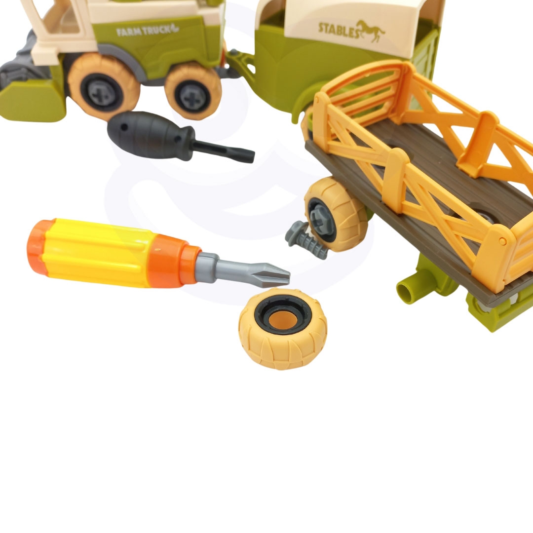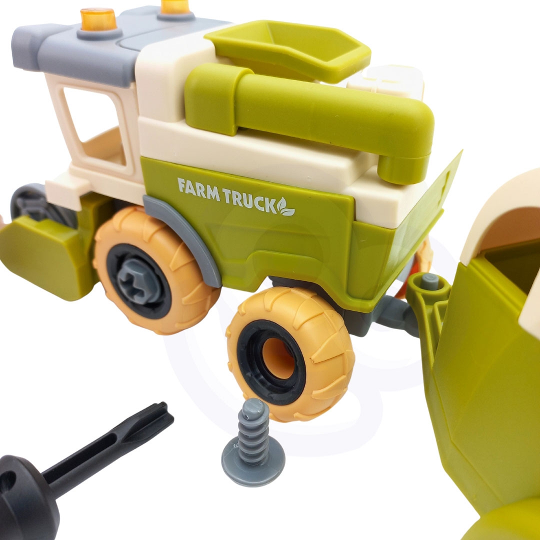 Farmi kokkupandud ehituskomplekt kaubamärgilt WOOPIE on täielik komplekt isetegemise ja taluhuvilistele. Lapsel on kokku panna kombain ja 2 haagist. Pööramine on teie lapse jaoks lihtne, kuid nõuab keskendumist. Abiks on komplektis erinevate otstega kruvikeerajad, et laps saaks proovida erinevate variantidega. Talumeeleolu loovad hobuse, taluniku, 2 lamba, talu, 2 märgi ja heina kujud. Täiskomplektid põllumehele. Mänguasi arendab käelisi oskusi, nn peenmotoorikat – käte liikumist. Farmi mängides avardab teie väikelaps oma kujutlusvõimet ja loovust. Omadused: – mänguasi vanuses 3 ja vanemad, – ehituskomplekt kokkupanekuks, – kokkupanekuks: kombain ja 2 haagist, – komplekti kuulub ka: kruvikeeraja; 3 otsaga kruvikeeraja; figuurid hobune, talunik, 2 lammast, aedik, 2 tegelast ja hein, – liigutatavad elemendid – rattad, – talu motiiv, – mänguasi arendab lapse käelisi oskusi, ergutab kujutlusvõimet ja loovust ning tutvustab väikese isetegemishuvilise maailma, – pakendil kokkupanemisjuhend, – kinkepakend koos käepidemega.