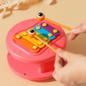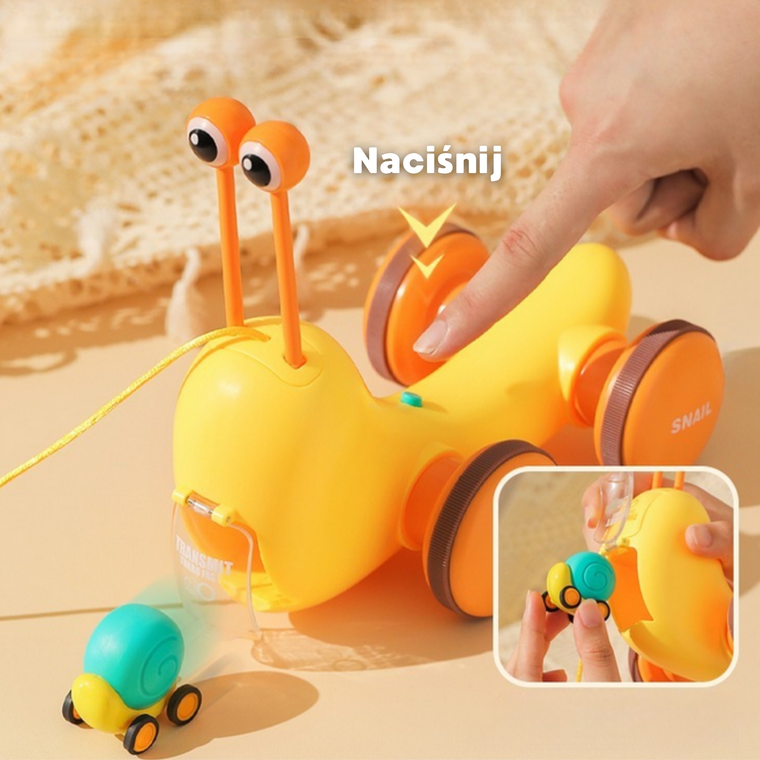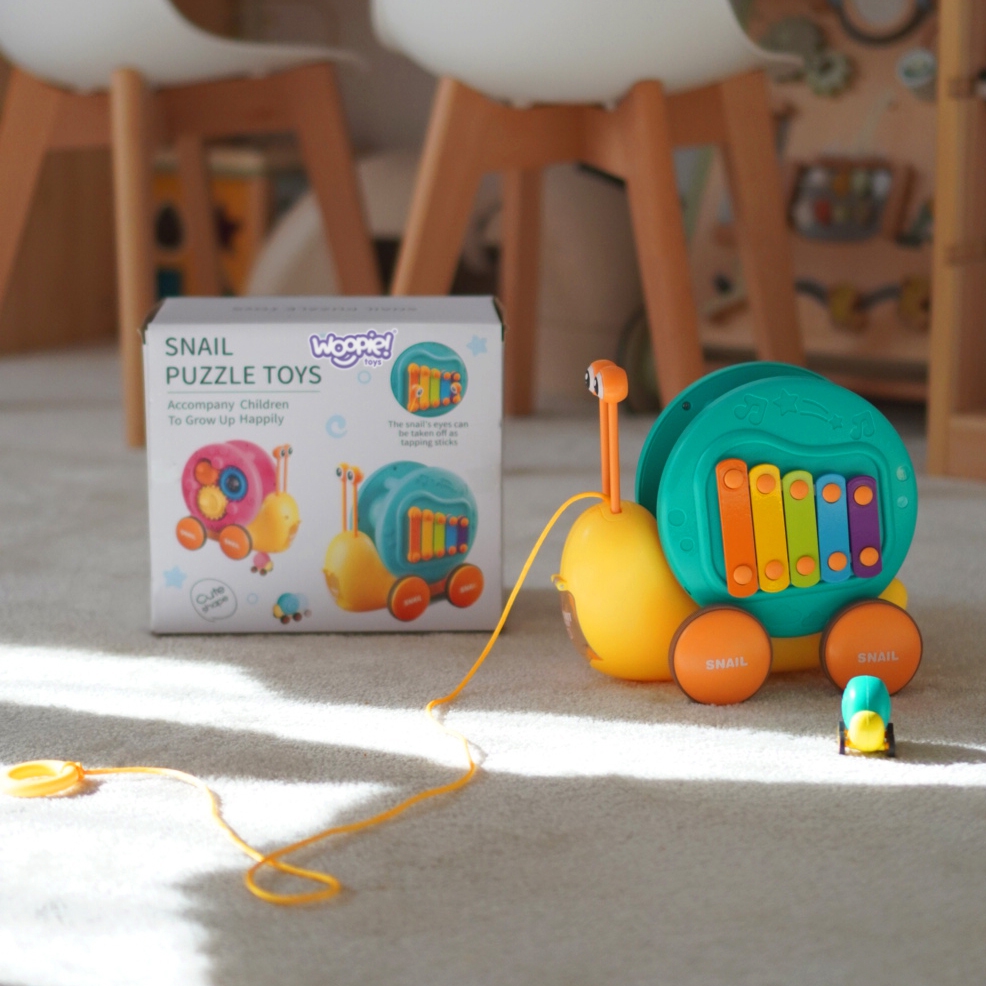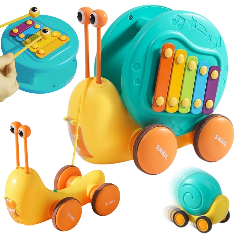 Multifunktsionaalne tigude lükkamise mänguasi kaubamärgilt WOOPIE, mis köidab laste tähelepanu ja ergutab nende kujutlusvõimet. Erksad värvid parandavad ka nende visuaalset taju ja esteetilist taju. Tigu tõmbamise mänguasi pakub erinevaid võimalusi mängimiseks ja õppimiseks. Klahve saab vajutada, et treenida laste kuulmist ja käe-silma koordinatsiooni. Tegu saab ka rihma otsa tõmmata või lükata ja lasta mööda põrandat libiseda, mis lisab lõbusust ja väljakutset. Lapsed õpivad mängides tundma loomi, muusikat ja põhjus-tagajärg seoseid. Julgustage jälgimist, loogilist mõtlemist ja füüsilist koordinatsiooni, kuna teie laps naudib tundide kaupa loomingulist mängu. Tigutõmbemänguasi on suurepärane võimalus oma lastega õnnelikku aega jagada. Emmed saavad oma pisikestega mängida ja vaadata, kuidas nad tigu liigutades itsitavad. See mänguasi sobib perekondlikuks suhtluseks ja võib suurendada vastastikusi tundeid. Mänguasi koosneb kahest osast: teokarp – mis sisaldab taldrikuid, ja silmade kujulised pulgad (asetatakse kesta sisse). Teine osa on väikese teoauto kanderakett – mänguasja tagaküljel on nupp, mis avab autole kanderaketi. Omadused: – Lastele alates 18. elukuust – Teo kõrgus on 18 cm – Sellel on nupp, mis tulistab väikest tigu – Eemaldatavad silmad, tänu millele saate klahve koputada – Vastupidav nöör, mille abil saate mänguasja tõmmata – Teo tõmbamisel pöörleb kest vastupidises suunas, luues laheda visuaalse efekti. – Vastupidav kõrgelt kukkumisele – Teo silmade jaoks on võimalik avada karbi aukudega – Karbile paigaldatud taldrikud – Väikese teoauto veeskaja Komplekti kuulub: – Teokujuline mänguasi – Taldrikud, mida saab mängida tänu lihtsamale teo eemaldamise funktsioonile – arendavad motoorseid oskusi – Uudishimulikkus -: ja avastus – loogiline mõtlemine