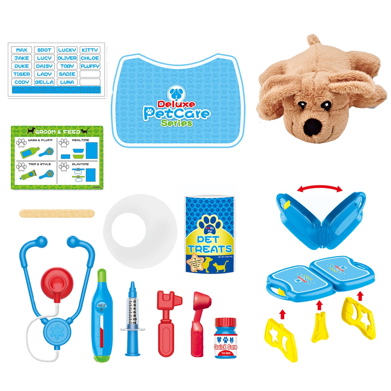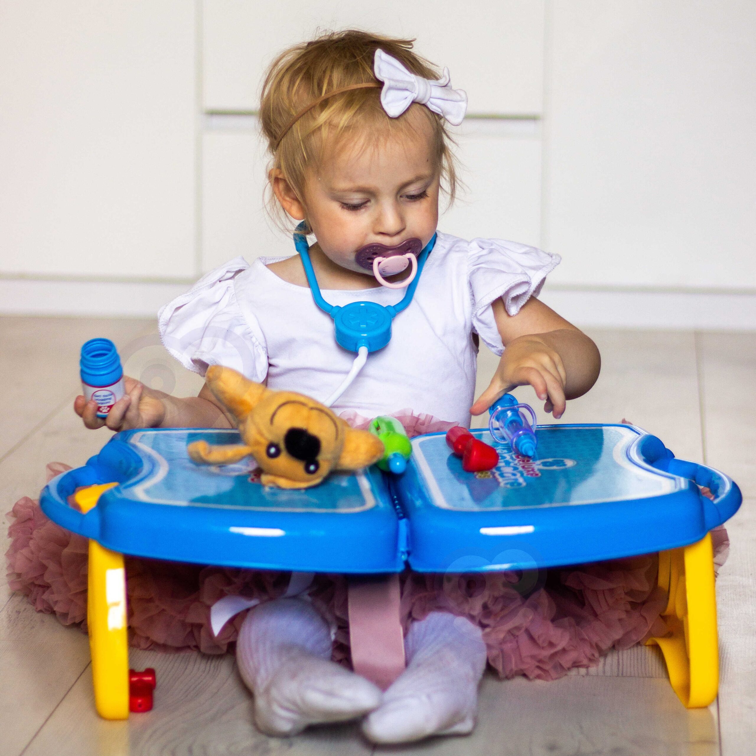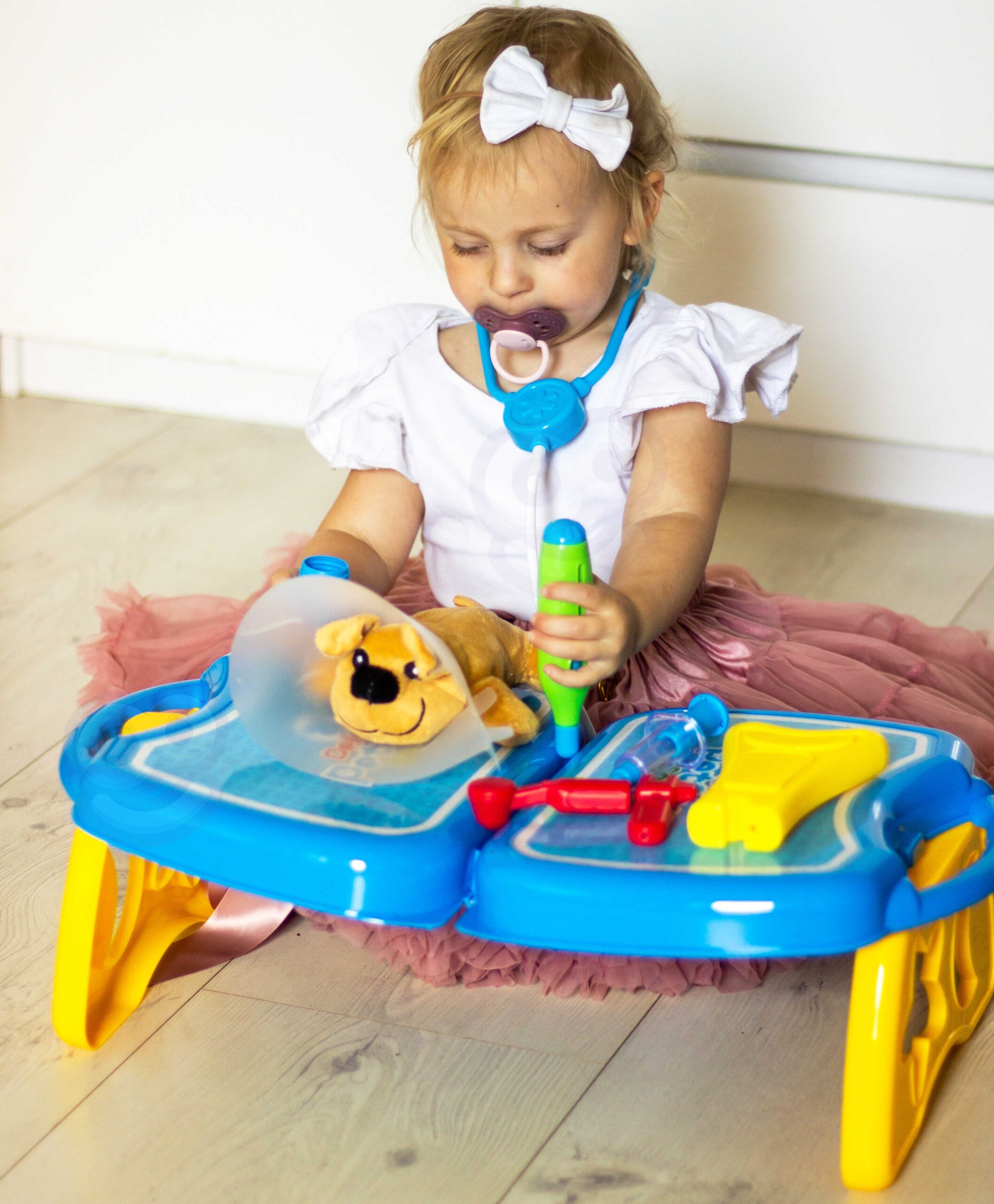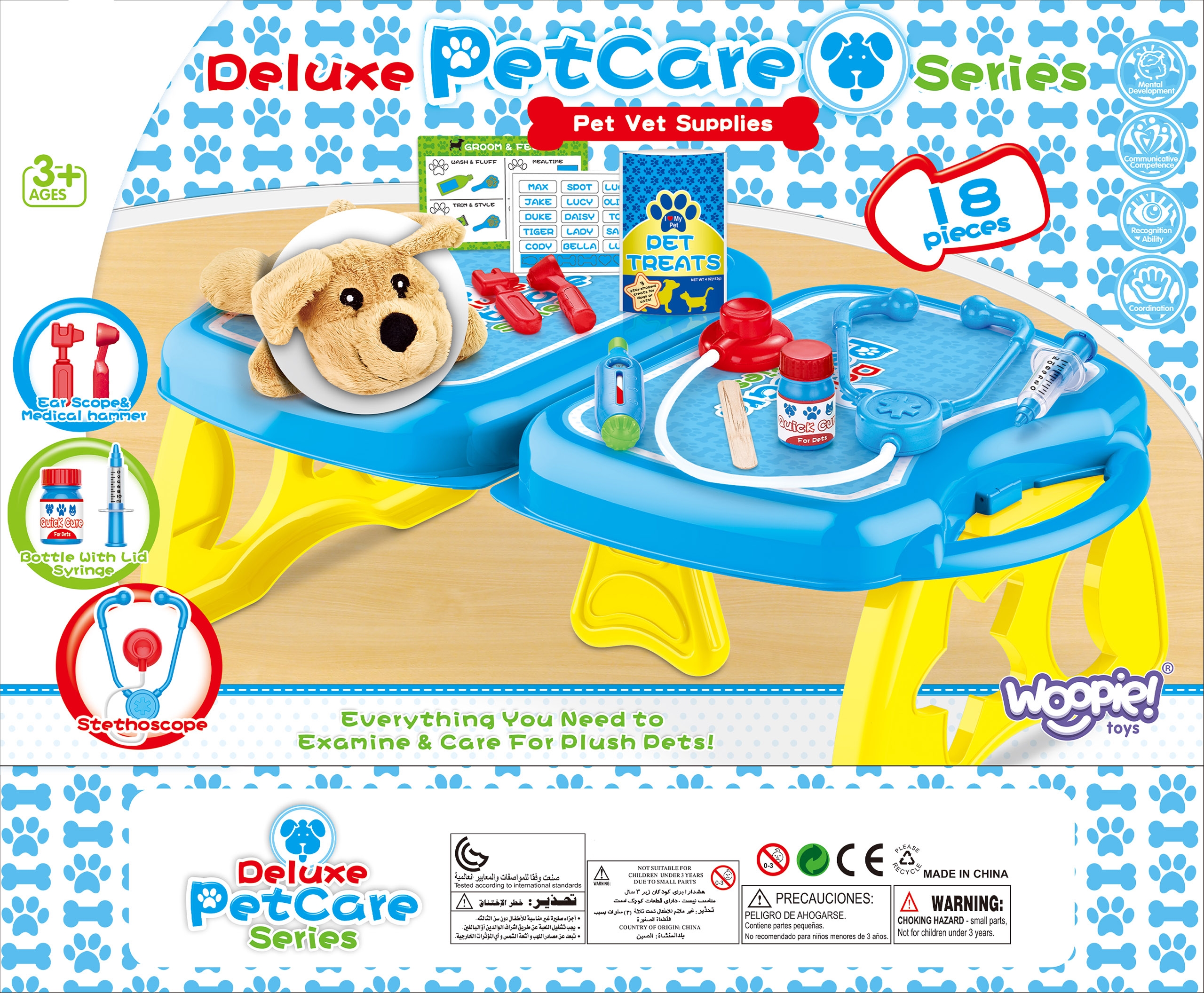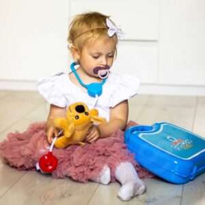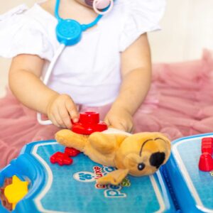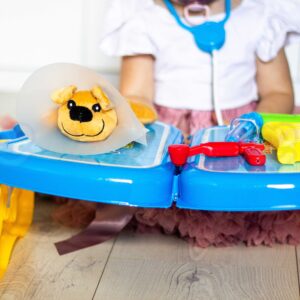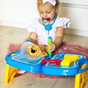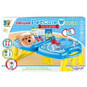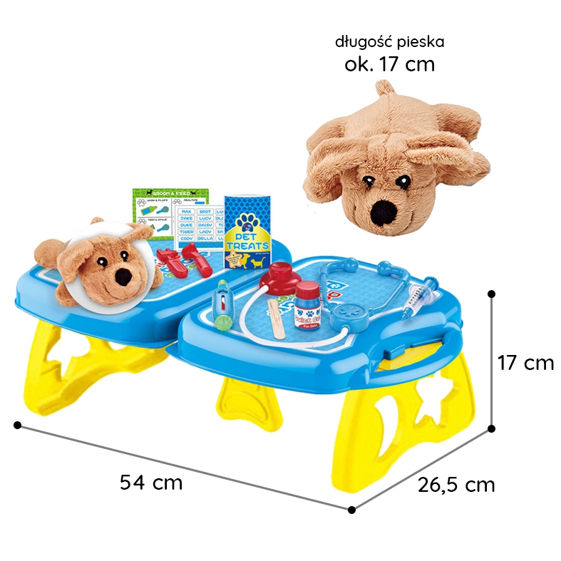 WOOPIE kaubamärgi väike loomaarsti kabinet on ideaalne pakkumine kõigile loomasõpradele ja mängivatele veterinaararstidele. Komplekt sisaldab 18 elementi, sealhulgas: topis/koer, stetoskoop, ravimid, süstal, kaelarihm ja palju muud. Komplekt võimaldab teil ravida oma lemmiklooma ning samal ajal õpib teie laps empaatiat ja omandab sotsiaalseid oskusi. Loomade eest hoolitsemine on ka vastutustunde õppimine. Tänu mugava käepidemega kaasaskantavale kohvrile saab laps oma lemmiklooma kaasa võtta ja mängida kõikjal. Loomaarsti mänguasi – rollimäng – mõjutab positiivselt lapse arengut, ergutab kujutlusvõimet ja loovust. Omadused: – mänguasi vanuses 3 eluaastat, – komplekti saab kokku voltida kohvrisse – kaasa võtta ükskõik kuhu, – rollimäng – väike loomaarst, – õpetab vastutust, – ergutab empaatiat, kujutlusvõimet ja loovust, – värviline pakend, sobib suurepäraselt kingituseks, – lahtivolditud kontori mõõdud: 55 x 17 cm. Komplekti kuulub: – topis/koer, – stetoskoop, – ravimid, – süstal, – kaelarihm ja palju muud. Woopie on üks juhtivaid plastist mänguasjade tootjaid Euroopas. Woopie tooteid müüakse edukalt koduturul ja kogu Euroopas. Woopie kaubamärgi mänguasjadel on üks eesmärk – teha lastele rõõmu! Rikkalikust sortimendist leiab Woopie muuhulgas karnevalikostüüme ja kostüüme lastele, aga ka rippkiikesid, vahtplastist mänguasju, erinevat tüüpi aiamänguasju ja palju muud! Laske end lõbusalt kaasa haarata – laske end Woopil kaasa haarata!