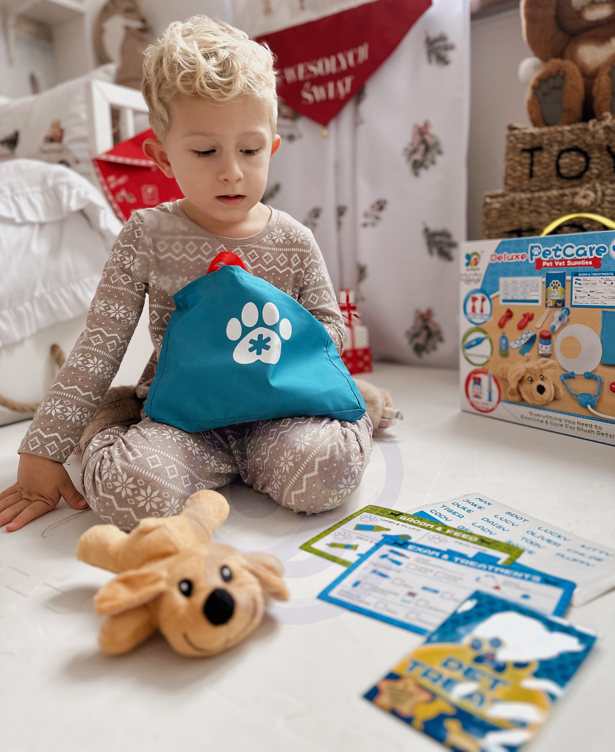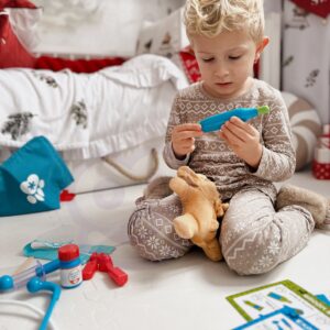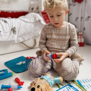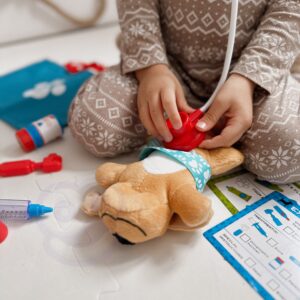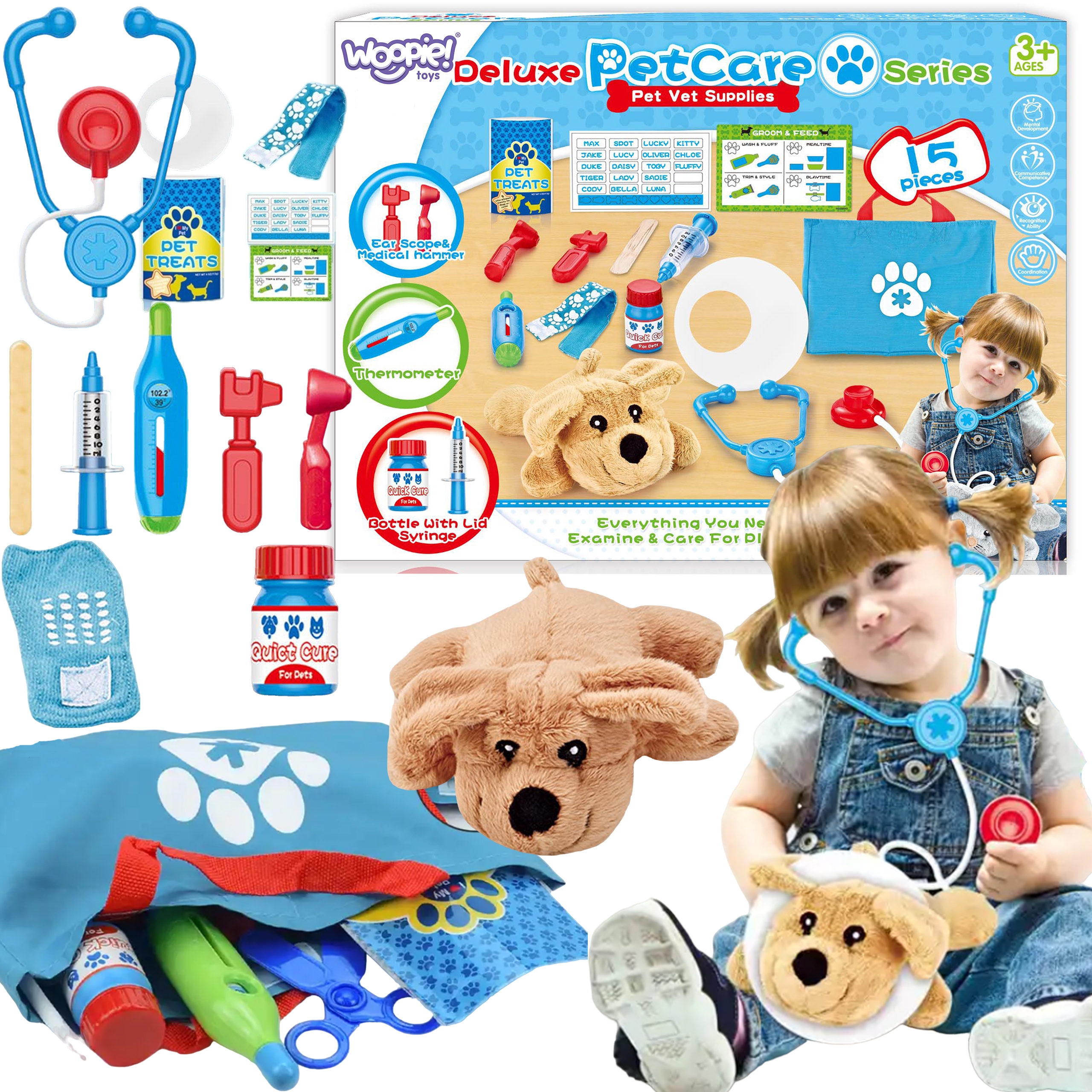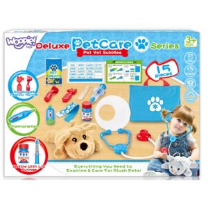 WOOPIE kaubamärgi väike veterinaarkomplekt on ideaalne pakkumine kõigile loomasõpradele ja mängivale loomaarstile. Komplektis on 15 eset, sealhulgas: topis/koer, stetoskoop, ravimid, süstal, kaelarihm ja palju muud. Komplekt võimaldab teil ravida oma lemmiklooma ning samal ajal õpib teie laps empaatiat ja omandab sotsiaalseid oskusi. Loomade eest hoolitsemine on ka vastutustunde õppimine. Tänu mugava käepidemega kaasaskantavale kotile saab laps oma lemmiklooma kõikjal kaasa võtta ja temaga mängida. Loomaarsti mänguasi – rollimäng – avaldab positiivset mõju lapse arengule, ergutab kujutlusvõimet ja loovust. Omadused: – mänguasi vanuses 3 ja vanematele – komplekti saab voldida kotti – kaasa võtta igale poole – rollimäng – väike loomaarst – õpetab vastutustunnet – ergutab empaatiat, kujutlusvõimet ja loovust – värviline pakend, sobib ideaalselt kingituseks Komplekti kuulub: – topis/koer – sinine kott – stetoskoop ja palju muud