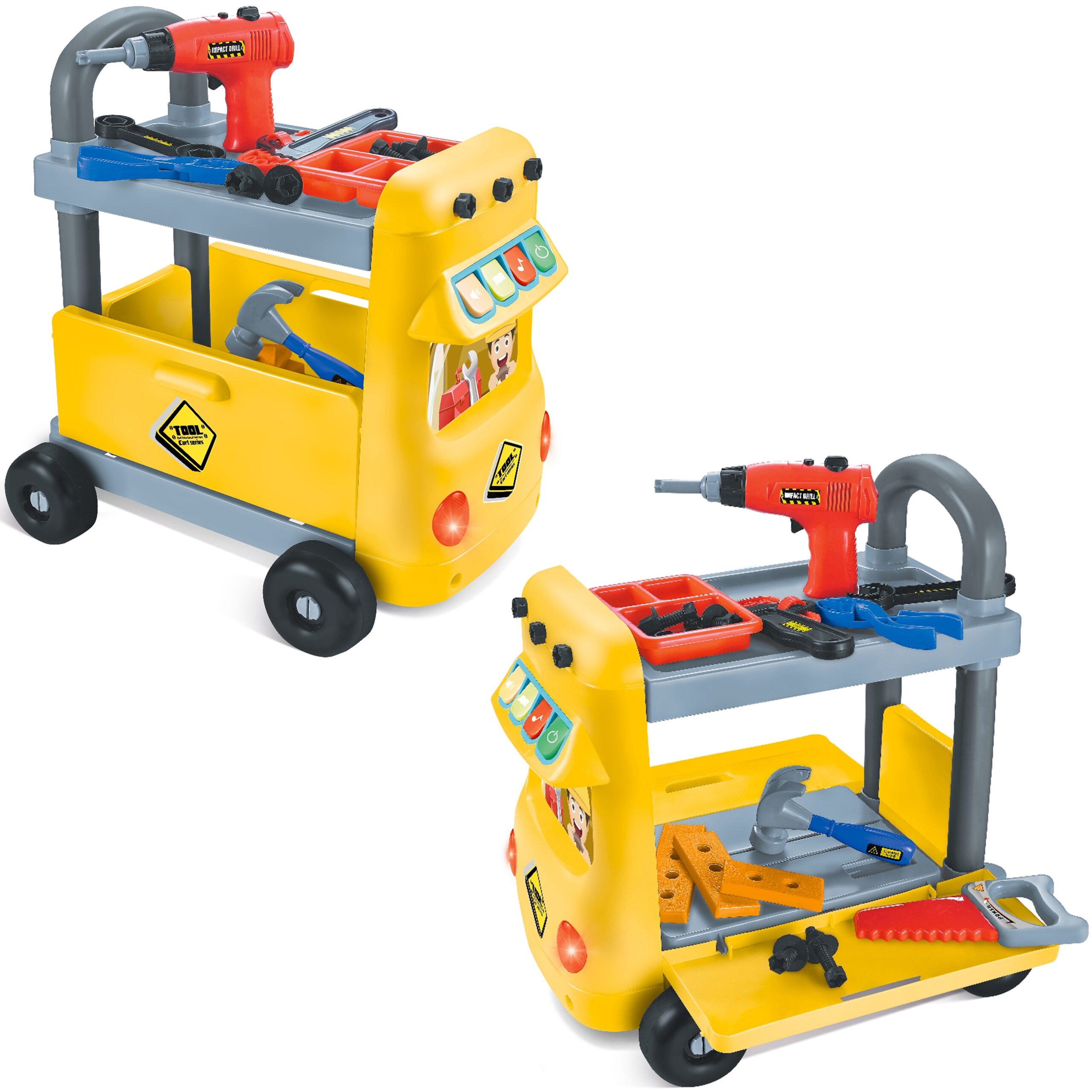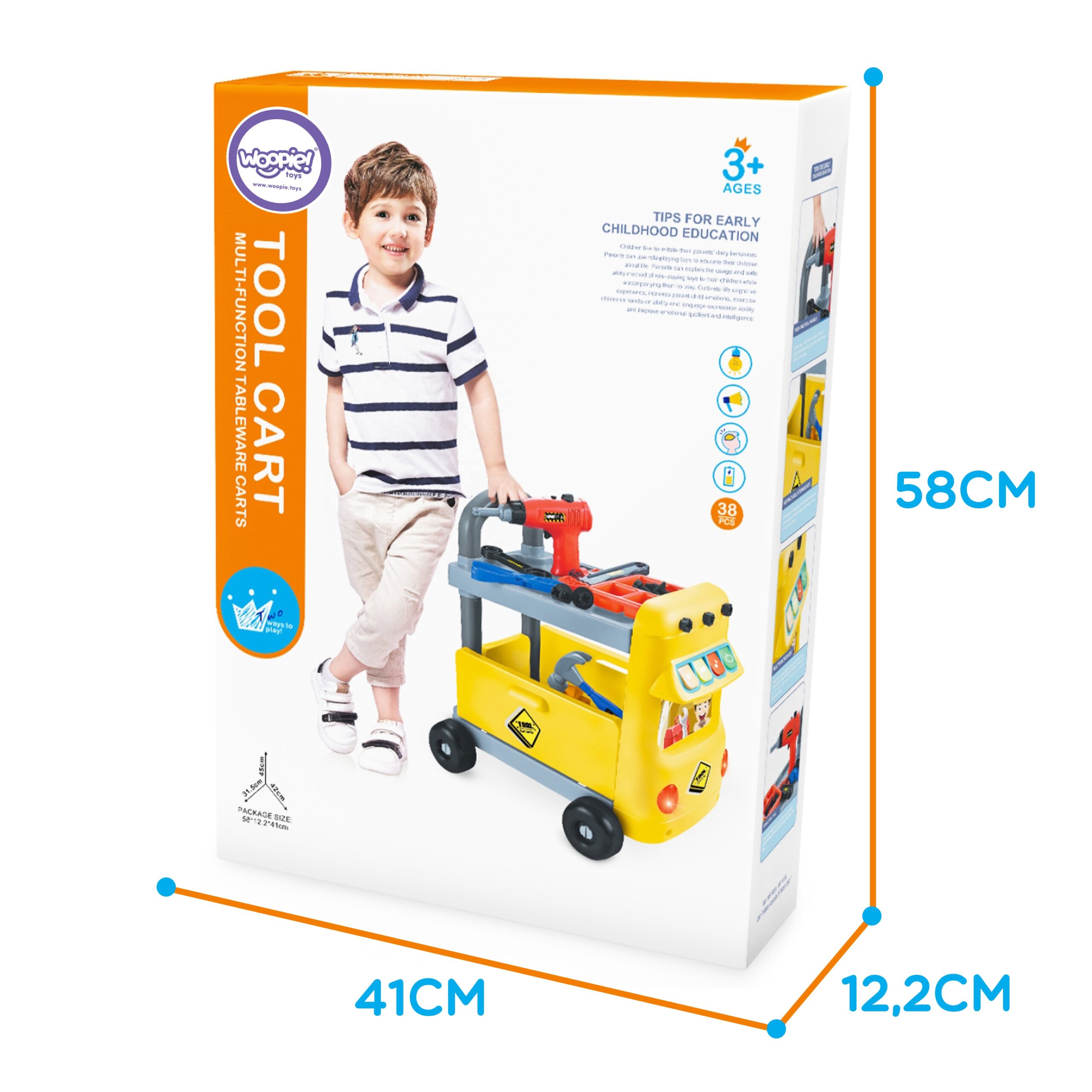Lastele mõeldud mänguasjade töötuba WOOPIE 2-in-1 on võimalus lastele huvitavalt aega veeta ja käelisi oskusi arendada, aga ka kujutlusvõimet treenida, mis võimaldab paremini toime tulla väljakutsetega, mida igapäevased kohustused neile ette valmistavad. Tänu töötoale saab laps tuttavaks töövahendite ja tööpõhimõtetega. See on ideaalne kingiidee mitte ainult noorele isetegemishuvilisele, vaid ka lastele, kellel pole veel olnud võimalust avastada, kui palju rõõmu ja rahulolu võib leida nii kruvidest, mutritest kui ka mutrivõtmetest ja muudest remondi- ja renoveerimistöödel kasutatavatest seadmetest. Töötoaga on kaasas palju tööriistu ja tarvikuid. Väike mehaanik saab kruvida, kokku panna, saagida ja puurida. Nad õpivad kergesti selgeks erinevat tüüpi materjalide ja elementide töötlemise põhimõtted ning teadvustavad ka vajadust olla ettevaatlik mehaaniliste tööriistade kasutamisel. Töötoa komplekti kuuluvad ka liigutatav käsitrell, reguleeritav mutrivõti ja palju muid üllatusi. Lisaks, kuna komplektis on palju kohti tööriistade hoidmiseks, õpetab see mänguasi teie väikelapsele, kuidas pärast mängimist puhastada ja korrastada. Komplekti kuuluvad: – mutrivõtmed, – kruvikeeraja, – haamer, – tangid, – saag, – kruvikeeraja, – kruvid, – lauad, – kruvide organiseerija. Omadused: – mänguasi, mis on mõeldud lastele alates 3. eluaastast, – jalutuskäru toimib: töökojana, jalutuskäruna, – käru on varustatud nelja rattaga, mis hõlbustavad selle tasasel pinnal teisaldamist ja käepidemega, mis hõlbustab lükkamist, – vankri alumisel osal on kokkuklapitavad küljed, nii et väikelaps saab neid kasutada kasti loomiseks. Sellesse saab ta peita tööriistu ja muid mängimiseks vajalikke tarvikuid, – tarvikute hulgast leiab mudilane kruvide jaoks organiseerija, mis teeb töö ja nokitsemise oluliselt lihtsamaks, – käru esiosas on mängupaneel. Sellel on neli värvilist nuppu, tänu millele kuuleb ta erinevaid helisid ja meloodiaid, – komplektis on suurepärane kruvikeeraja imitatsioon, tänu millele tunneb väikelaps end tõelise isetegemise entusiastina, – kruvikeeraja toiteplokk: 2x AA (ei kuulu komplekti), – vankri toide: 3x AA (ei ole komplektis). Woopie kaubamärgi mänguasjadel on üks eesmärk – teha lastele rõõmu! Rikkalikust sortimendist leiab Woopie muuhulgas karnevalikostüüme ja kostüüme lastele, aga ka rippkiikesid, vahtplastist mänguasju, erinevat tüüpi aiamänguasju ja palju muud! Laske end lõbusalt kaasa haarata – laske end Woopil kaasa haarata!
