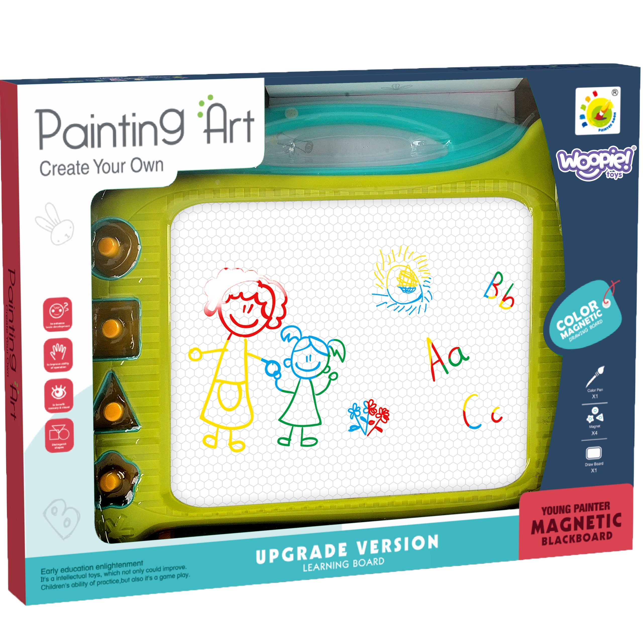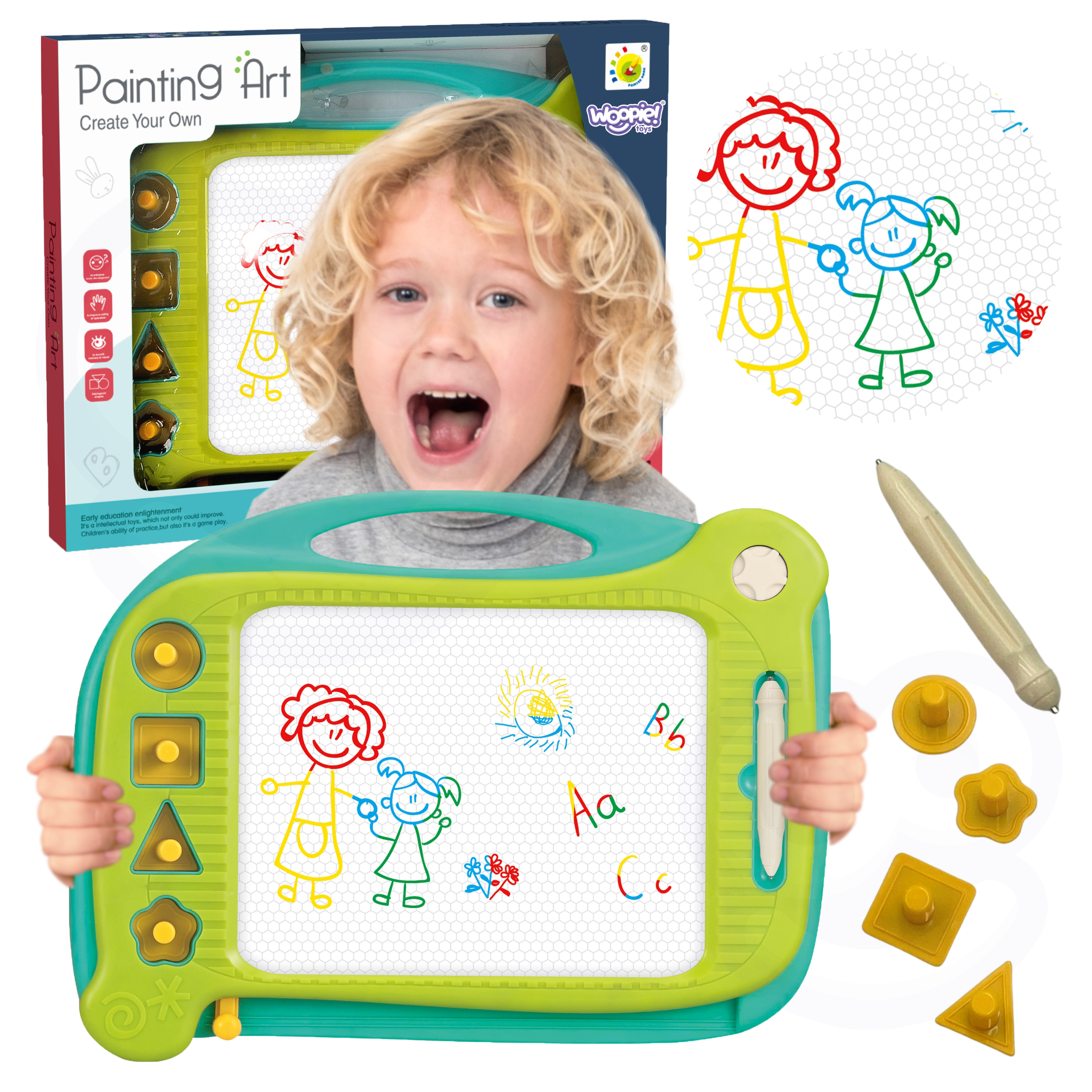 Magnettahvel annab võimaluse loovalt lõbutseda pikka aega! Tahvel julgustab kirjutama ja joonistama. Joonistamine aitab keskenduda, rahustab ja rahustab last. Väljalõigete album võimaldab teil luua lõpmatu arvu pilte – liigutage lihtsalt spetsiaalset liugurit ja joonistus kaob ja saate uuesti joonistada! Komplektis on ka mugav võlupliiats ja 4 templit, mis mitmekesistavad Sinu tööd. Tahvlil on mugav käepide, nii et teie laps saab selle kõikjale kaasa võtta. Kirjeldus arendab teie lapse käelisi oskusi, kujutlusvõimet, loovust ja annab teile võimaluse arendada oma lapse kunstilist poolt! Omadused: – mänguasi vanusele 3 aastat – julgustab kirjutama ja joonistama – võime luua lõpmatu arvu pilte – on mugav käepideme kandmiseks – sobib suurepäraselt kingituseks Komplekti kuulub: – liuguriga tahvel – spetsiaalne võlupliiats – 4 templit Mänguasi arendab: – peenmotoorikat – käelisi oskusi – kujutlusvõimet ja loovust HINNAS HINNAS 8.