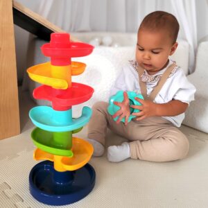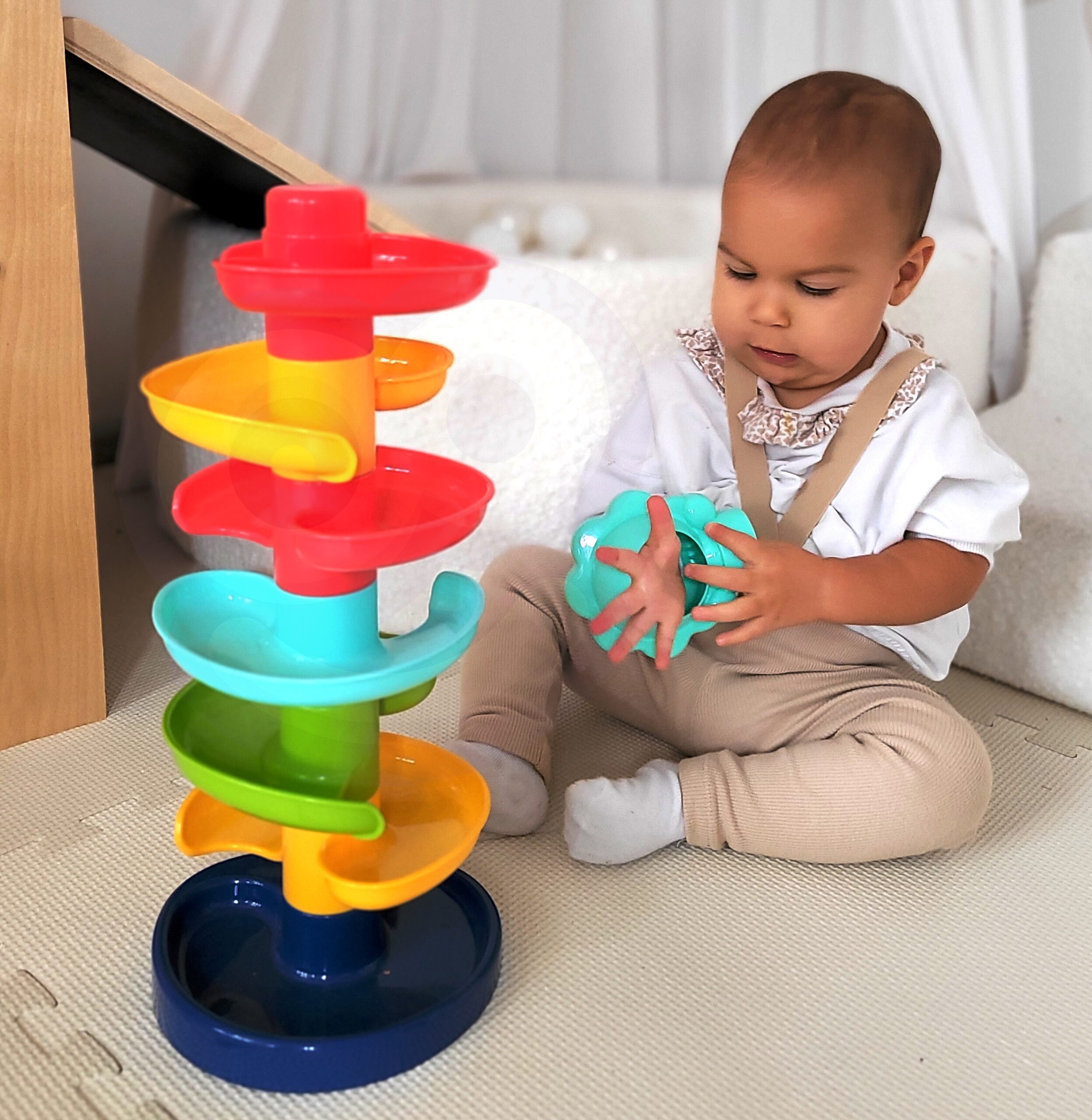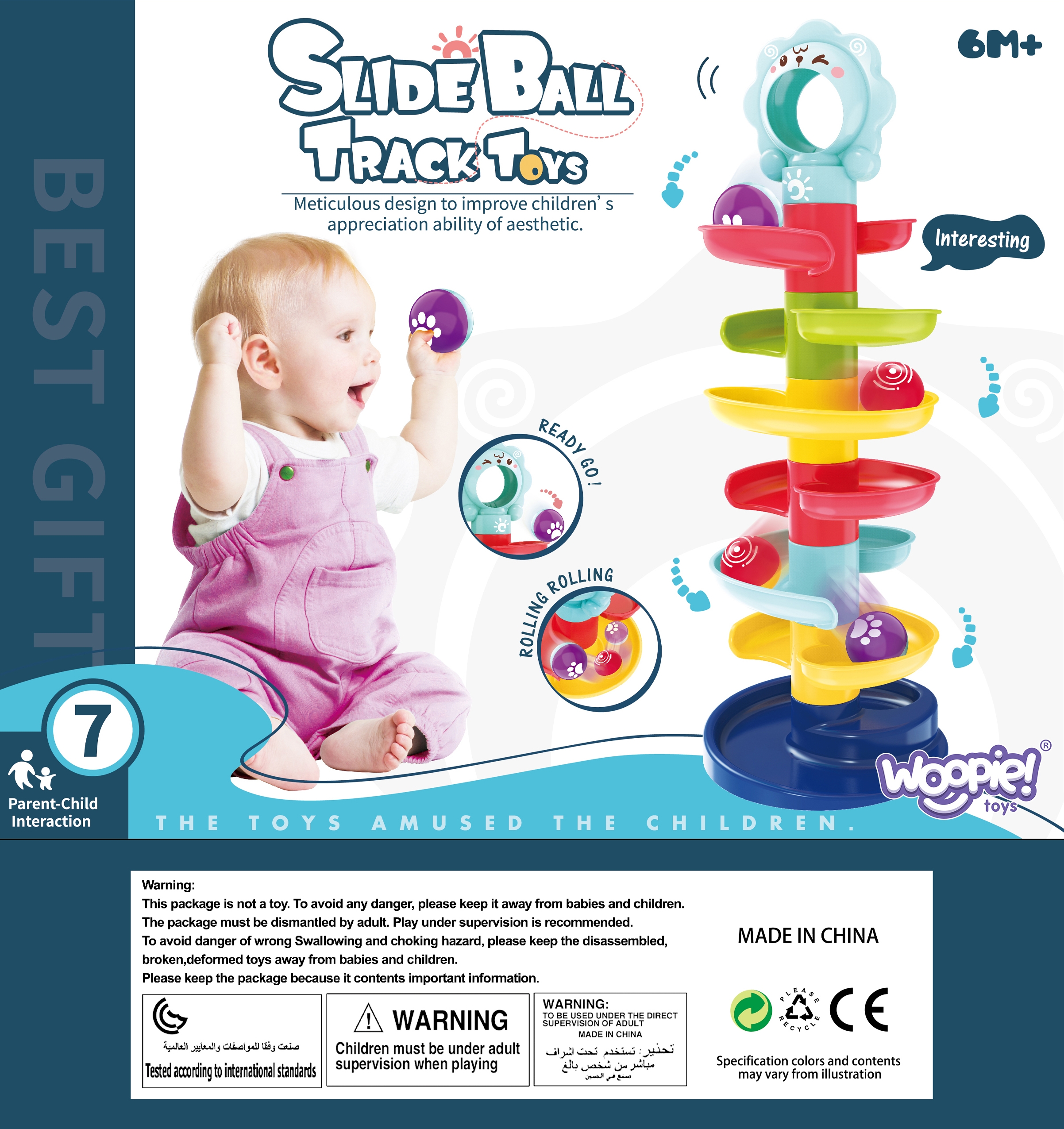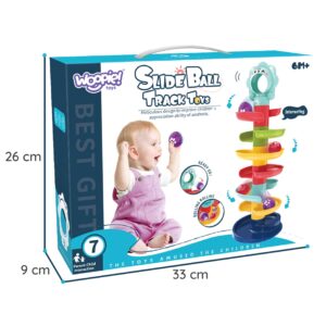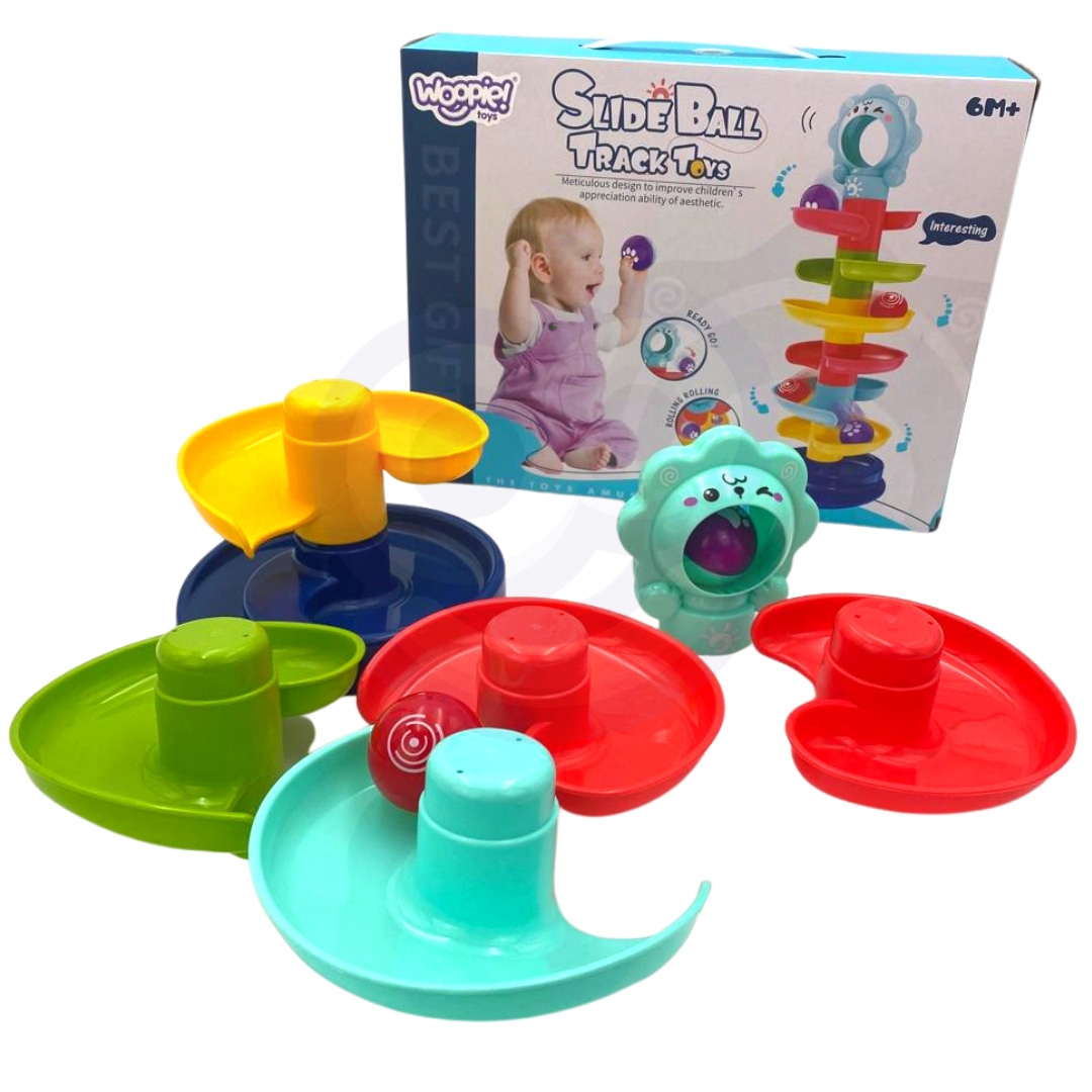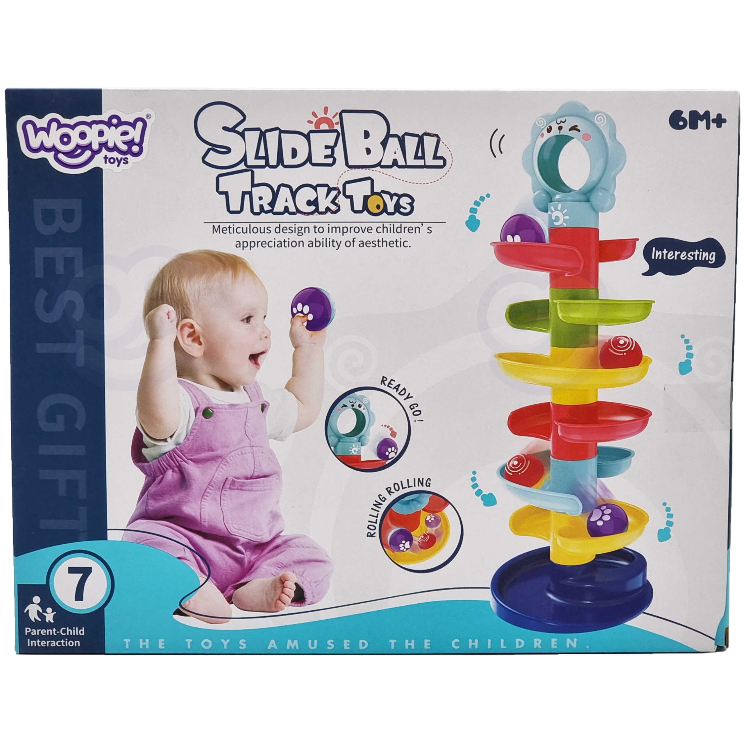 WOOPIE pallitilk on spiraalne torn, mis pakub lõputut lõbu. See komplekt koosneb 8 värvilisest osast, mida teie väikelaps saab hõlpsasti üksteise peale laduda. Vabastage pallid ükshaaval ülemisest tasemest ja vaadake, kuidas need ükshaaval veerevad. Pallirada on varustatud 2 erinevat värvi kerget ja lihtsalt haaratavat palli, mis liigutamisel häält teevad. Suurus sobib väikestele kätele ja aitab arendada käe-silma koordinatsiooni. Omadused: – alates 6. elukuust, – komplekti kuulub: 2 palli, – aitab arendada silma-käe koordinatsiooni, – ohutud elemendid, – osi saab lihtsalt omavahel ühendada.
