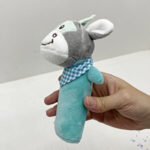 Palus Donkey kaubamärgilt Woopie lõbustab teie last. Mänguasi sobib beebidele, on beebi kätele ideaalse struktuuriga ja on täidetud pehme vatiga. Lisaks saab vanem käepidemest kinni hoida ja lapsega mängida. Peale varre pigistamist teeb plüüs iseloomulikku piiksuvat häält – see hoiab lapsel meelelahutust ja keskendumist ning sellel on kahisev element, mis ergutab lapse sensoorseid ja meeli. Pehme puudutusega topis saab teie lapse sõbraks juba varakult ja on temaga kaasas ka uneajal. Lisaks saab mänguasja ohutult ja lihtsalt puhastada. Juba väikesest peale arendab eesel käeoskusi (peenmotoorikat) ja lapse meeli – kompimis-, kuulmis- ja nägemisvõimet! Omadused: – sünnist saati beebile mõeldud mänguasi – õrnast materjalist ja vatiga täidetud – helifunktsioonid – varre pigistamisel piiksub – kahisev element – lihtne pesta Mänguasi arendab: – kompimismeelt, kuulmist ja nägemist – peenmotoorikat – käte liikumist – keskendumist