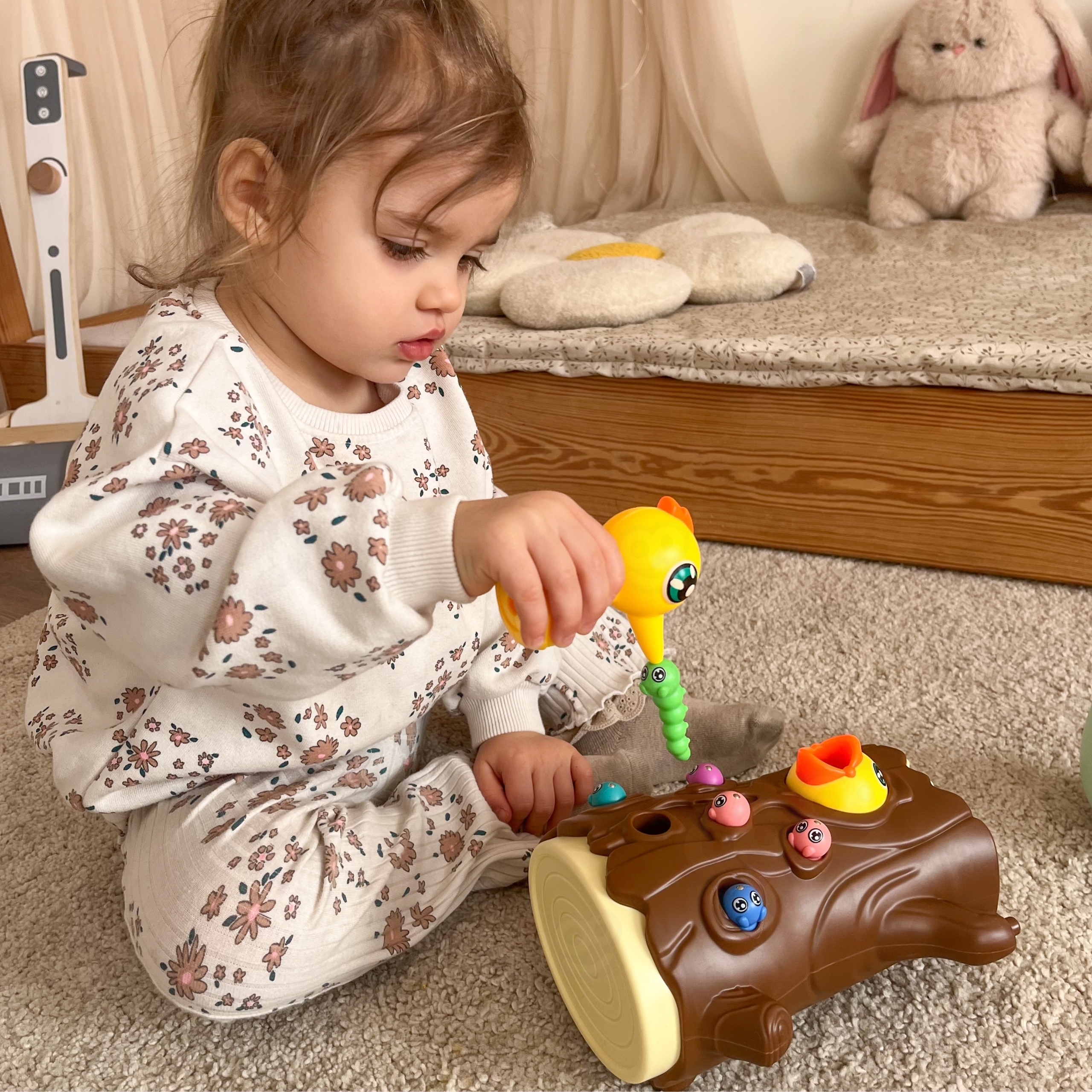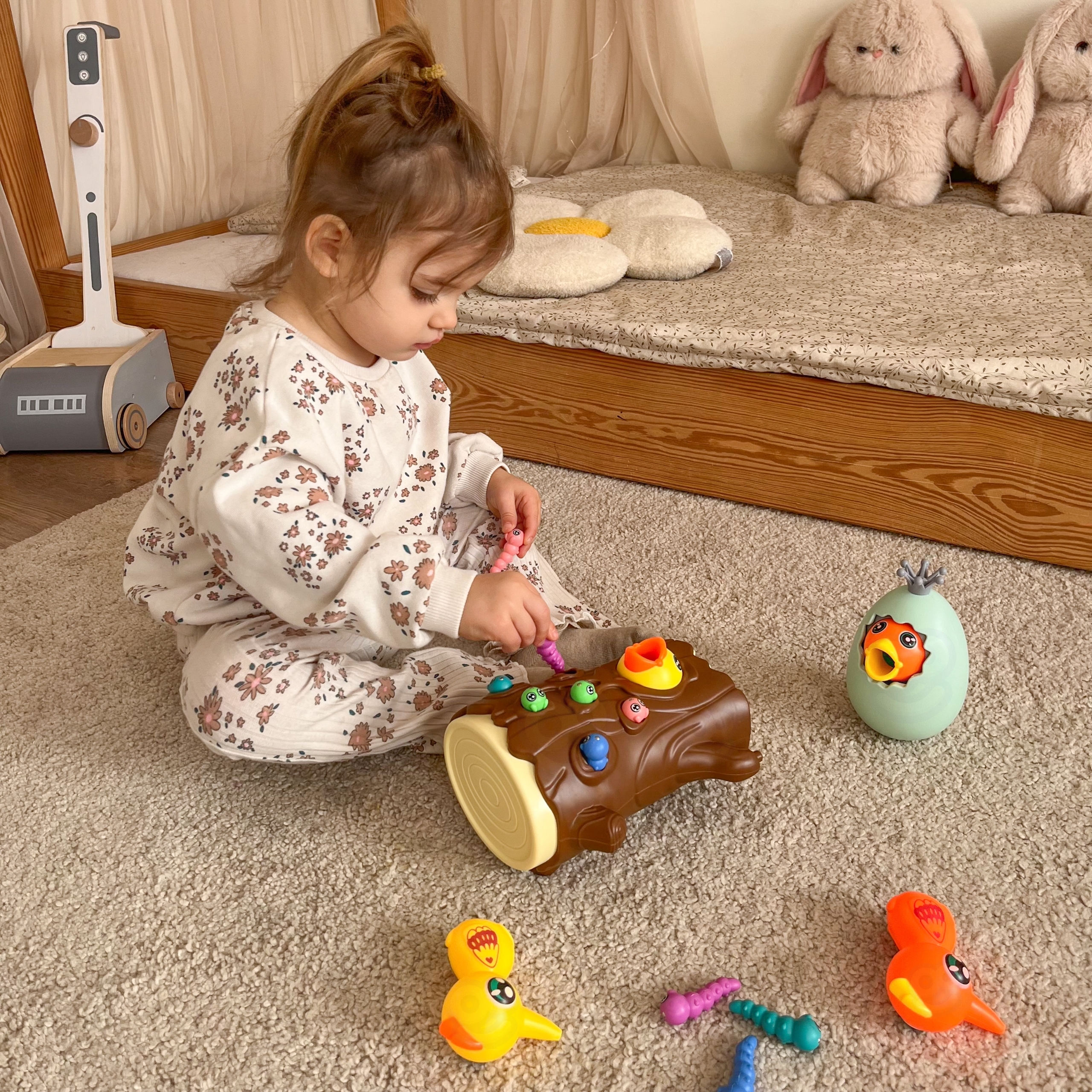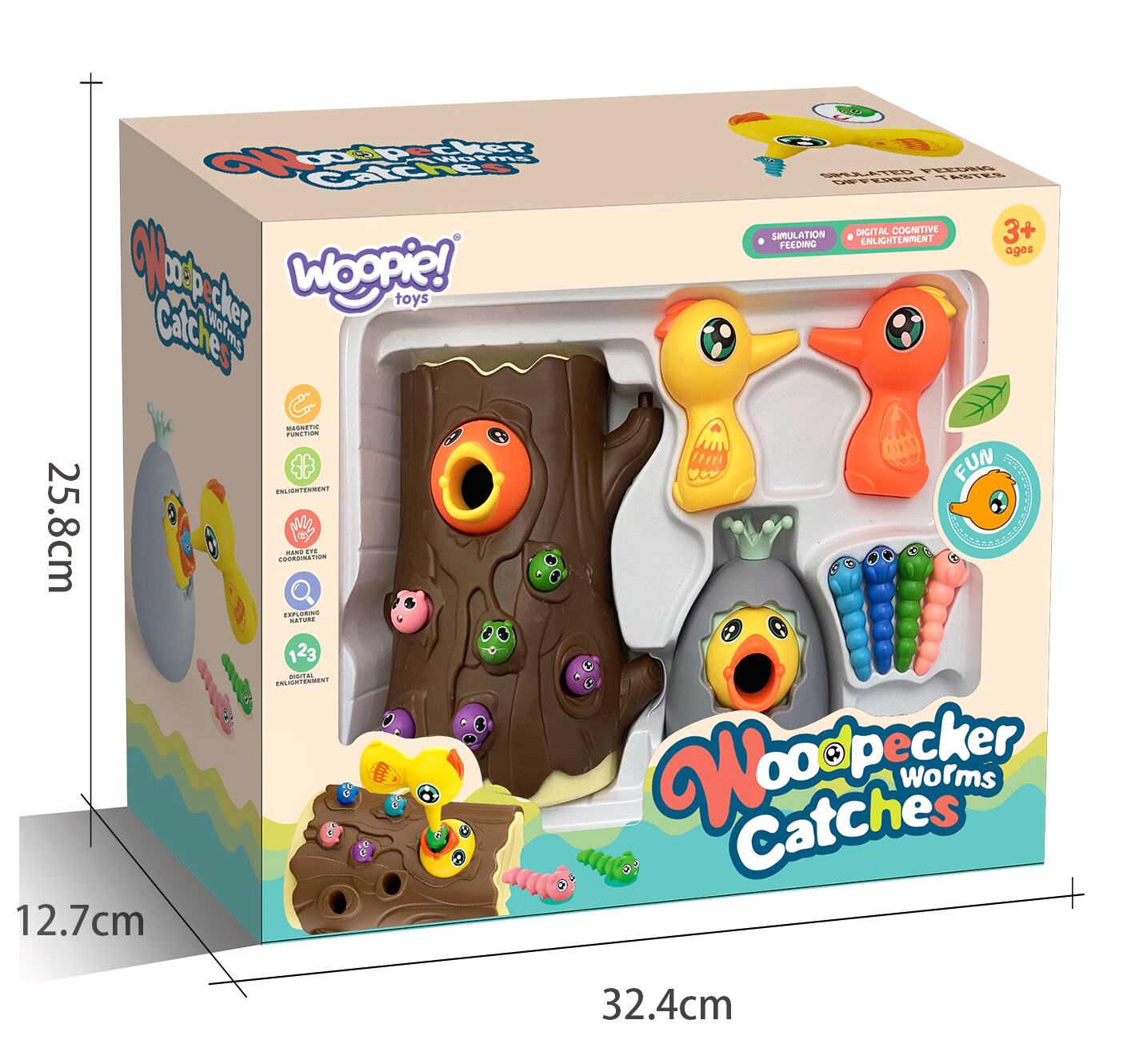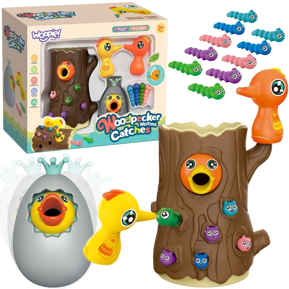 WOOPIE kaubamärgi arkaadmäng “Catch the Worm” on täis emotsionaalset lõbu, mis lähendab lapsi ja vanemaid koos aega veetes. Lihtsad reeglid ja intuitiivne juhtimine muudavad mängus osalemise lihtsaks iga pereliikme jaoks. See ainulaadne mänguasi ühendab õppimise meelelahutusega, motoorsete oskuste arendamise, käe-silma koordinatsiooni ja keskendumisvõime kõige väiksematel. Ainulaadne disain ja multifunktsionaalsus muudavad “Catch the Worm” mängu mitte ainult lõbusaks, vaid ka viisiks kannatlikkuse ja täpsuse harjutamiseks. Omadused: – mänguasi vanuses 3 ja vanemad – 3 ühes – magnetiline arkaadmäng, hoiupõrsas, vank – komplektiga saavad korraga mängida kaks last – õpetab läbi mängu – aitab muu hulgas arendada motoorseid oskusi ja visuaalseid oskusi Mängureeglid: Mäng hõlmab näljase tibu toitmist puutüvesse peidetud ussidega. Beebi kasutab rähni magnetnokkade abil usse “püüda” ja kanda need tibuni. Mäng nõuab täpsust ja keskendumist, tänu millele saavad lapsed harjutada käelisi oskusi ja samal ajal väga lõbusalt aega veeta. Pärast mängu lõppu saab ussid pagasiruumist välja valada ja kõik järgmiseks ringiks valmis. Komplekti kuulub: – 2 magneträhni – Tibu muna, mida saab kasutada ka hoiupõrsas või wangina – Tibu puutüves – 10 värvilist ussikest