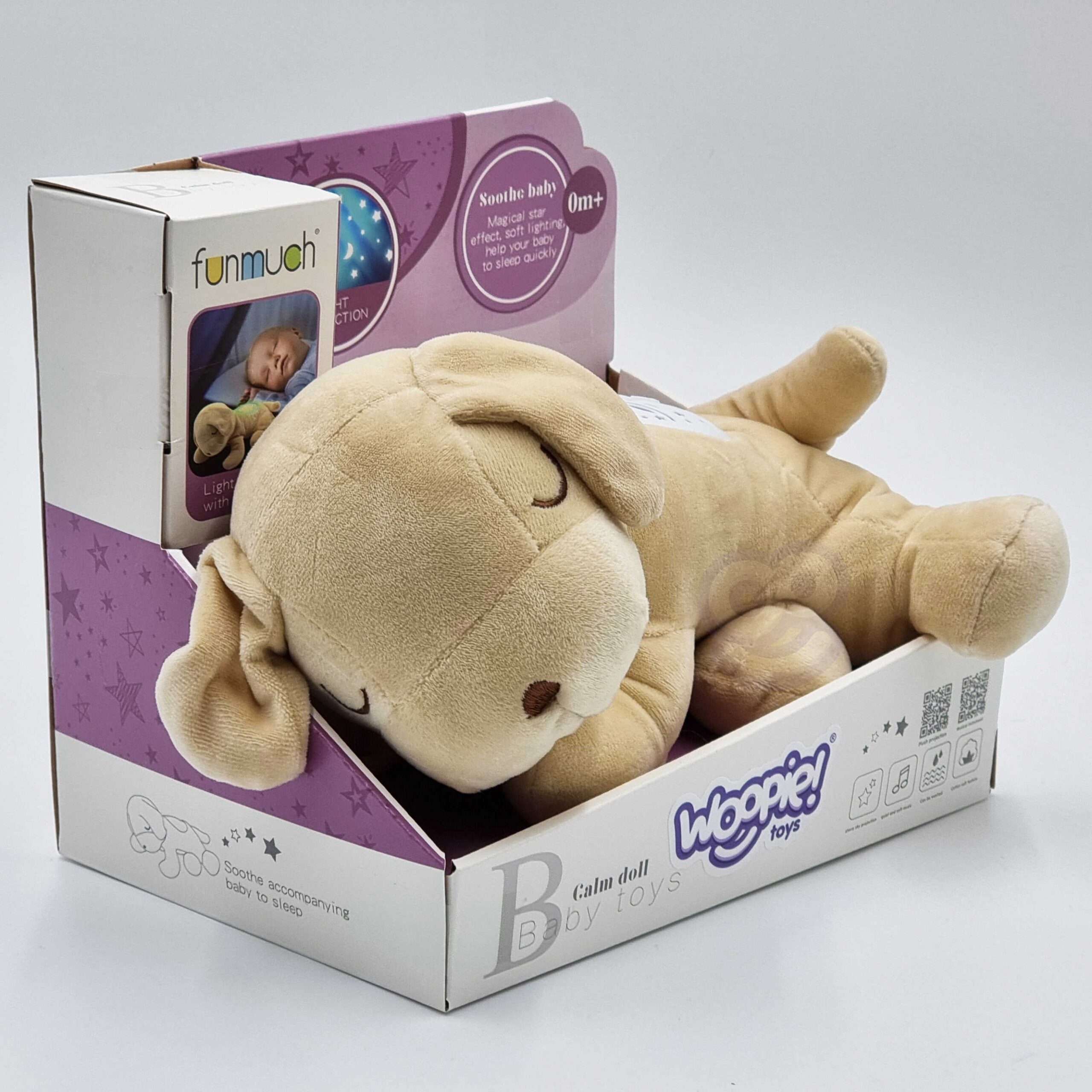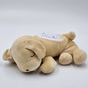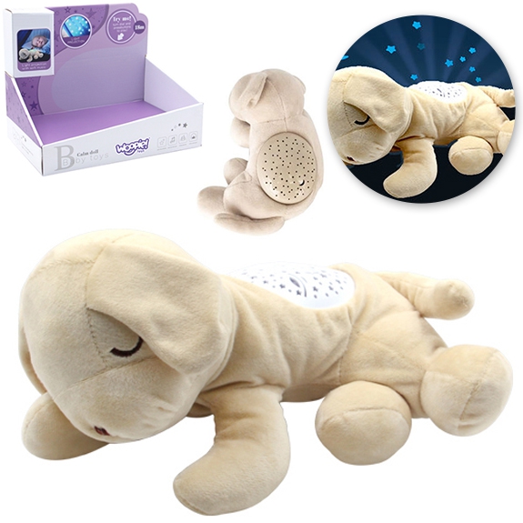 Brändi Woopie Plush Dog Sleeper on teie beebile maagiline unekaaslane. Maskott sobib suurepäraselt beebidele ja suurematele lastele, kellele ei meeldi ise uinuda. Koerast saab heade unenägude valvur ja koletiste tapja kapis. Kaisulisel on projektori funktsioonid, mis loovad une ajal rahuliku aura. Tuled muudavad värvi ja näitavad tähti, kuud ja planeete. Kogu asja saadab lõõgastav muusika, taustaks kostavad loodushääled. Mänguasjal on mitu erinevat hällilaulu. Muusikakast mängib hällilaule pidevalt ligi 20 minutit, nii et beebil on aega magama jääda, ilma et peaks hällilaule uuesti sisse lülitama ja lapse äratamisega riskimata. Kui beebi magama jääb, saab hällilaulud kõhul olevale nupule vajutades välja lülitada. Koeral on kaks helitugevuse taset, seega saab seda ideaalselt lapse vajadustele vastavaks kohandada. Mänguasi sobib beebidele, seega on täidetud pehme vatiga. Lisaks saab plüüsist mänguasja ohutult ja lihtsalt puhastada, eemaldades mehhanismi ja lihtsalt uuesti kokku pannes. Tänu sellele saab vanem laps mänguasja maskotina kasutada ka ilma mehhanismita. Kõik lapsed armastavad koeri! Omadused: – beebidele mõeldud mänguasi, – sobib suurepäraselt magama jäämiseks vajalikuks topis, – on valmistatud õrnast materjalist ja täidetud vatiga, – valgus- ja heliefektid – meloodiad/hällilaulud, mis aitavad uinuda + värvimuutev projektor, – hällilaulude mänguaeg on kuni 20 minutit! – sees olev mehhanism on lahti võetav plüüsi pesemiseks, – vajalikud patareid: 3 x AAA (ei kuulu komplekti). Mänguasi arendab: – meeli, – uudishimu ja avastamist, – keskendumist.