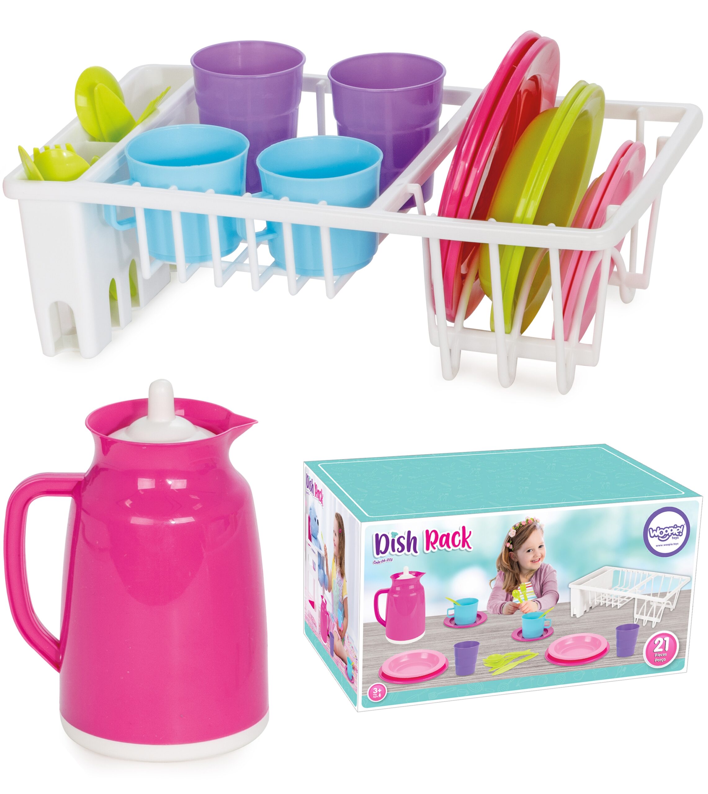 Woopie laste köögitarvikute komplekt on ideaalne täiendus teie beebikööki. Komplektis on 21 elementi: lauanõud 2-le inimesele (taldrikud, söögiriistad, 2 tüüpi tassid), teekann ja nõrutusnõu nõude jaoks pärast imelist pidusööki, et nõud saaksid pärast pesu kuivada. Ideaalsed aksessuaarid sõbraga einestamiseks! Omadused: – valmistatud värvilisest ja lapsesõbralikust materjalist – täiuslikult reprodutseeritud tarvikud – ideaalne komplekt sõpradele – ideaalne komplekt lastele Komplekti kuulub: – nõudekuivati - veekeetja – nõud: 2 sügavat taldrikut, 2 suurt taldrikut, 2 väikest taldrikut, söögiriistad (sh: nuga, kahvel, lusikad), 2 kruusi, 2 tassi Euroopa juhtiva pirukatootja firma Wooo. Woopie tooteid müüakse edukalt koduturul ja kogu Euroopas. Woopie kaubamärgi mänguasjadel on üks eesmärk – teha lastele rõõmu! Rikkalikust sortimendist leiab Woopie muuhulgas karnevalikostüüme ja kostüüme lastele, aga ka rippkiikesid, vahtplastist mänguasju, erinevat tüüpi aiamänguasju ja palju muud! Laske end lõbusalt kaasa haarata – laske end Woopil kaasa haarata!