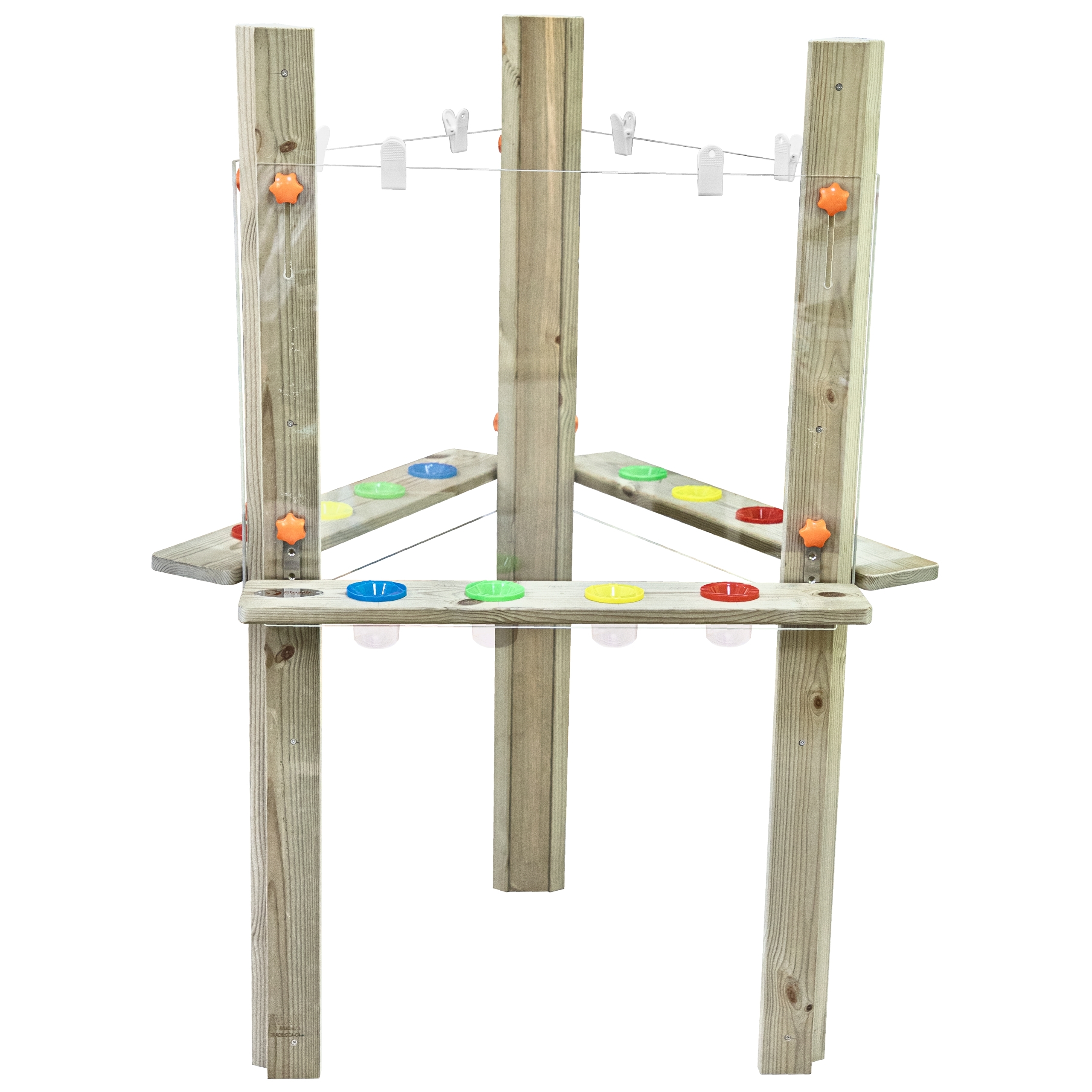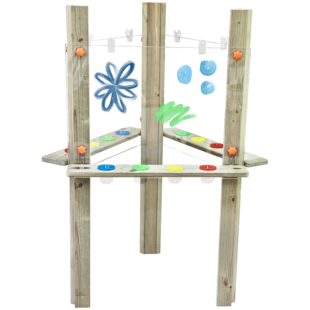 Kolmepoolne Molbert Classic World Edu Kunstikeskus Klassikamaailma Edu kaubamärgi molbert on mõeldud laste ühiseks loominguliseks lõbutsemiseks. See võimaldab korraga töötada kolmel noorel kunstnikul. Varustatud suurte läbipaistvate tööpindade, praktiliste klambritega kaartide riputamiseks ja riiulitega värvide jaoks koos topsidega – ühendab endas funktsionaalsuse, vastupidavuse ja ohutuse Omadused: – Kolmnurkne struktuur tagab ohutuse ja kasutusmugavuse 3 kunstnikule – Tahvlitel on tugevad klambrid paberi kinnitamiseks, mis võimaldab kunstiteoseid lihtsalt ja kiiresti vahetada – Iga värvitahvli alla on paigaldatud praktiline riiul, kus on ruumi neljale topsile. Tassid on kergesti korrastatavad värvide järgi, mis hoiab korda ja arendab meeskonnatöö harjumusi MÕÕTMED: 98 x 85 x 130 cm ❗ Toode on valmistatud immutatud Soome männipuidust, mis sobib suurepäraselt välitingimustesse. Peamine tegur, mis eristab toodet konkurentidest. ❗