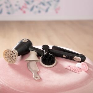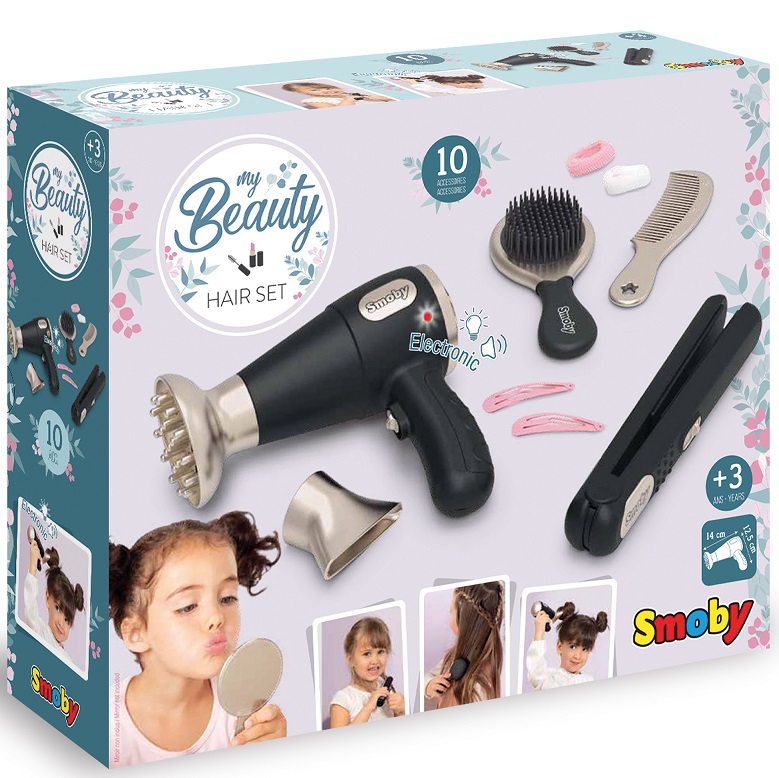 Lastele meeldib täiskasvanuid jälgida ja jäljendada. My Beauty sari ühendab endas kolm maailma – juuksuritöö, maniküür ja meik. Sellest komplektist leiate kõik, mida noor juuksur või juuksur vajab. Tunnused: – noore juuksuri komplekt 10 tarvikuga, – komplektis on föön, fööni otsad, juuksesirgendaja, hari, kamm, klambrid, juuksepaelad, – föönil on valgus- ja helifunktsioonid, – föön ja sirgendaja ei ole päris tooted.