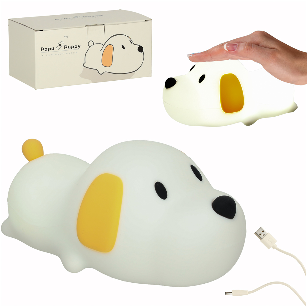 Armas koerakujuline silikoonist öölamp, mis loob lapse tuppa sooja ja hubase valguse.