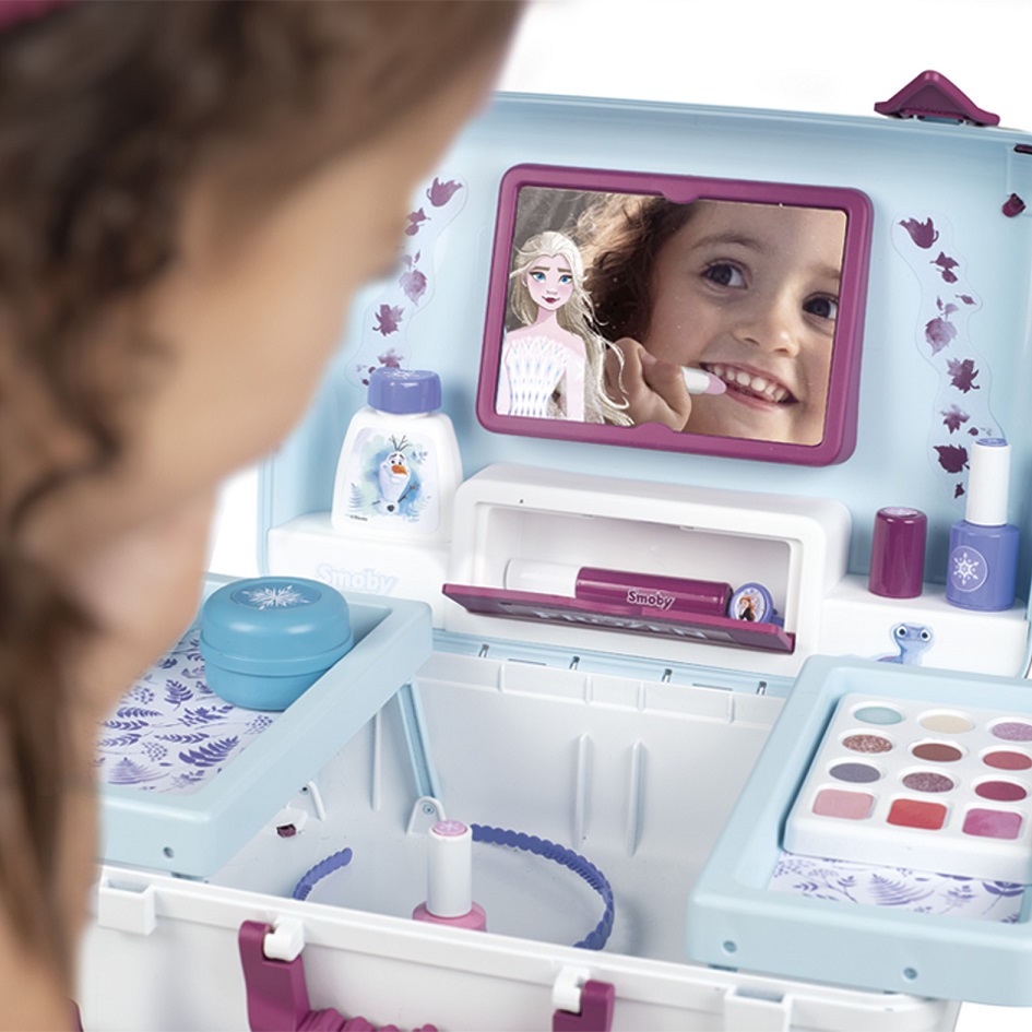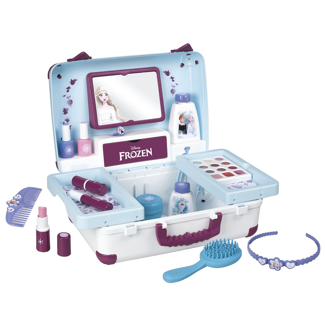 Lastele meeldib täiskasvanuid jälgida ja jäljendada. Kohvrikomplektis Ilusalong ühendab endas 3 maailma – juuksuritöö, maniküür ja meik. Komplektis on 13 ehtsat kosmeetikat imiteerivat tarvikut. Tänu selle kompaktsetele mõõtmetele ja käepidemele saab selle kohvristuudio kaasa võtta peaaegu kõikjale. Omadused: – kohver ühendab endas 3 maailma – juuksur, maniküür ja meik, – Frozeni poolt litsentseeritud kohver, – komplektis on 13 lisatarvikut: lauvärvipalett, 2 küünelakki, 2 huulepulka, ripsmetušš, kamm, juuksehari, peapael, sõrmus, parfüümipudel, – kõik tooted ei sisalda juukseid, kreem, aksessuaarid mis võimaldab hoiustada kõiki tarvikuid, – kohvristuudio saab tänu oma kompaktsetele mõõtmetele ja käepidemele praktiliselt kõikjale kaasa võtta.