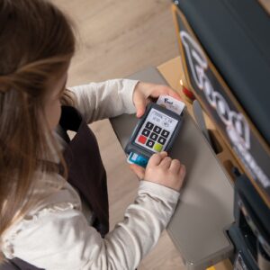Chef’s Bar on ideaalne komplekt lastele mängimiseks ja rollimänguks. See arendab laste kujutlusvõimet ja õpetab töötama rühmas. Sellel on kaks mänguala – toiduvalmistamisala ja klienditeenindusala, kus on kassa ja makseterminal. Omadused: – on pliidi imitatsiooniga (1 põleti), fritüür, kraaniga kraanikauss, ahi ja avatava uksega külmkapp, – on ka vee- ja mahlaautomaat, kohvimasin, – on spetsiaalne lett einete serveerimiseks, – kliendil on võimalik valida toite trükitud menüüst, – kööginõud saab riputada spetsiaalselt ettevalmistatud riidepuudele, – visata komplekti, pärast toiduvalmistamist või klienditeenindust saab ära visata prügikasti. 29 tarvikut – praepann, lõikelaud, taldrik, söögiriistad, klaas, kruus, korv, kööginõud, hamburger, friikartulid, pannkook (pannil ümberpööramisel muudab värvi), kastmed, kviitungid, krediitkaart.