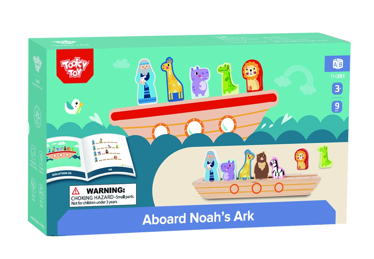 Siin on suurepärane komplekt kuulsalt Tooky Toy firmalt! Mängu eesmärk on vastavalt valitud ülesandes sisalduvatele juhistele paigutada alusele puidust figuure. Iga figuur on kahepoolne – üks pool paremale ja teine ​​vasakule. Olenevalt raskusastmest peab mängija asetama kõik figuurid laevale nii, et need ühtiksid joonisel oleva mustriga. Enamasti on aga vaja iga looma jaoks loogiliselt määrata õige koht, määrata, kelle kõrval ta peaks olema ja millises suunas ta peaks olema. Ülesanded on jagatud nelja raskusastmesse ning nende keerukus suureneb kõrgema tasemega. Omadused: – Alates 3. eluaastast, – komplektis on 9 elementi, – raamat koos lahendatavate mõistatustega, – võimalus mängida ainult klotsidega, – puidust elemendid, – värvitud mittetoksiliste värvidega, – toode on lastele ohutu. Mänguasi arendab: – loogilist mõtlemist, – tajuvõimet, – visuaalset analüüsi ja sünteesi, – õpetab järeldusi tegema, – arendab ruumilist intelligentsust.