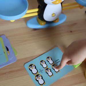 WOOPIE kaubamärgi Penguin Balance Scale arendab teie lapse kognitiivseid oskusi. Asetage skaala ühele küljele number ja teisele küljele vastav arv pingviine. Kui tulemus on õige, on kausid loodis. Komplekti kuuluvad ka kaardid erinevate matemaatiliste näidetega. Saate ise oma lapsele matemaatilisi tegevusi välja mõelda ja tema lõbusust mitmekesistada. Kaal on suurepärane ettekääne lapsega koos mängimiseks, mille käigus laps õpib koostööd ja tõhusat suhtlemist. Mänguasi muudab matemaatika õppimise tõeliseks naudinguks ja julgustab teie last edasi õppima. Mänguasi arendab kognitiivseid oskusi, sealhulgas suurust, käelisi oskusi ja ergutab kujutlusvõimet, julgustades loovat ja ebatavalist mõtlemist. Tunnused: – mänguasi vanuses 5 ja vanemad, – kaardid erinevate matemaatiliste näidetega, – interaktiivne lõbu, – nt. arv ”5” kaalub sama palju kui 5 pingviini, – õppimine läbi mängu, – julgustab õppima matemaatikat, – laps seostab numbri suurust ja järjestust suurema kaaluga. Mänguasi arendab: – kognitiivseid oskusi, – käelisi oskusi, – loovust ja kujutlusvõimet. Komplekti kuulub: – 19x pingviine, – 10x numbreid, – 30x kaarte matemaatiliste tehtega.