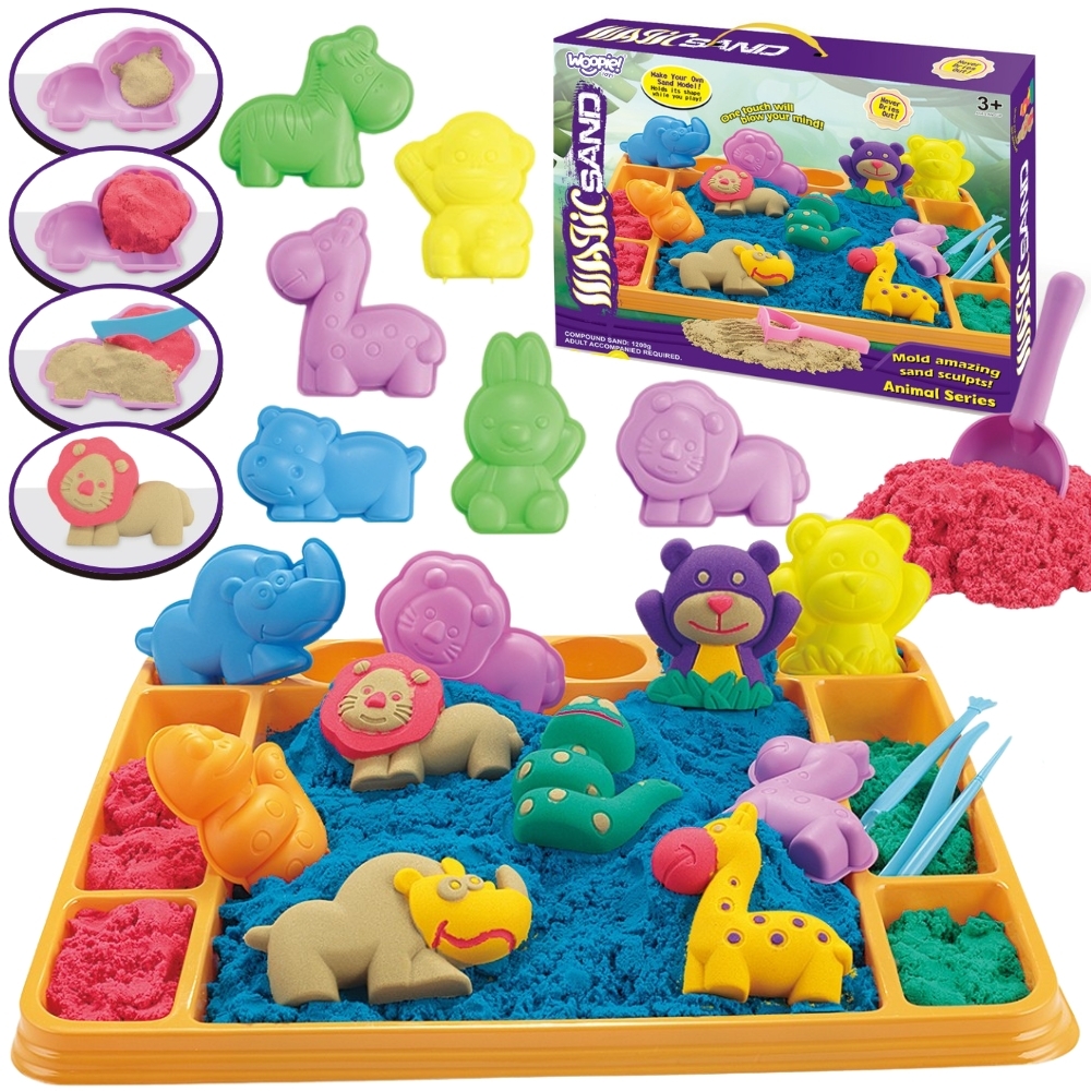 WOOPIE kineetiline liiv 1,2 kg Komplekt XL ZOO Vormidega laud