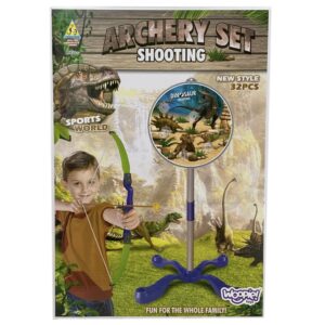 WOOPIE dinosaurusteemaline vibulaskmise komplekt on suurepärane valik teie väikesele. Komplekti kuuluv mänguasi sisaldab kilbiga vibu ja 3 noolt, mille otstes on iminapaga, mis annavad tõelise noole tunde. Kilbil on dinosauruse motiiv erinevate sihtmärkidega ja see on asetatud stabiilsele alusele. Mänguasi võimaldab harjutada silma-käe koordinatsiooni sihtmärgi tabamisel. Kõik mõnusates vaoshoitud värvides, mis tõmbavad tähelepanu ja julgustavad lõbutsema. Omadused: – mänguasi vanuses 6 ja vanemad, – vibulaskja komplekt, – stabiilne kilp, – dinosauruse motiiv, – teravate servadeta – ohutu lastele. Komplekti kuulub: – vibu, – 3 noolt, – statiiviga märklaud. Mänguasi arendab: – kujutlusvõimet, – käelisi oskusi, – kognitiivseid oskusi, – loogilist mõtlemist, – silma-käe koordinatsiooni.