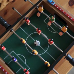 Jalgpallilaud Woopie hoiab teie pisikest tundideks hõivatud. Mäng kahele inimesele. Meil on igal juhendil 3 mängijat, kes mängivad väljakul vapralt. Kõik on pakitud väga ilusasse ja korralikku pakendisse. Mugav käepide võimaldab kasti koos sisuga mugavalt kaasas kanda. Tervik on mõeldud lastele alates 6. eluaastast. Omadused: – Lastele alates 6. eluaastast – Kvaliteetsetest materjalidest – 12 jalgpallurit on paigutatud neljale mugavate käepidemetega juhikule – 6 igast võistkonnast – Punktiloendurid mõlemale mängijale – Kompaktne suurus – Mängus saab osaleda korraga 2 Mängijat Komplekti kuulub: – Mängulaud – 2 palli Mänguasi arendab: – Osavust – Loogilisi oskusi – Multitasku