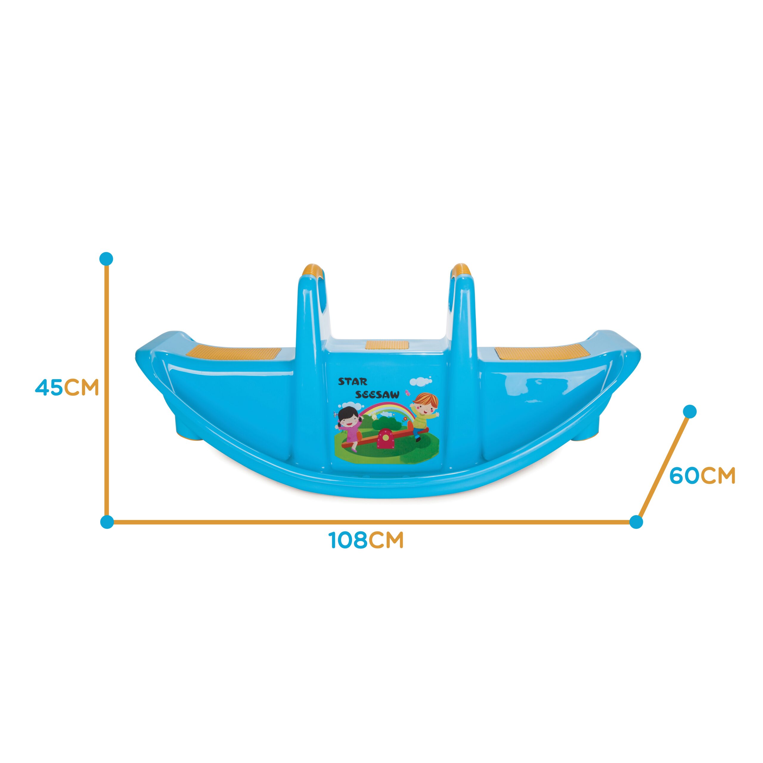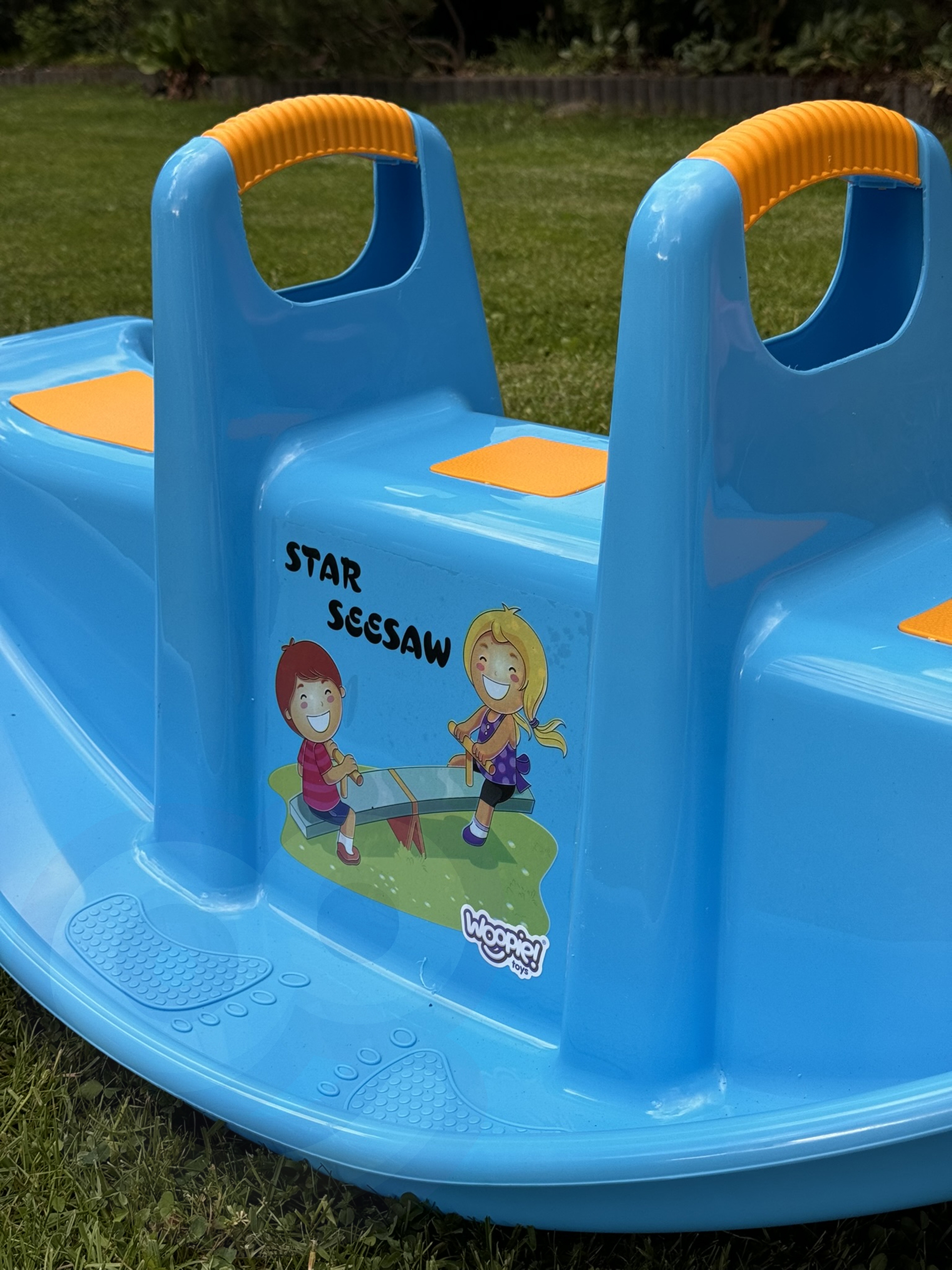 Woopie kaheistmeline jalas ei paku mitte ainult palju nalja, vaid toetab ka laste füüsilist arengut. Mõeldud 1-2 lapsele, sobib suurepäraselt nii koju kui aeda. Selle ergonoomiline kuju, mugavad istmed ja käepidemed tagavad turvalise ja mugava mängimise pikka aega. Toode on valmistatud vastupidavast, ilmastikukindlast materjalist, mis talub intensiivset kasutamist. See on suurepärane alternatiiv klassikalistele kiikedele ja jalas – laps saab mängida üksi või kahekesi, õppides koostööd ja tasakaalu. Kerge disain võimaldab teil toodet hõlpsasti kõikjale kaasas kanda. Intensiivne sinine värv koos kollaste aktsentidega ja rõõmsa trükiga esiküljel köidavad laste tähelepanu ja julgustavad aktiivselt mängima! Sellel kiigel kiikumine pole mitte ainult suurepärane meelelahutus, vaid ka loomuliku võimlemise vorm, millel on positiivne mõju jämedate motoorsete oskuste, tasakaalu ja motoorsete koordinatsioonide arengule. Omadused: – Kaheistmeline jalas – korraga 1 või 2 lapsele – Turvalised käepidemed paremaks haardumiseks ja stabiliseerimiseks – Libisemiskindlad istmed maksimaalse mugavuse tagamiseks – Vastupidav ja kerge konstruktsioon ilmastikukindlast materjalist – Ümarad servad – Ei mingeid teravaid elemente – Ideaalne koju ja aeda – Universaalne kasutus – Värviline disain koos lapsesõbraliku trükiga – Stabiilne tiibade koordineerimine – Tasakaalustamine ja tiiva alus: Jämemotoorika – Koostöö ja suhtlemine teise lapsega – Ruumitunnetus ja keha stabiliseerimine – Enesekindlus liikumises ja iseseisvas mängus Toote mõõdud: 108 x 60 x 45 (cm)