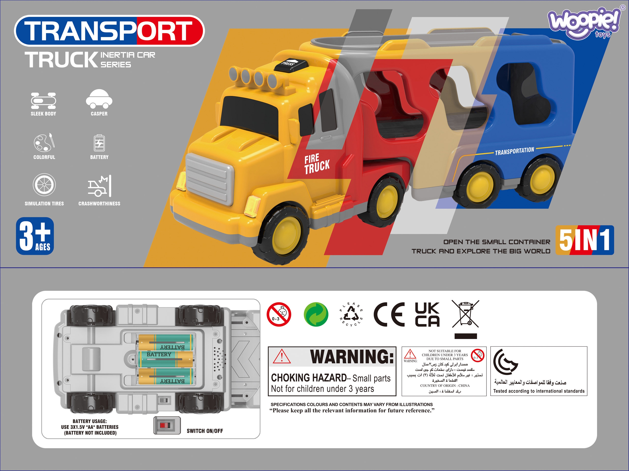 Suur tuletõrjekomplekt Puksiirauto + 4 Woopie kaubamärgi autot Väikestele tuletõrjehuvilistele mõeldud viis-ühes mänguasi on ideaalne komplekt igale väikesele päästjale! Vajutage veoki kabiini ülaosas olevat nuppu, et näha eredaid vilkuvaid tulesid ja kuulda realistlikke sireene, mis on lastele väga atraktiivsed. Komplektis on suur transpordiauto ja neli tuletõrjeautot: tuletõrjeauto, redelauto, helikopter, vihmutusauto ja maastur. Igal sõidukil on liikuvad elemendid, mis panevad teie lapse päästeoperatsioonide ajal end tõelise kangelasena tundma! Komplekt on suurepärane idee sünnipäevaks, jõuludeks või muuks sündmuseks. Omadused: – Mänguasi vanusele alates 3. eluaastast – 5 autost koosnev komplekt (XXL puksiirauto ja 4 minisõidukit) – Interaktiivne mänguasi – helid ja tuled – Mänguasi töötab 3 ”AA” patareiga (ei sisaldu komplektis) – Mänguasi sobib ideaalselt nii õues kui ka siseruumides mängimiseks. Väikeste laste mänguautodega manipuleerimine, ekskavaatori pööramine või betoonisegisti liigutamine aitavad arendada täpseid käteliigutusi. Kujutlusvõime: need mänguasjad võimaldavad lastel ette kujutada, mis tunne on olla veoautojuht, ekskavaatori operaator või ehitustööline. Suhtlemine ja koostöö: Kui lapsed koos mängivad, peavad nad koos läbi saama, planeerima ja tegutsema, mis arendab sotsiaalseid oskusi Mehhanismi mõistmine: Lapsed saavad jälgida, kuidas selliste sõidukite liikuvad osad töötavad, mis võib ärgitada nende tehnilist uudishimu Komplekti kuulub: XXL transpordihaagis tuletõrjeauto klassikaline tuletõrjeauto redeliga tuletõrjeauto veekahuriga Helikopter