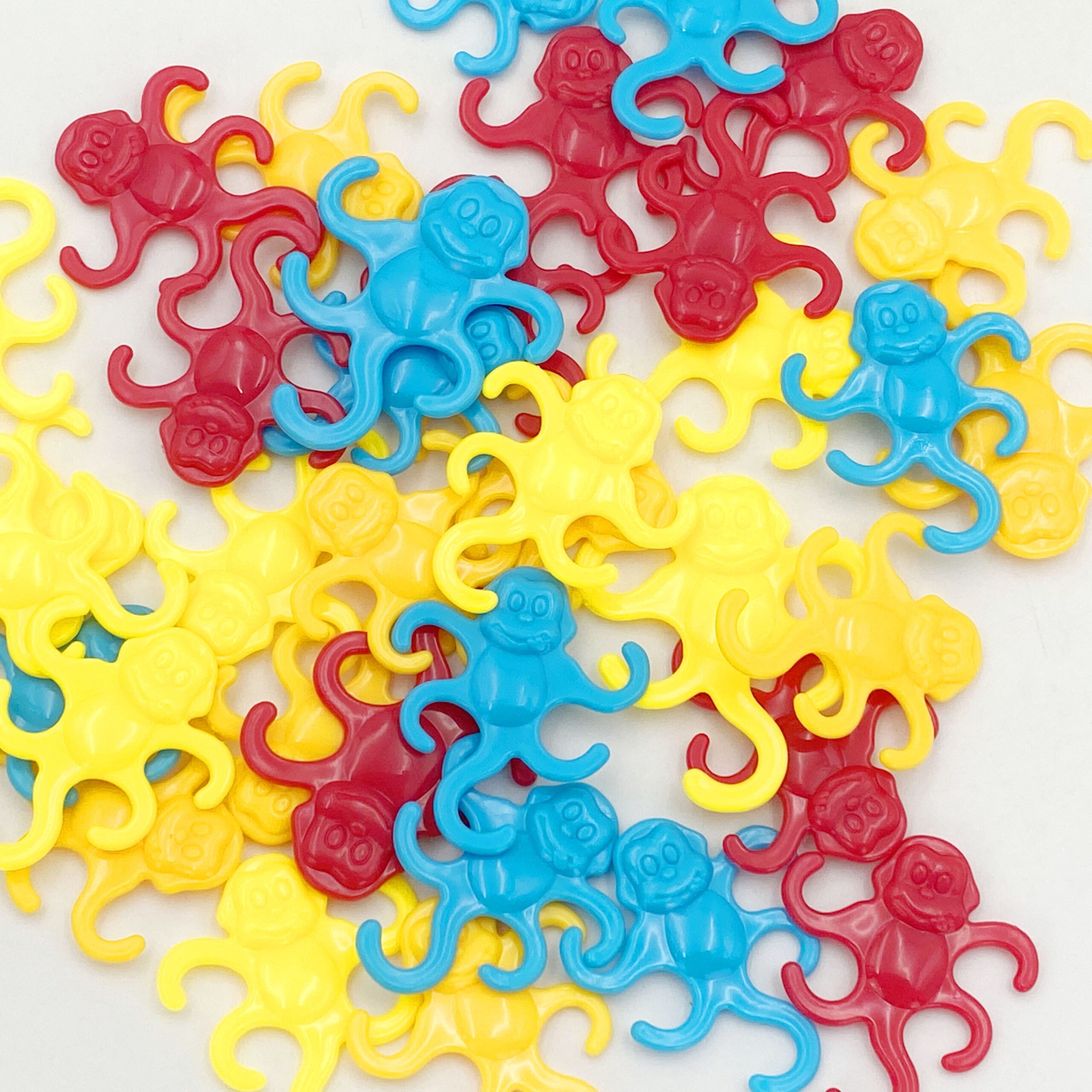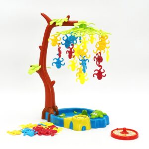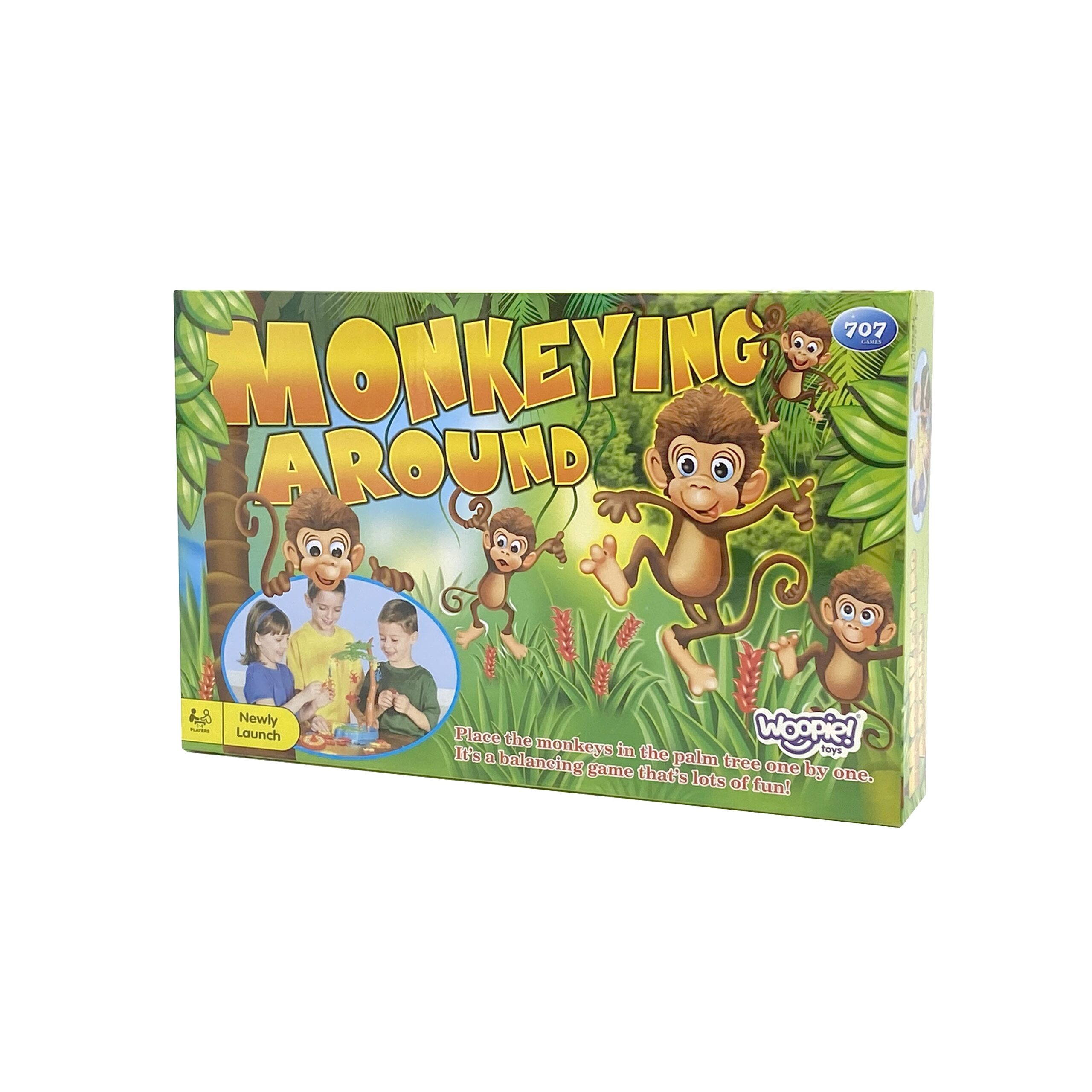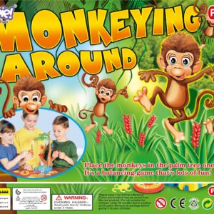 Hanging Monkeys arkaadmäng kaubamärgilt WOOPIE on mäng, mis sobib suurepäraselt kogu perele! Suurepärane mäng, mis treenib laste osavust ja keskendumisvõimet. Rõõmsad ahvid hüppavad puude otsas ja ronivad palmipuude otsa, kuid üks hooletu liigutus ja väike ahv võib puu otsast alla kukkuda. Mängu eesmärk on asetada palmipuule võimalikult palju oma ahve. Võidab mängija, kes asetab esimesena oma ahvid puule. Omadused: – mäng vanuses 3 ja vanemad – mitmikmäng 1 kuni 4 mängijale – arendab loogilist ja strateegilist mõtlemist Mängureeglid: Aseta palmi tüvi alusele ja aseta sellele puu võra. Laske igal mängijal valida oma ahvide värv. Mängijad riputavad oma ahvid oma käigu ajal õnneratta joonistatud numbrisse. Esimene mängija, kes vabaneb kõigist oma ahvidest, võidab. Komplekti kuulub: – 1 õnnerattaga palmipuu alus – Palmi tüvi pikkus 35 cm – 4 osa palmikroonist – 32 ahvi neljas erinevas värvitoonis