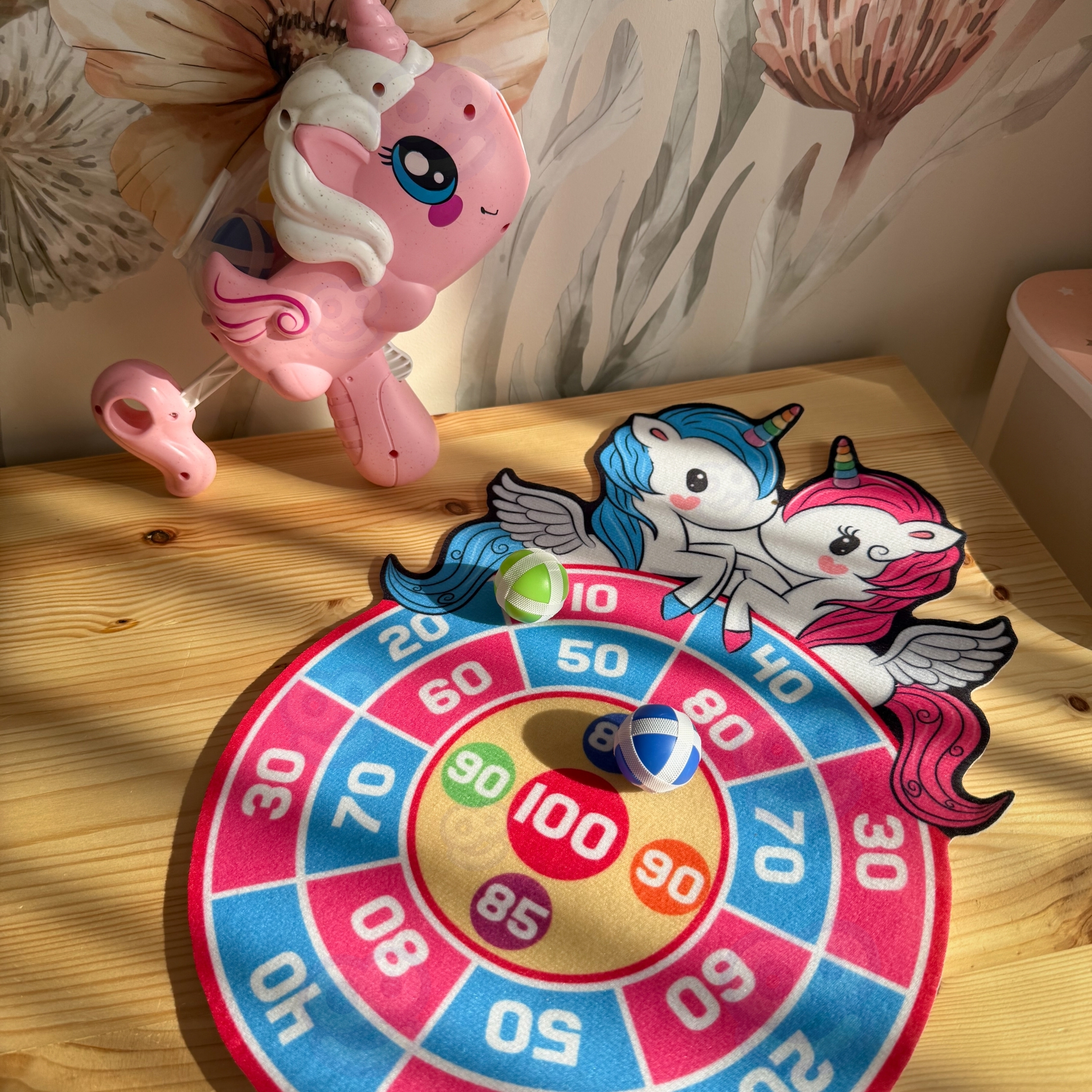 Sisenege võistluse ja osavuse maagilisse maailma Woopie kaubamärgi arkaadmänguga! See imearmas komplekt võimaldab teie lapsel arendada oma eesmärki ja koordinatsiooni turvalisel ja põneval viisil. Armsa ükssarviku kujuline kanderakett tulistab spetsiaalseid palle, mis tänu Velcrole võluväel sihtmärgi külge kleepuvad. Ideaalne sise- ja välistingimustes mängimiseks, pakkudes tunde kaasahaaravat meelelahutust ja aidates teil parandada oma täpsust! Omadused: – Lastele alates 3. eluaastast – Muinasjutulise ükssarviku kujulised kanderaketid on visuaalselt erakordselt atraktiivsed – Kanderakett on valmistatud ökoloogilisest ja ohutust materjalist – Kuulid kleepuvad takjapaelaga sihtmärgi külge, mis hõlbustab tabamist ja punktide lugemist – Selgete punktidega suur märklaud soodustab konkurentsi ja parandab täpsust. skoorimine – Velcro pallid (6 tk) – Isekleepuv konks kilbi riputamiseks. Mänguasi arendab: – Silma-käe koordinatsiooni – Liigutuste täpsust ja täpsust – Keskendumist ja keskendumist – Motoorikat – Võistlemisvõimet ja ausat mängu. Toote mõõdud: – Varjestus 43 x 29 (cm) – Palli läbimõõt u. 3,5 (cm) – kanderakett 22 x 16 x 9,5 (cm) Tähelepanu! Ükssarviku kanderakett on kahes värvitoonis: roosa ja valge. Värvivalikut pole, saadame juhuslikult.
