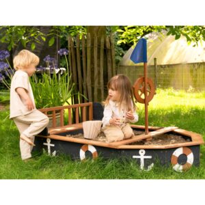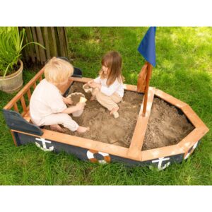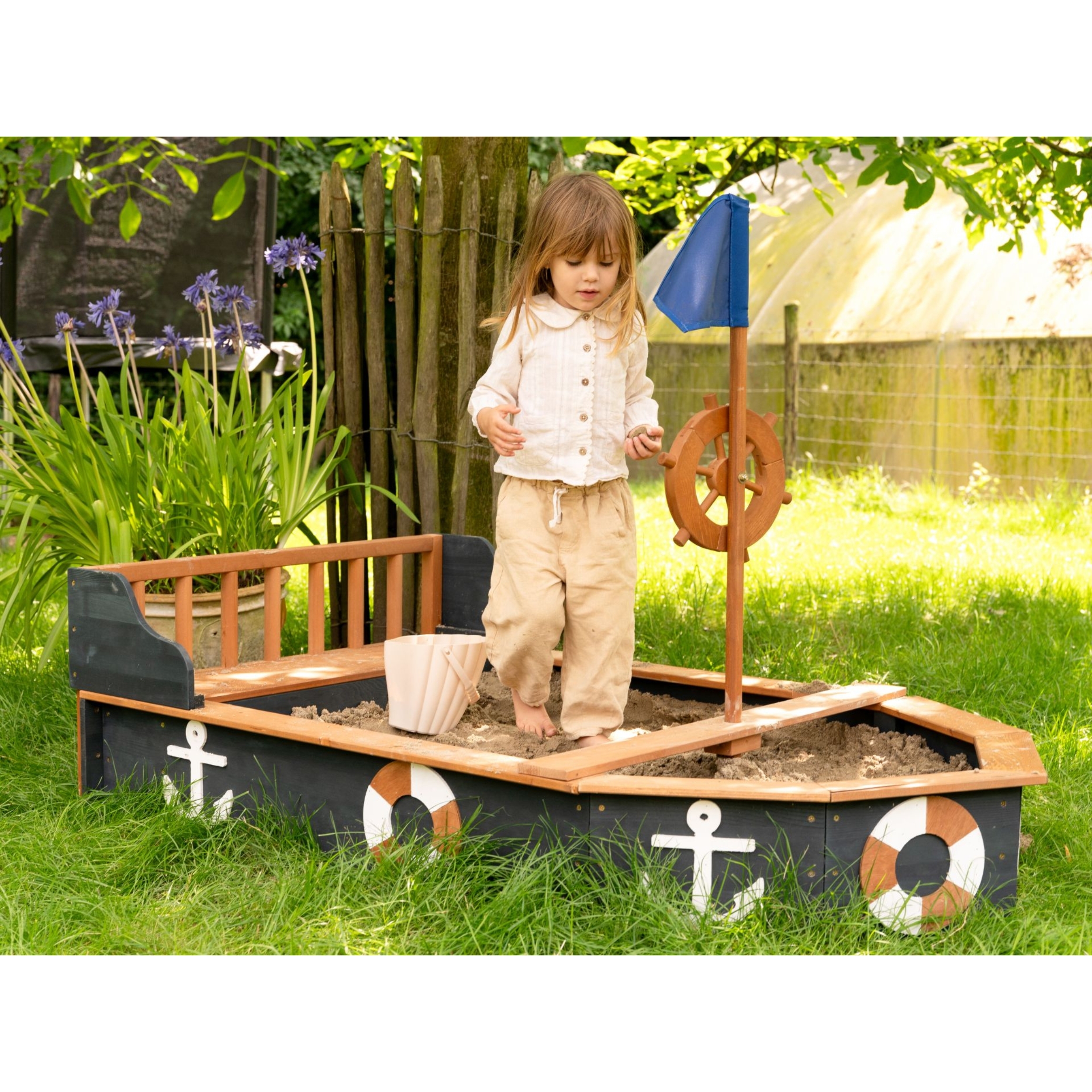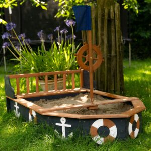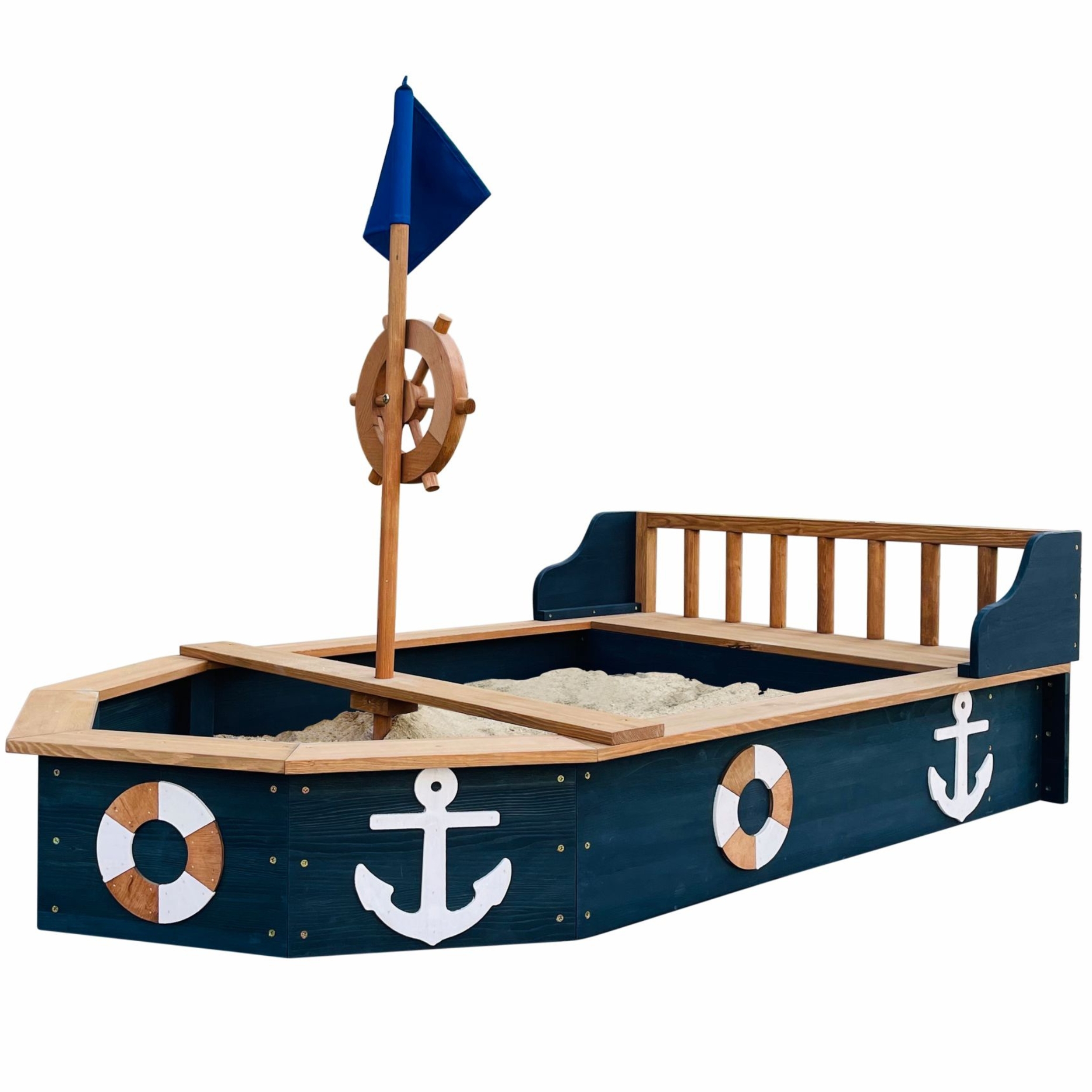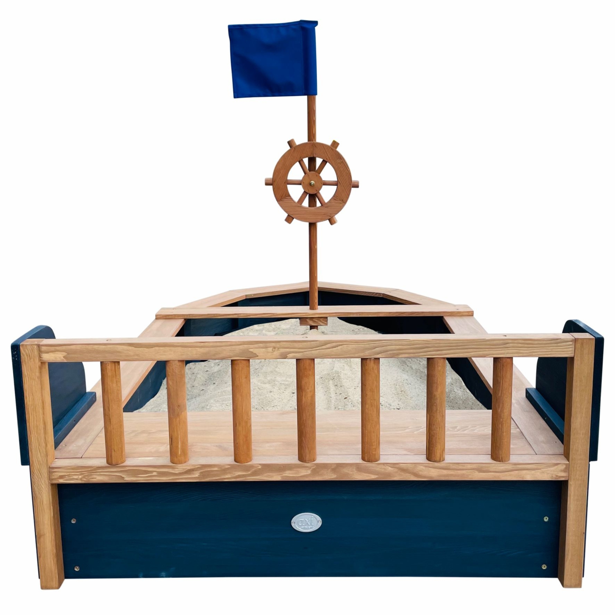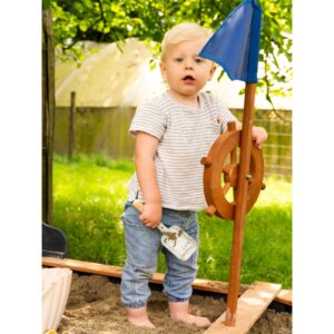 AXI Doris Boat liivakast – igast väikelapsest võib saada oma laeva kapten! Pöörleva tüüri, lipu mastis ja dekoratiivankrutega paadi kuju muudab lõbu veelgi põnevamaks – Vastupidav puitkonstruktsioon, sisseehitatud istmed ja praktiline mänguasjade panipaik muudavad selle ideaalseks kohaks loominguliseks õues mängimiseks – Kaitsetent + maamatt – kaitseb liiva mustuse eest – Vastupidavus ilmastikutingimustele – puit ei killu ega mädane ├ Rooli tüüri omadused: istmed ja pink koos panipaigaga (23L) ✔ Mahutavus ca. 180 kg liiva✔ Keskkonnasõbralik FSC puit✔ Looduslik veebaasil peits ✔ Lihtne kokku panna – osaliselt eelmonteeritud elemendid Mõõdud: – Liivakasti mõõdud: 153 x 90 x 100 cm – Panipaik: 70 x 17 x 20 cm – Maksimaalne kaal: 50 kg