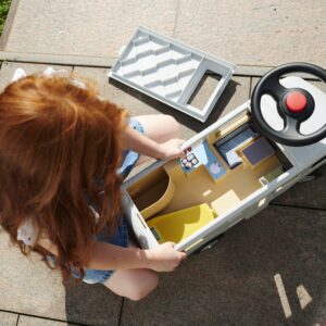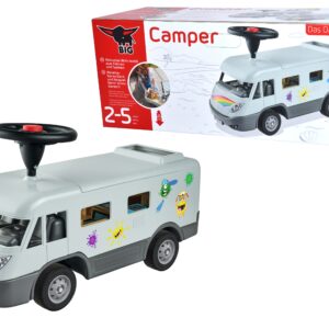 Maineka BIG firma Camper Ride-On on sõiduk, mis meenutab tõelist matkaautot. See on stabiilne ja turvaline – ideaalne lastele, kes alustavad oma seiklust sõidukitega. Matkaauto eemaldatav katus peidab endas avarat sisemust, mis annab piisavalt ruumi kuni 12 cm suurustele tegelaskujudele ja nukkudele. Nad saavad väikeste seiklejate reisidel kaasas olla ja on alati valmis neile lühikestel puhkepausidel seltsiks. Lõbusad kleebised võimaldavad individuaalset disaini. BIG matkaauto on varustatud ka kvaliteetsete vaiksete ratastega, mis on eriti meeldivad lapsevanematele ja mis võimaldavad väikestel juhtidel rahulikult mööda aedu ja lastetubasid ringi sõita. Tänu ülipehmetele mittejälgivatele plastrehvidele puudub ka oht põrandale jälgi jätta, mistõttu sobib matkaauto ideaalselt ka siseruumides kasutamiseks. Sõitmine on ehitatud selleks, et lapsed saaksid katsetada ja arendada uusi oskusi – peale-, maha-, tõukamis- ja roolimisoskusi. See on ideaalne kingitus lapsele alates 2. eluaastast. Omadused: – pealesõit on varustatud vaiksete ratastega, mis sobivad suurepäraselt erinevatele pindadele, – sellel on ruumikas panipaik, mis annab palju ruumi kuni 12 cm mänguasjadele. – omab spetsiaalseid vaikseid plastikrattaid ja sarve – komplektis on individuaalset disaini võimaldavad kleebised – pealesõidu vastupidav konstruktsioon, garanteerib pika kasutusea, – arendab lapse motoorseid oskusi, – mõeldud lastele alates 2. eluaastast.
