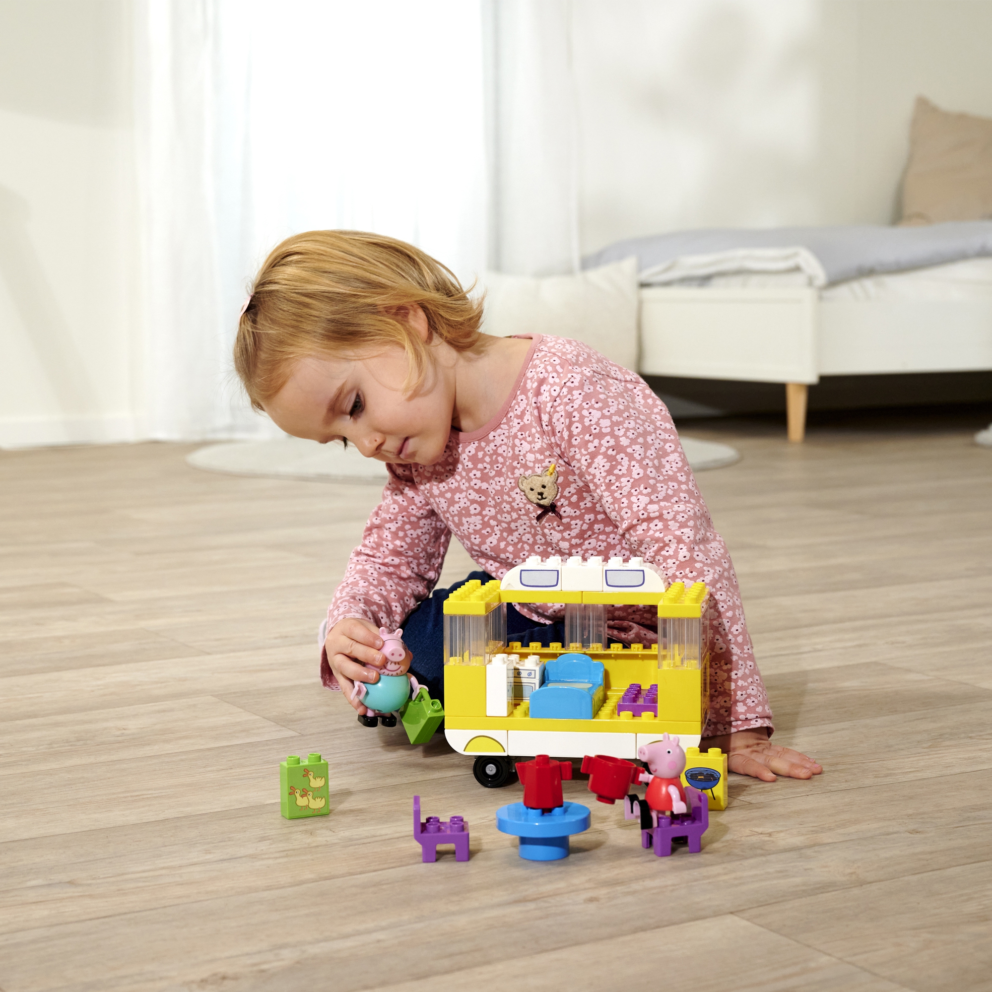 Peppa Pig on suurepäraselt tehtud Briti lasteanimatsioon, mis pakub lõbusat õppimist ja palju nalja väikestele. Peppa on eriti huvitav ja naljakas väike põrsas. Ta elab koos ema, isa ja noorema vennaga mäe peal asuvas majas. Sealt edasi uurivad Peppa ja tema sõbrad piirkonda – sest igal pool on midagi põnevat avastada! 54 elemendist ja 2 figuurist koosnev Peppa Pig Camper klotside komplekt pakub palju nalja lastele vanuses 18 kuud kuni 5 aastat. Värvilised ja üksikasjalikud osad ning populaarsed seiklus- ja telkimisteemad pakuvad kõrget mänguväärtust. Tunnused: mänguasi lastele alates 18. elukuust, kvaliteetsest plastikust klotsid, kergesti puhastatavad, palju mänguvariante, 54 elementi, 2 figuuri – Peppa Pig ja tema isa Pig Lapsed saavad koos perega Wutz klotside ja rataste abil ehitada matkaauto ning varustada selle voodi, pliidi ja pingiga. Matkaauto ees on hubane istumisnurk, saab keeta teed ja grillida. Klotsid ühilduvad tuntud mänguelementidega. Kvaliteetne plastik muudab need kergesti puhastatavaks.