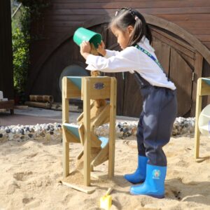 CLASSIC WORLD kaubamärgi Wooden Sand Slide on hea kvaliteediga mänguasi, mis täiendab suurepäraselt teie lapse liivakasti, aga ka õppeasutuste mänguväljakuid. See koosneb lehtrist, mis on asetatud kõige ülaossa, millesse laps valab liiva, mis seejärel libiseb kolmest väikesest liumäest alla. Selle puidust liumäe kasutamine on teie lapsele suurepärane sensoorne mäng ja hea peenmotoorika arendamiseks. Omadused: – Mänguasi vanuses 3 aastat – Kvaliteetne puit, hoolikas töötlus – OHUTU mänguasi lastele – Ideaalne lisand liivakastile Mänguasi arendab: – loovust – loogilist mõtlemist – peenmotoorikat – põhjuse ja tagajärje äratundmist – kujutlusvõimet