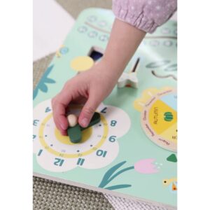 Tutvuge hariva manipuleeriva tahvliga, mis tutvustab teie lapsele aja, ilma ja aastaaegade põnevat maailma. Tänu värvilistele elementidele õpib teie laps kergesti ära tundma nädalapäevi, kuid, tunde ja temperatuuri. Interaktiivsed nupud ja liugurid arendavad käelisi oskusi ja silma-käe koordinatsiooni. Tahvel ühendab lõbu atraktiivsel viisil õppimisega, toetades väikelapse iseseisvat maailma avastamist. Ideaalne lastetuppa või kingituseks, mis pakub paljudeks tundideks loomingulist lõbu. Omadused: – 4-ühes hariv manipuleeriv tahvel: kell, nädalapäevad, kuud/hooajad, ilm ja temperatuur. ✔️ – Erksad, värvilised ja lapsesõbralikud elemendid liigutamiseks ja pööramiseks. -Valmistatud vastupidavast puidust turvaliste servadega. – Toetab loogilise mõtlemise, taju ja mälu arengut. -Esteetiline disain loodus- ja loomamotiividega, sobib suurepäraselt lastetuppa. Komplekti kuulub: – Liigutatavate osutitega kell tundide õppimiseks. – Vali kuude ja aastaaegadega. – Nädalapäevade liugur. -Ilma ja temperatuuri indikaator (kuum/soe/jahe/külm). – Kuu päevaloendur (1-31) liugkursoriga. Mänguasi arendab: – lugemisaega ja kalendri põhimõisteid. – Tajutavus ja tähelepanu kontsentratsioon. – Käelised oskused ja käe-silma koordinatsioon. -Loovus ja iseseisev ümbruskonna avastamine. – Ilmastikunähtuste ja looduse tsüklite varajane mõistmine.