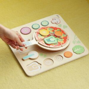 Classic Worldi puidust pusle “Pizza Puzzle Board” on 22 elemendist koosnev värviline komplekt, mis muudab lõbu loominguliseks toiduvalmistamiseks. Komplekt, mis on mõeldud lastele alates 2. eluaastast, sisaldab liigutatavaid koostisosi, spaatlit ja nuga – ideaalne oma pitsa koostamiseks ja täpsuse harjutamiseks. Toode on valmistatud siledast puidust, värvitud ohutute värvidega, mis muudab mängimise meeldivaks ja vastupidavaks. Omadused: – lastele alates 2. eluaastast – 22 elementi järjestamiseks ja sobitamiseks – liigutatavad koostisosad erinevate pitsamaitsete loomiseks – Ideaalne vormide ja värvide äratundmise õppimiseks – esteetiline, puidust töötlus, siledad ja turvalised servad Komplekti kuulub: – pitsagraafikaga puittahvel (kandik/seadelaud) – 6 tükki pitsat kokkupanemiseks (., 3 tk pitsat, tomatiks) kurk, salatileht, mais ja muud lisandid) – pitsakoor – pitsalõikur – 1 puidust kandik/seadelaud Mänguasi arendab: – loovust – kujutlusvõimet – motoorseid oskusi – kannatlikkust – kujundite ja värvide äratundmist
