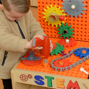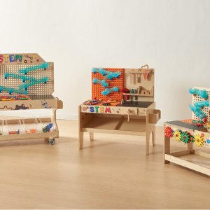 Masterkidz kaubamärgi puidutöökoda STEM XXL on ideaalne koht katsetamiseks, mis arendab lapse loovust ja tehnilisi oskusi. Kvaliteetsest puidust valmistatud see ühendab lõbu õppimisega, võimaldades lastel avastada mehaanika, tehnika ja füüsika põhimõtteid. See realistliku välimusega töötuba on suurepärane atraktsioon igas klassi- või mänguruumis, julgustades lapsi looma toimivaid süsteeme ja ehitama realistlikke tööriistu. Omadused: – Ühildub kõigi STEM-plaadi tarvikutega: hammasrattad, rattad, rihmarattad, kruvid, tihvtid ja muu – Sisaldab alust kaasasolevate tööriistade hoiustamiseks – Aukudega tööpind, mis võimaldab teil vabalt luua oma struktuure, süsteeme ja katseid. – Lisaruum tööriistade ja tarvikute jaoks võimaldab teil mängu ajal korda hoida. – Viimistletud lakiga, mis tagab suurepärase vastupidavuse UV-kiirgusele, plekkidele ja kriimustustele. Komplekti kuulub: – Puidust STEM Workshop XXL – Haamer – Käsisaag – Mutrivõti – Puidust treeninglaud – Kruvikeeraja – Trell – Pistikupesade komplekt. – Vändaga hammasratas. – 4 suurt hammasratast 16 hambaga. – 8 käiku 12 hambaga. – 4 väikest 6 hambaga hammasratast. – Väike rihmaratas – Suur rihmaratas – Reguleeritava pikkusega kett. – Vöö liikuvate konstruktsioonide loomiseks. – 34 erineva suurusega kruvi. – 20 mutrit kruvide jaoks. – 2 erineva suurusega seibi hammasrataste jaoks. – 35 elemendist koosnev komplekt palliraja ehitamiseks. – Värviline pall Mänguasi arendab: – Käelisi oskusi – Loovust – Kujutlusvõimet – Peenmotoorikat Komplektielemendid: – ME29591 – ME31136 Töötoaga sobivad elemendid (müüakse eraldi): – Värvilised pulgad ME12746 ME14450 ME21113 ME21137 ME211413 ME21137 ME211441 -9 Värvilised kristallid ME28 nöörid tihvtidega ühendamiseks ME14467 – Värvilised kruvid ME20963 ME29911 – Geomeetrilised kujundid ME14696 ME14702 ME14818 ME14825 ME31181 – Hammasrattad ja ketid ME13460 ME24343 ME31204 – Komplekt ME24343 ME31204 – Komplekt ME3040 ja tarvikud ME12845 ME16560 ME14672